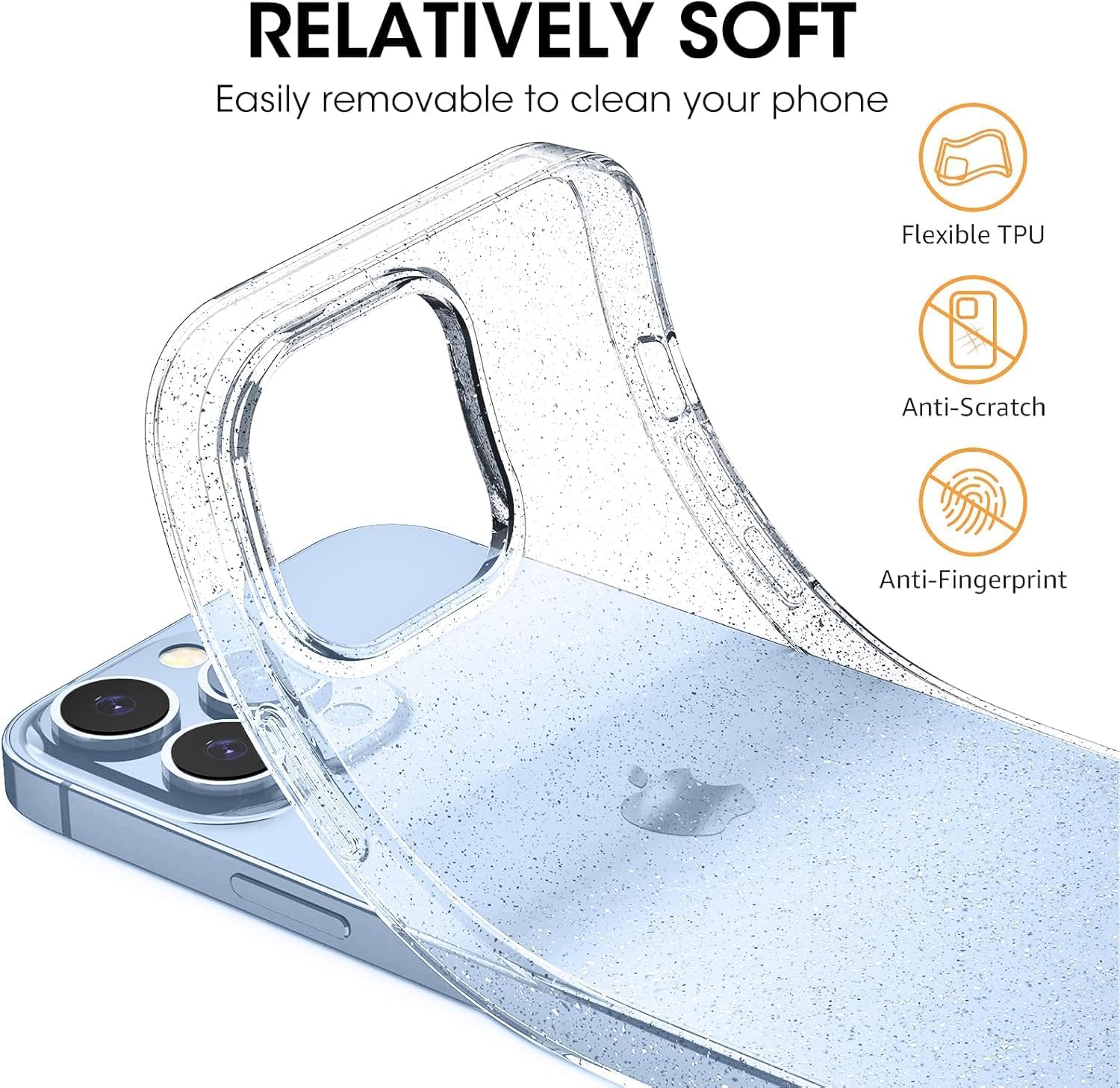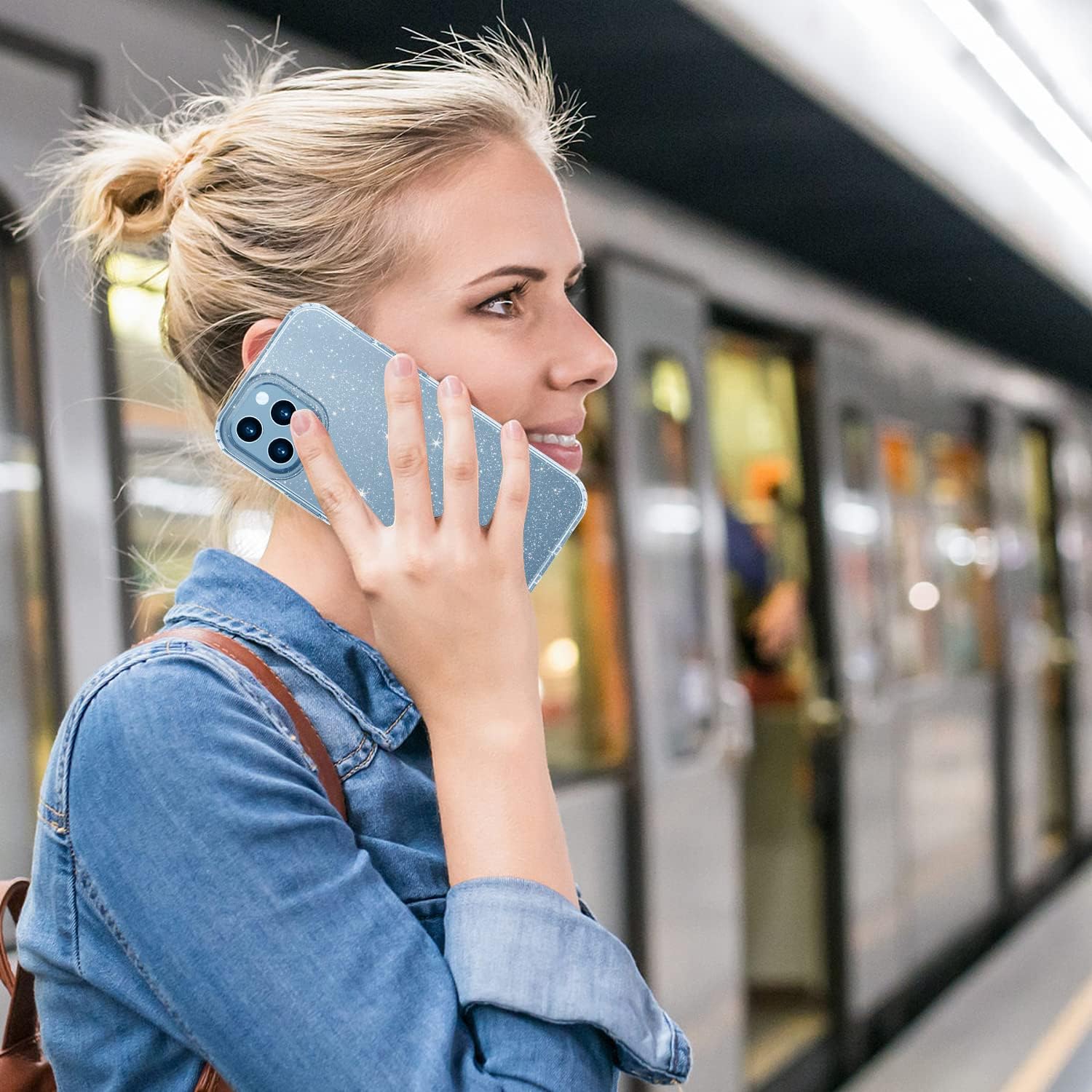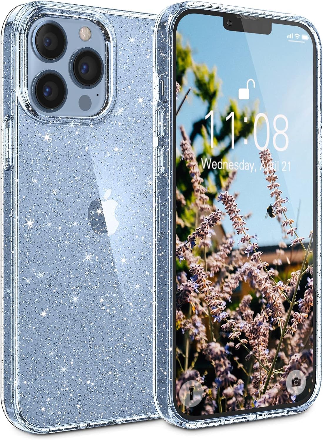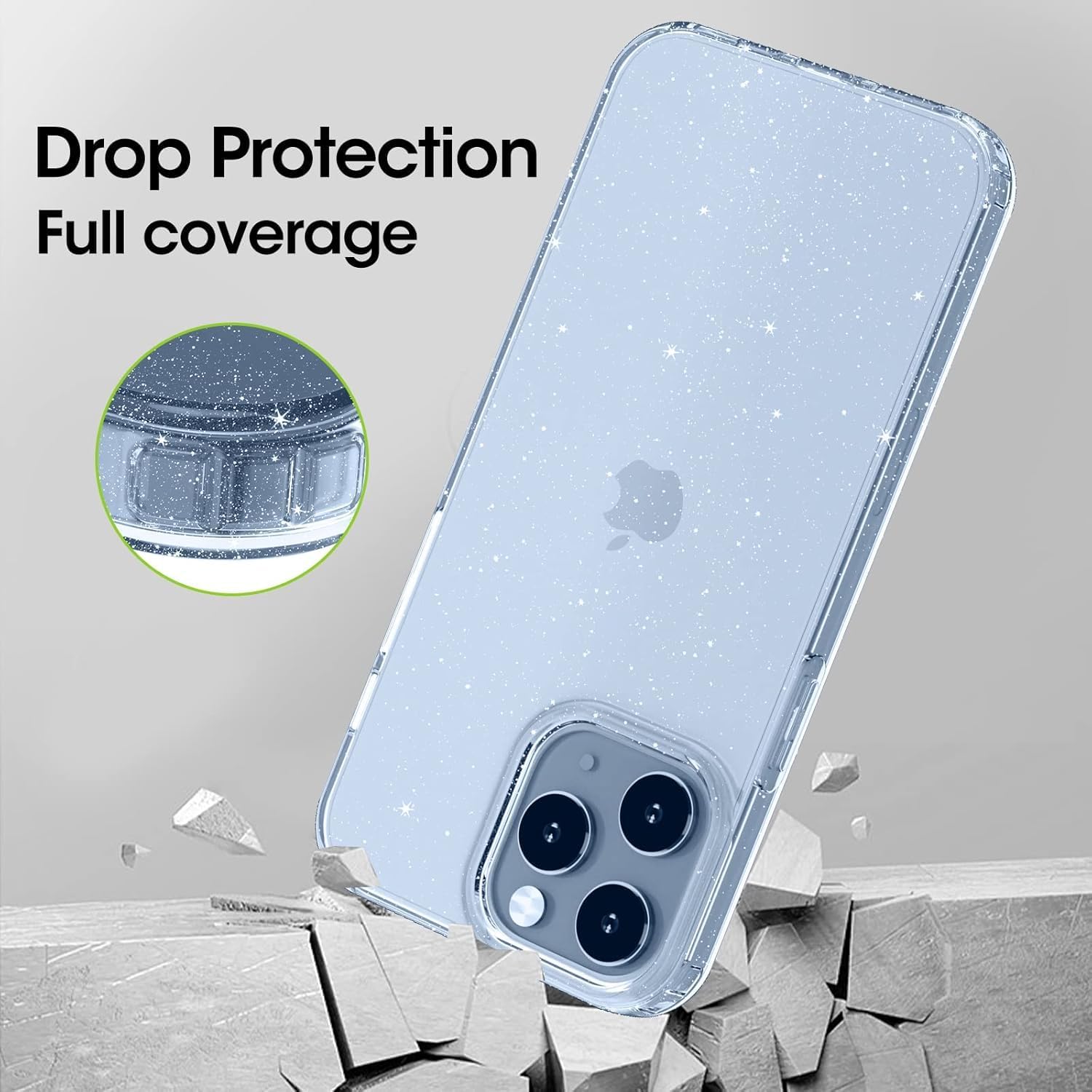 HGH брокат калъф за iPhone 13 Pro Max, 6.7 инча, бляскав удароустойчив калъф за мобилен телефон, сладък брокат за жени и момичета (брокат)