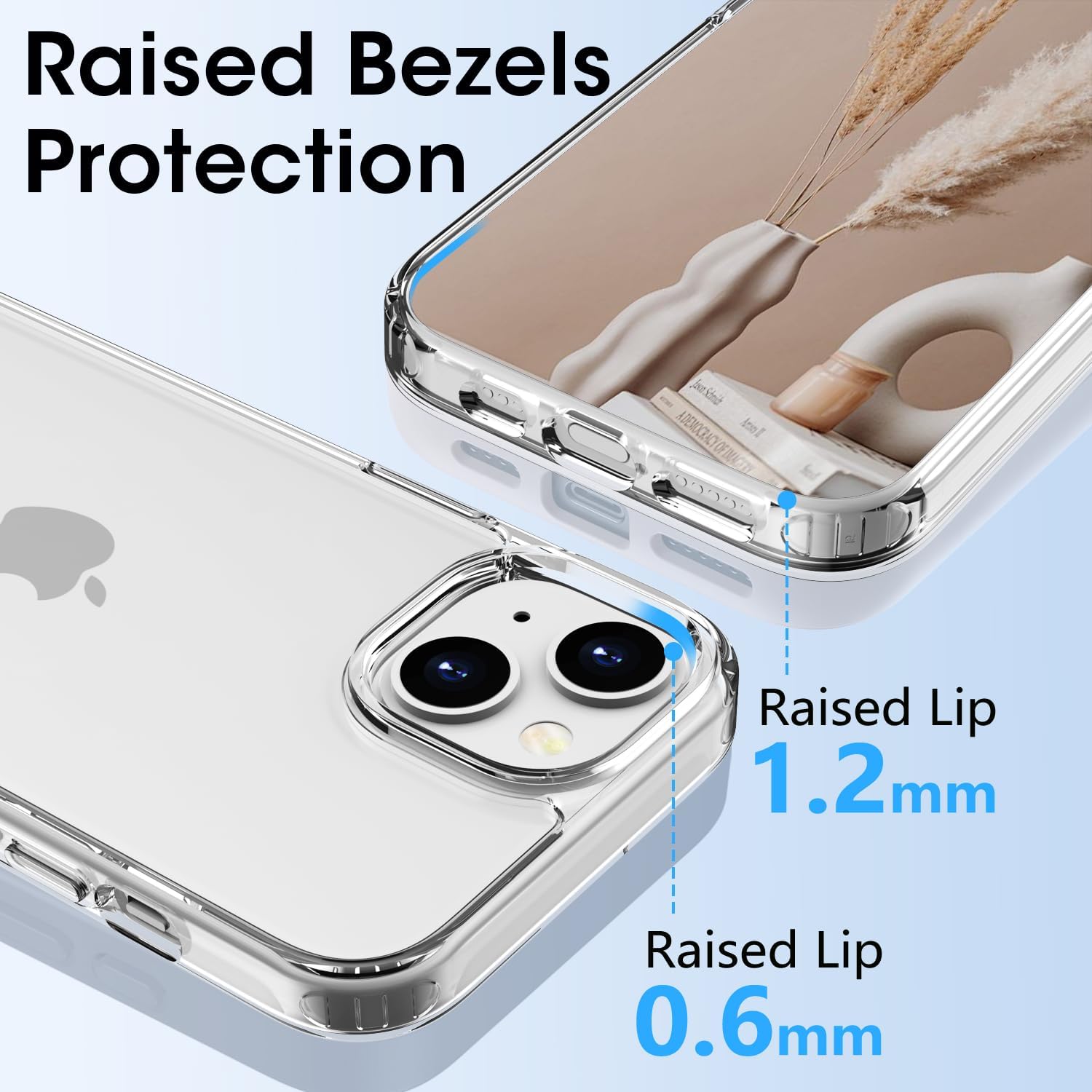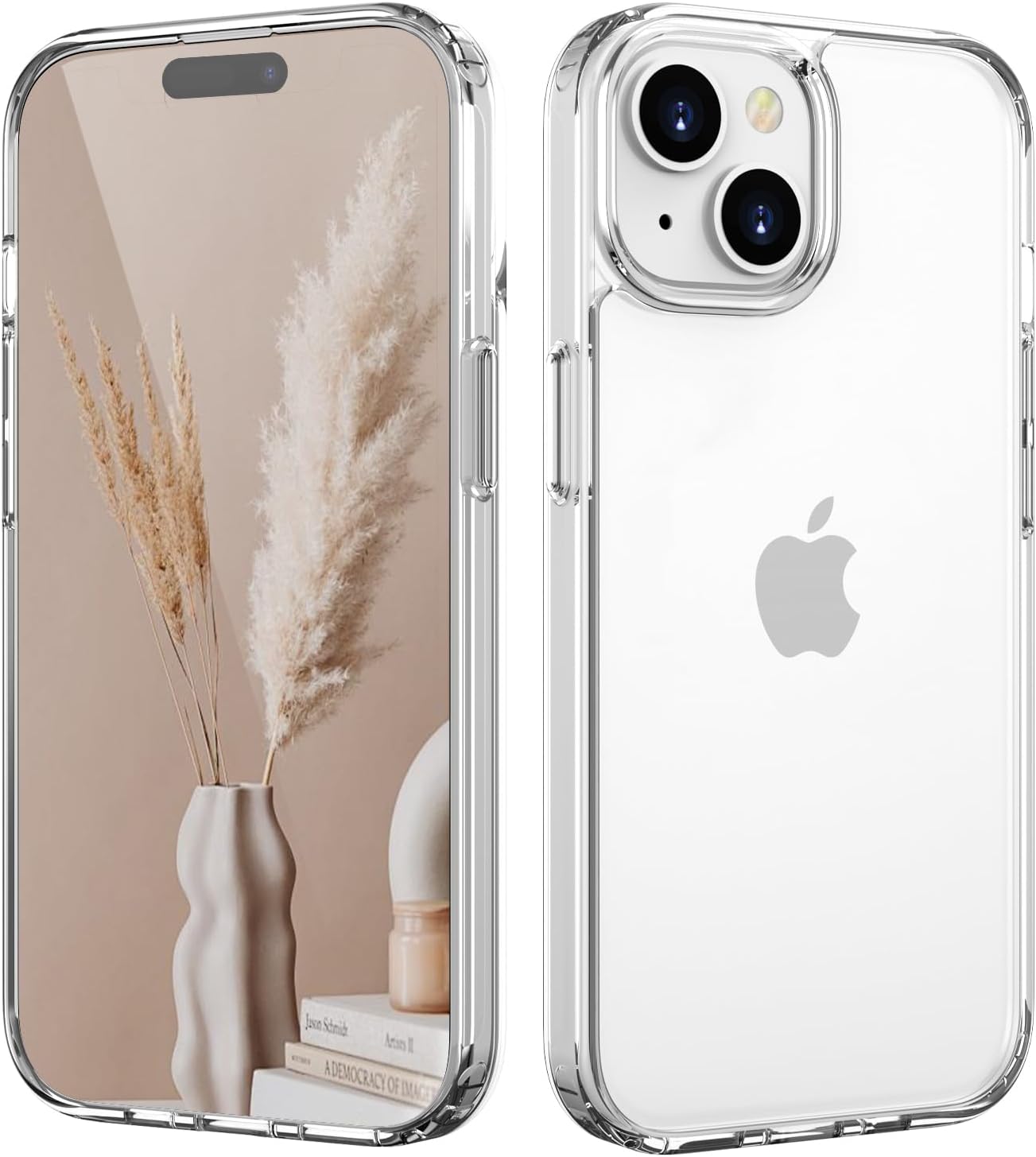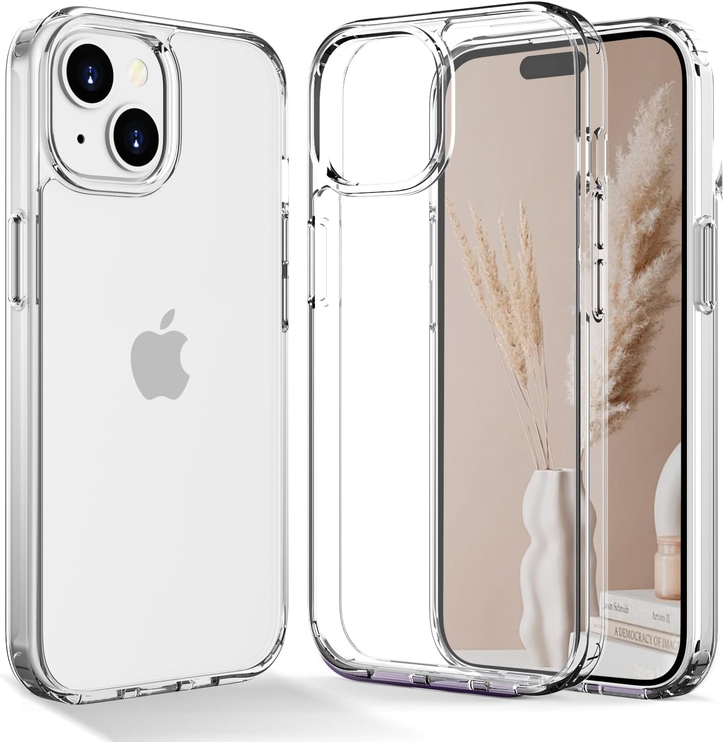 HGH калъф за iPhone 15 6.1 инча, прозрачен защитен калъф с анти-жълт цвят за гръб, калъф против пръстови отпечатъци за iPhone 15 (прозрачен)