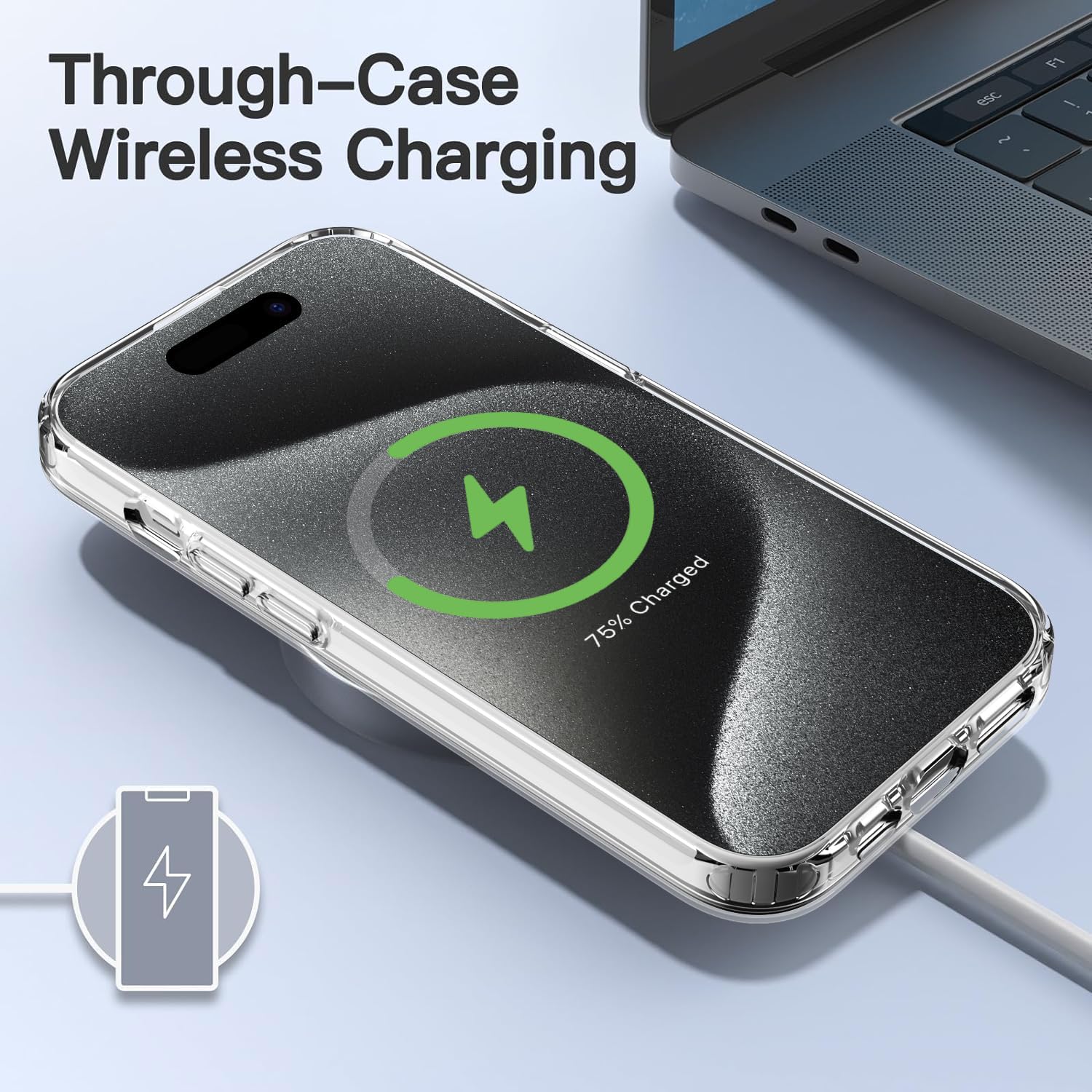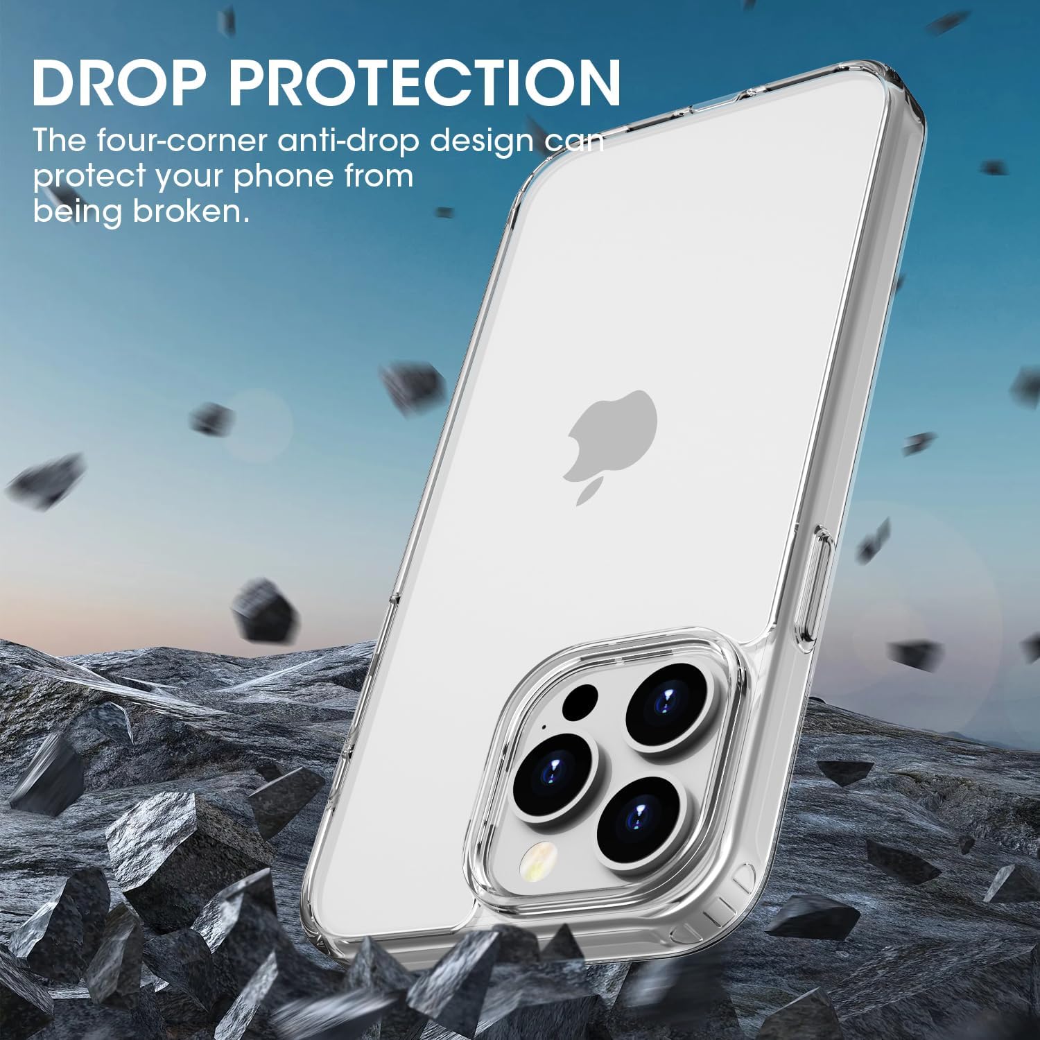 HGH калъф за iPhone 15 Pro 6.1 инча, прозрачен защитен калъф за гръб с анти-жълт цвят, калъф против пръстови отпечатъци за iPhone 15 Pro (прозрачен)