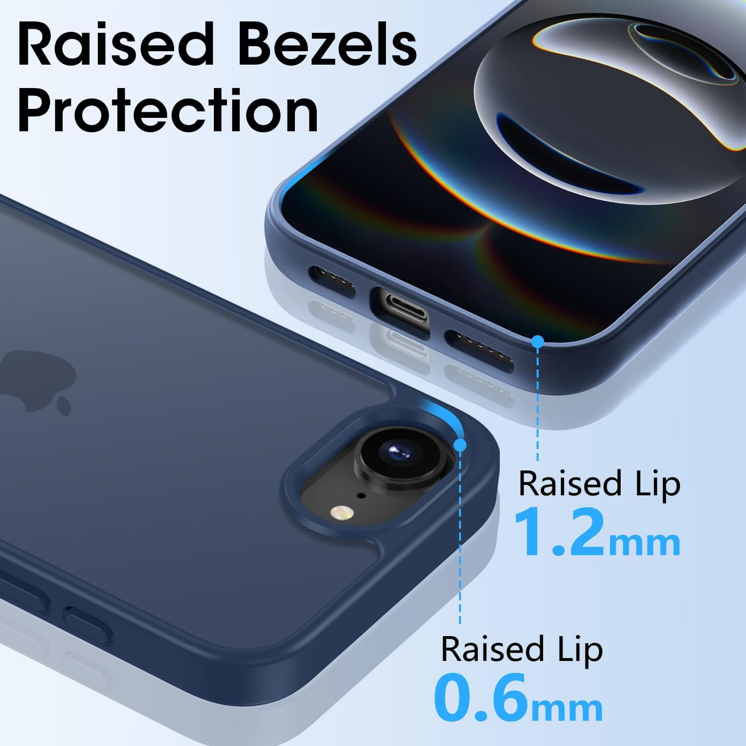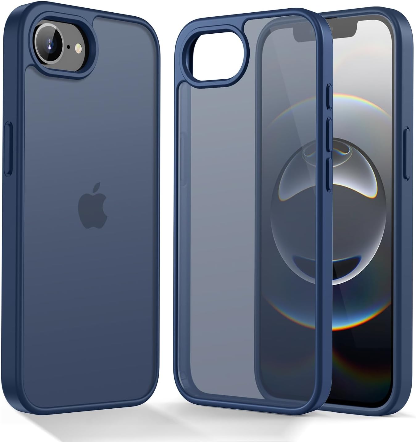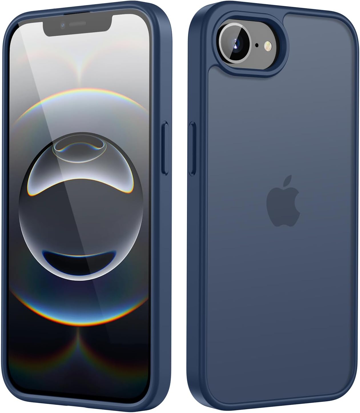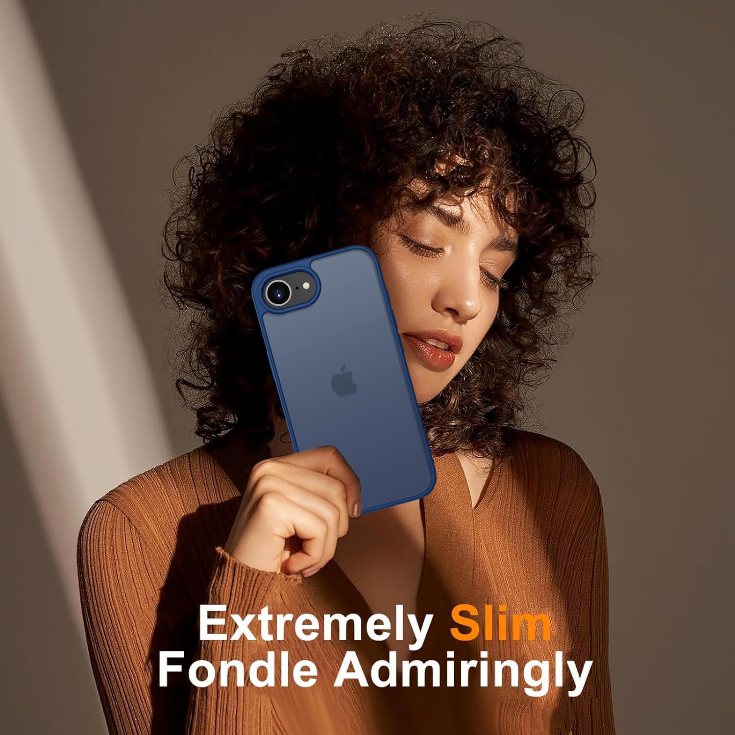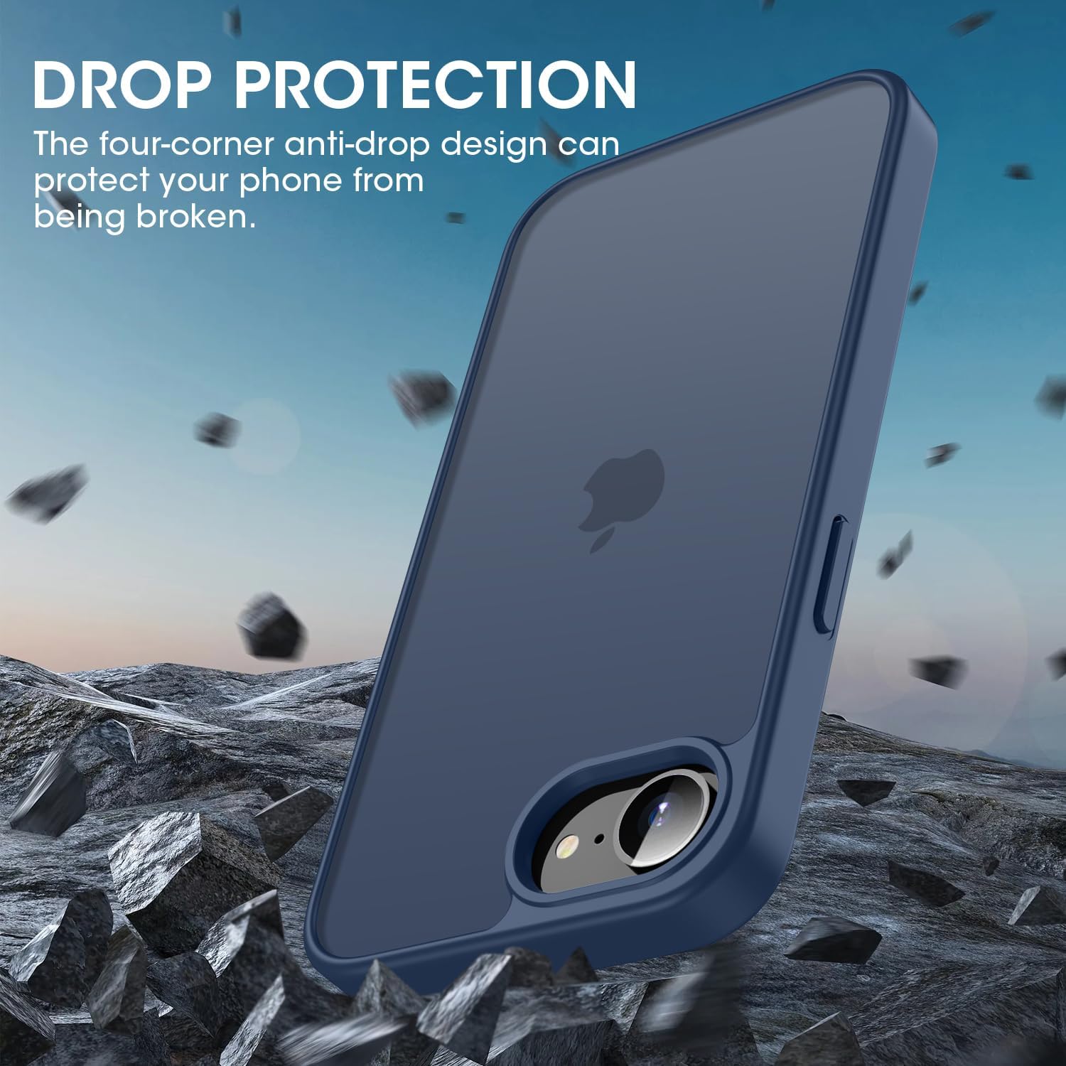 HGH Матов Калъф за iPhone 16e [Военна Защита] Защитен Калъф Кадифен Матов Устойчив на Надраскване, Прозрачен Защитен Калъф За Мобилен Телефон против Пръстови Отпечатъци за iPhone 16e 2025, Тъмно Син