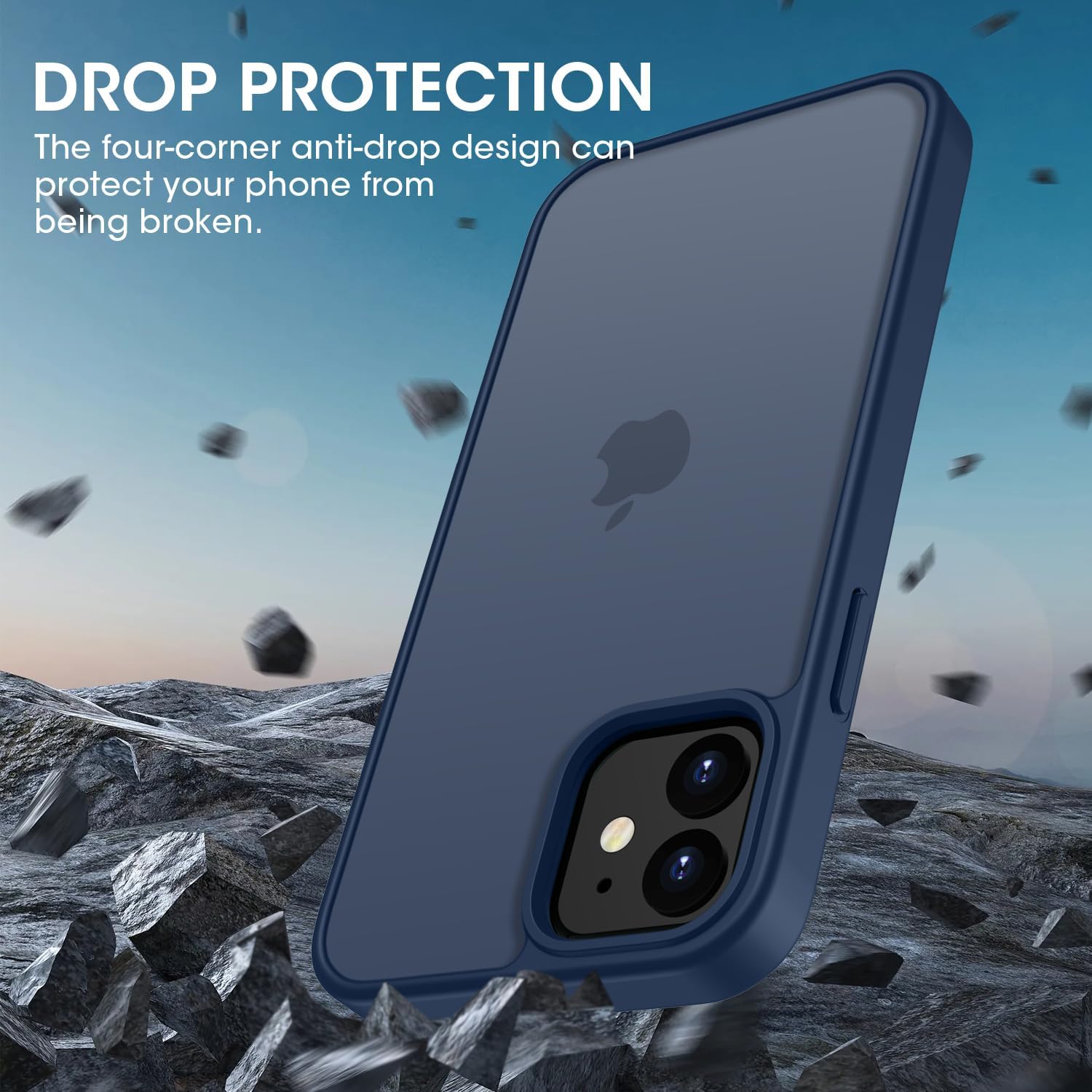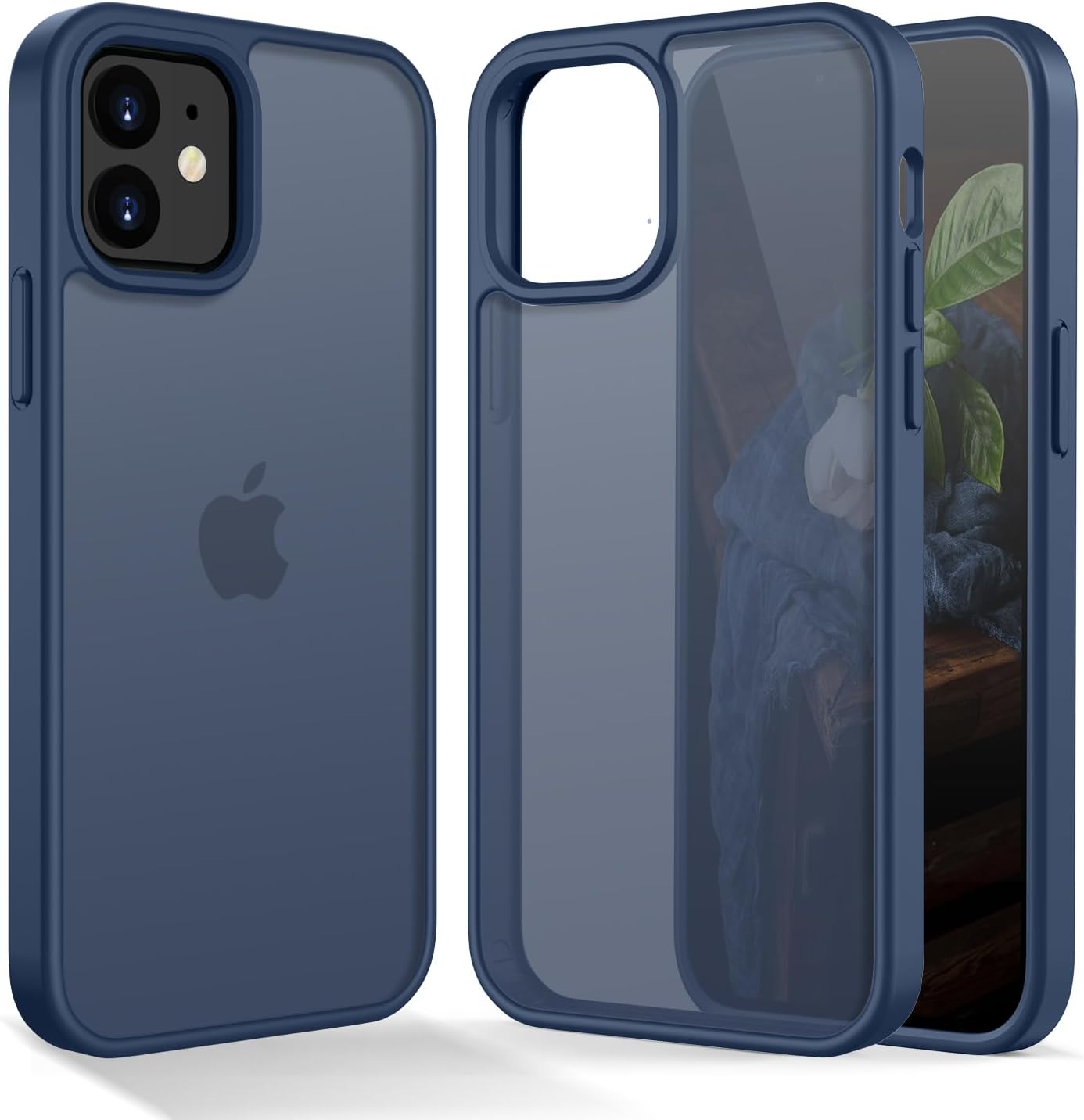HGH Матов Кейс за iPhone 12 Mini 5.4 инча, Военен Защитен Калъф Кадифен Матов Против Надраскване, Прозрачен Защитен Кейс За Гръб, Против Отпечатъци от Пръсти (Тъмно Син)