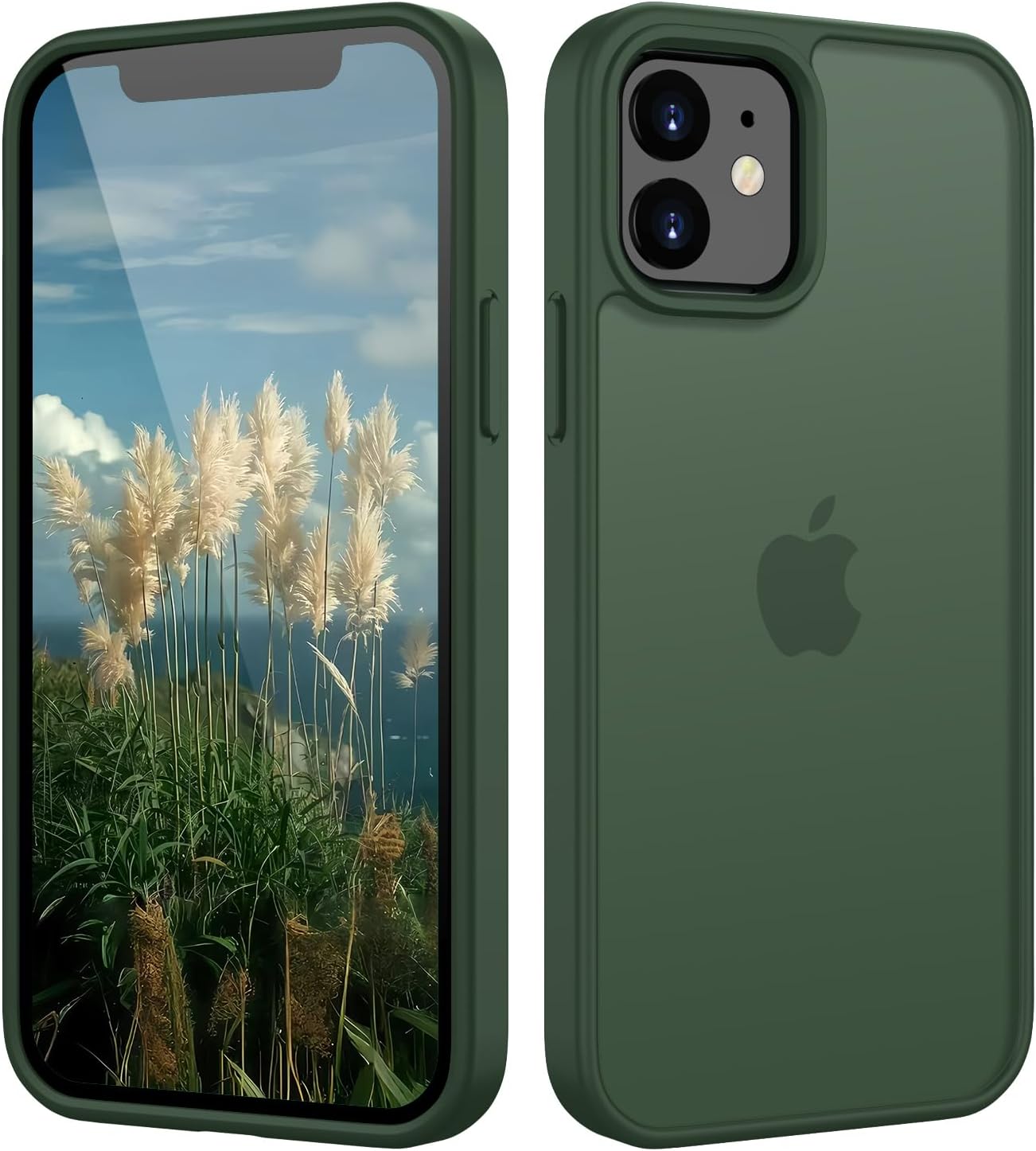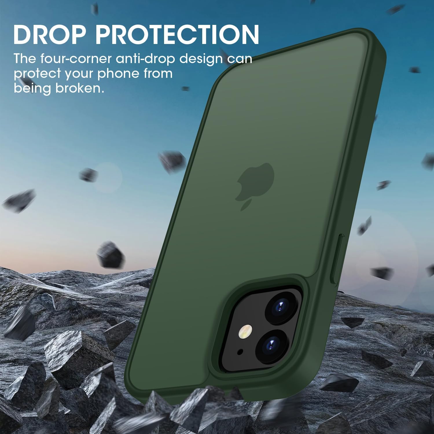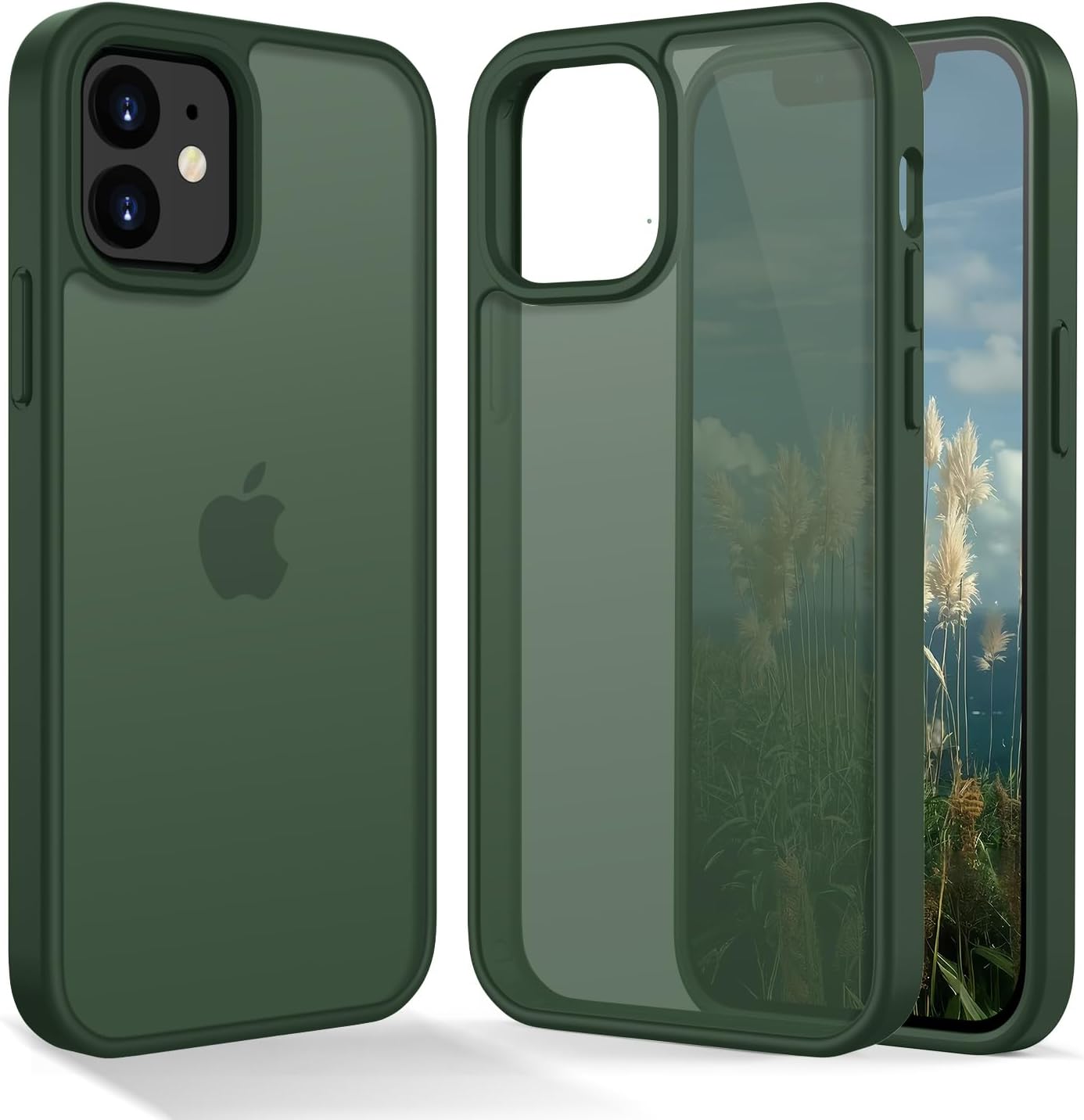 HGH Матов Кейс за iPhone 12 Mini 5.4 инча, Военен Защитен Калъф Кадифен Матов Против Надраскване, Прозрачен Защитен Кейс За Гръб, Против Отпечатъци от Пръсти (Тъмно Зелен)
