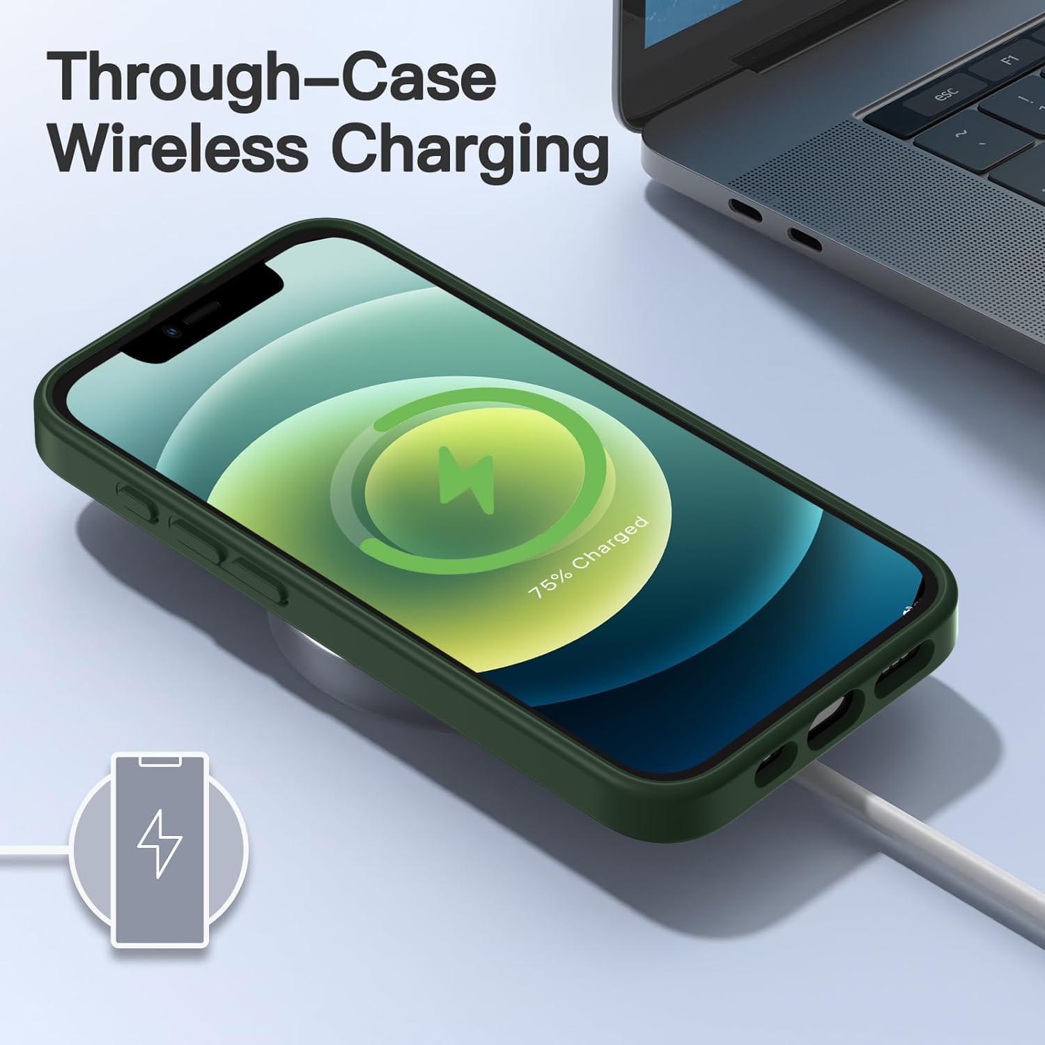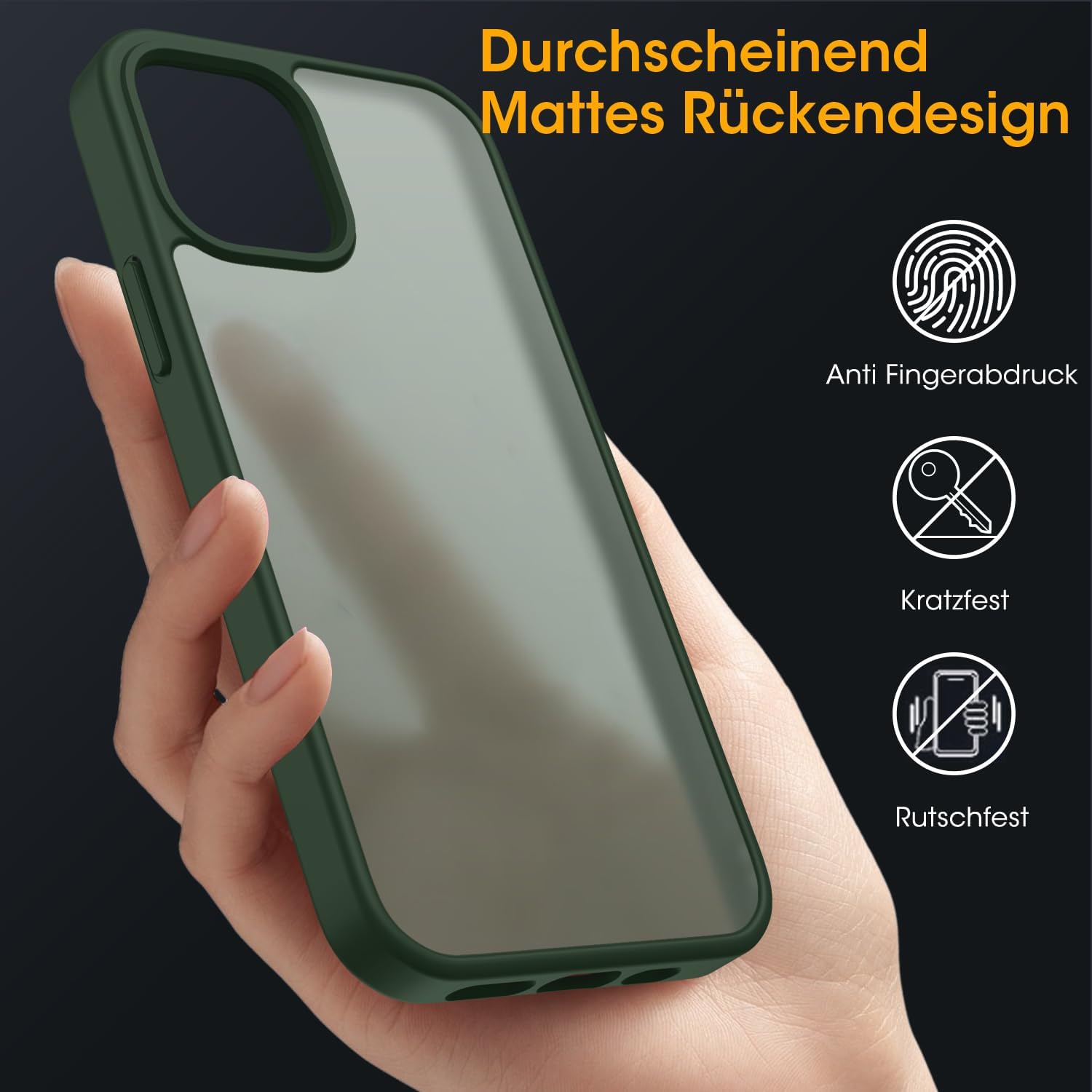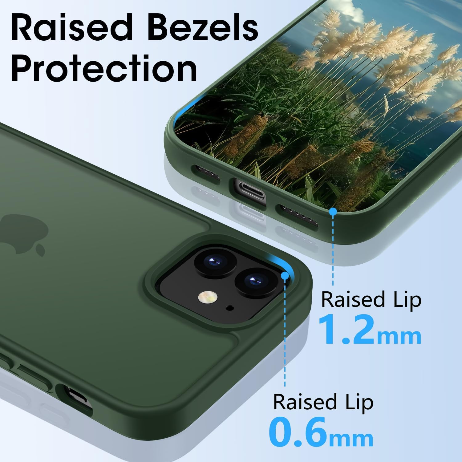HGH Матов Кейс за iPhone 12 Mini 5.4 инча, Военен Защитен Калъф Кадифен Матов Против Надраскване, Прозрачен Защитен Кейс За Гръб, Против Отпечатъци от Пръсти (Тъмно Зелен)