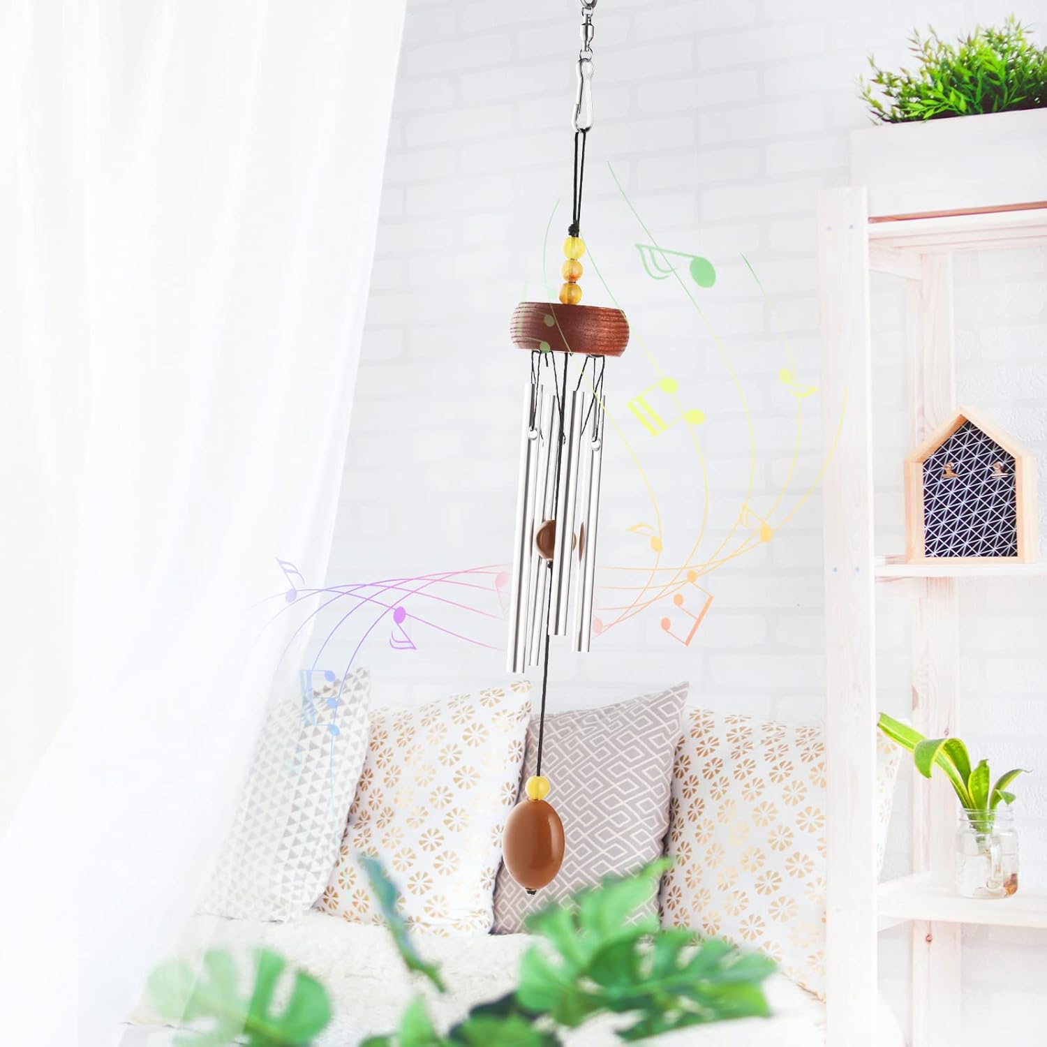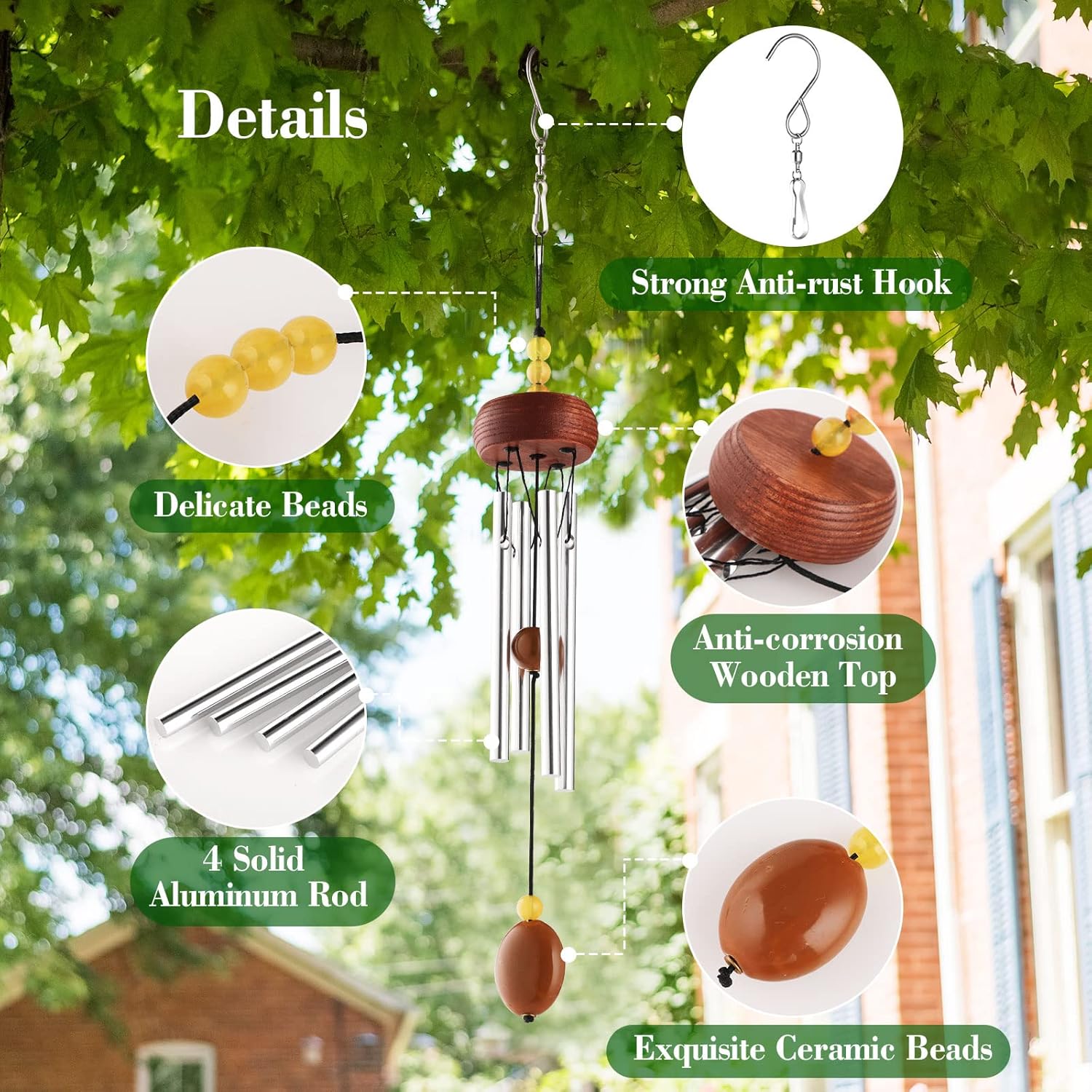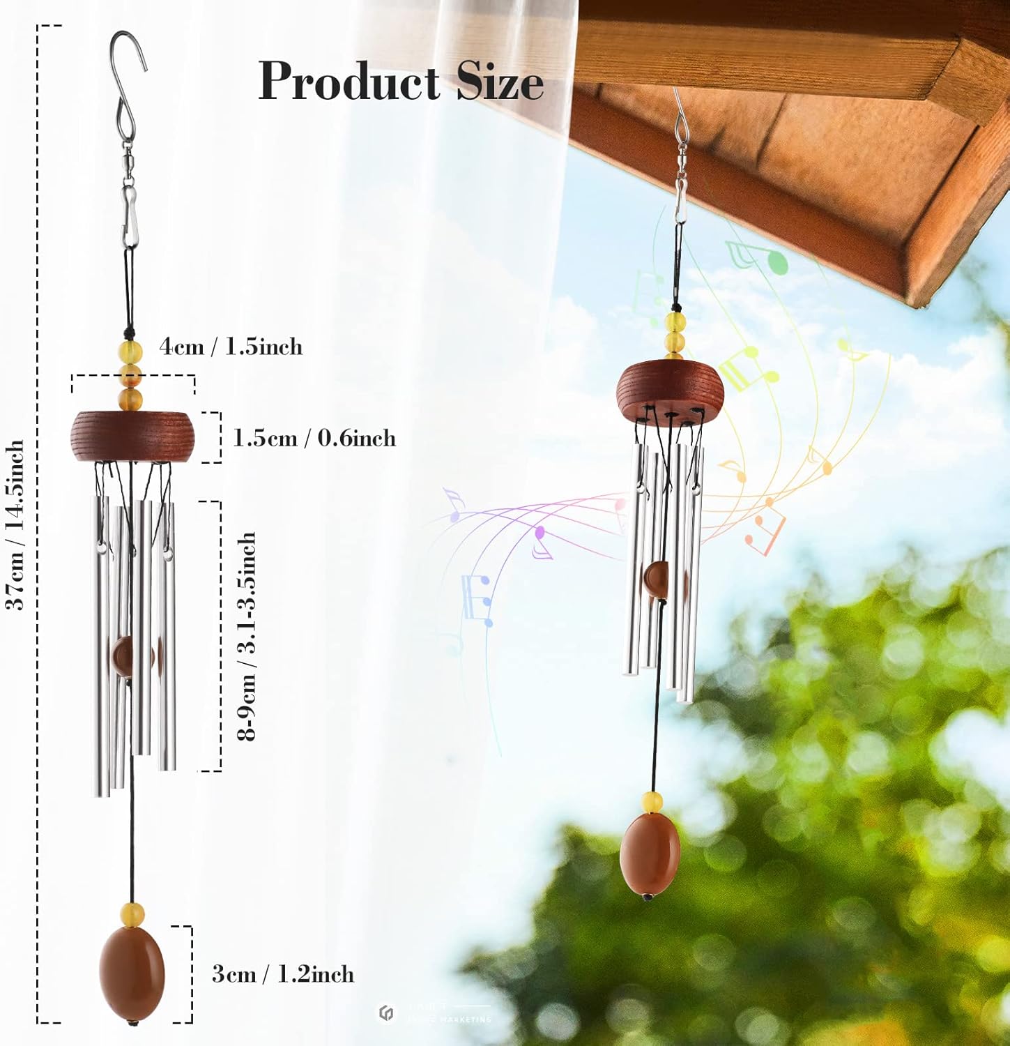 • Мелодичен звук: Четири плътни алуминиеви пръта и керамични мъниста се сблъскват и танцуват с вятъра, създавайки възхитителни звуци, които успокояват ума и облекчават напрежението. Насладете се на спокойните мелодии, които звучат като шепот в бриза.
