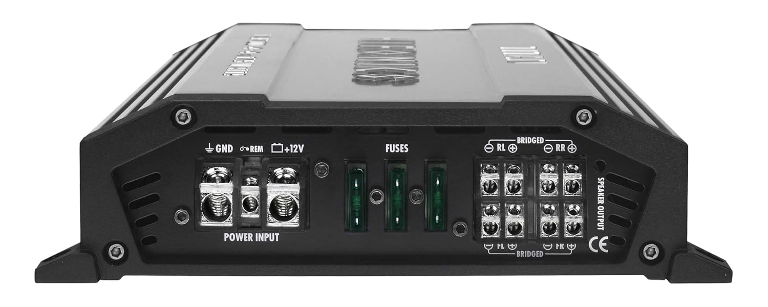 Само радиаторът от полиран алуминий е истинска забележителност. Черните крайни капачки от лят алуминий допълнително подчертават впечатлението за високо качество. Особен акцент е не само осветеното в синьо лого на HiFonics, но и фино осветените конектори за захранване и високоговорители. Това показва ясно, дори на тъмно, че това е усилвател от серията HiFonics EVO.