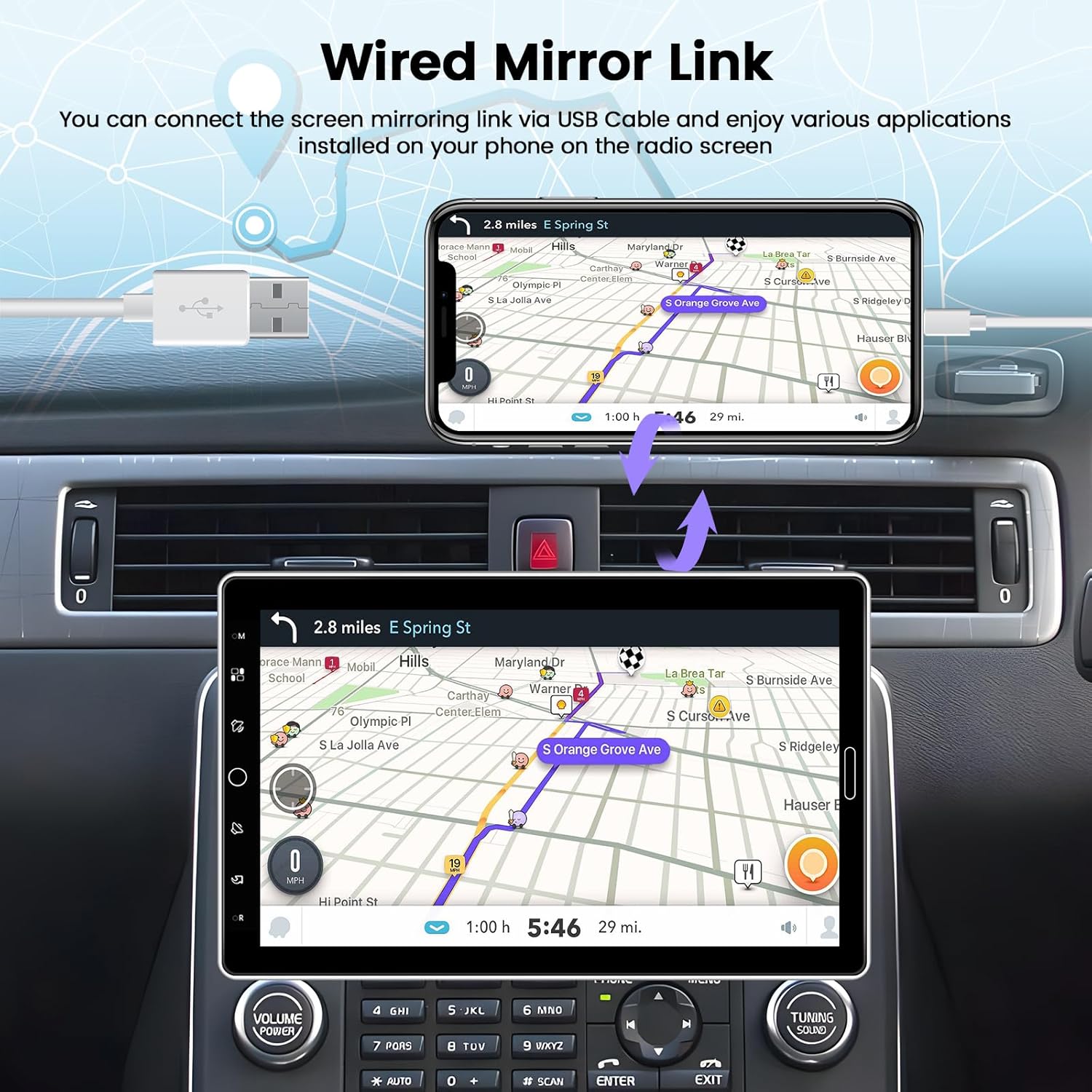 • Bluetooth хендсфри и FM радио: 10-инчово автомобилно радио с вграден Bluetooth 4.2, функция хендсфри за всички смартфони, синхронизиран телефонен указател и възпроизвеждане на музика през Bluetooth по всяко време. До 18 предварително зададени радиостанции за прогноза за времето, информация за трафика и много други. Настройките на еквалайзера и мощният бас осигуряват по-високо качество на музиката и правят шофирането още по-приятно.