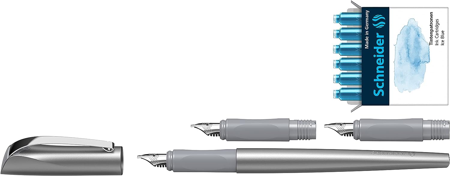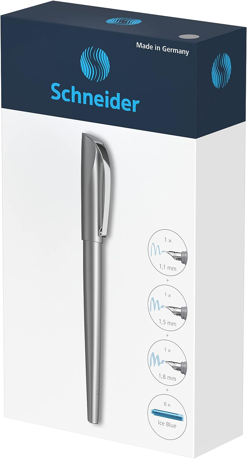 Химикалка Schneider 143812 Callissima, Син цвят на мастилото, 3 различни размера на писеца, 1.1 / 1.5 / 1.8 мм, Сива