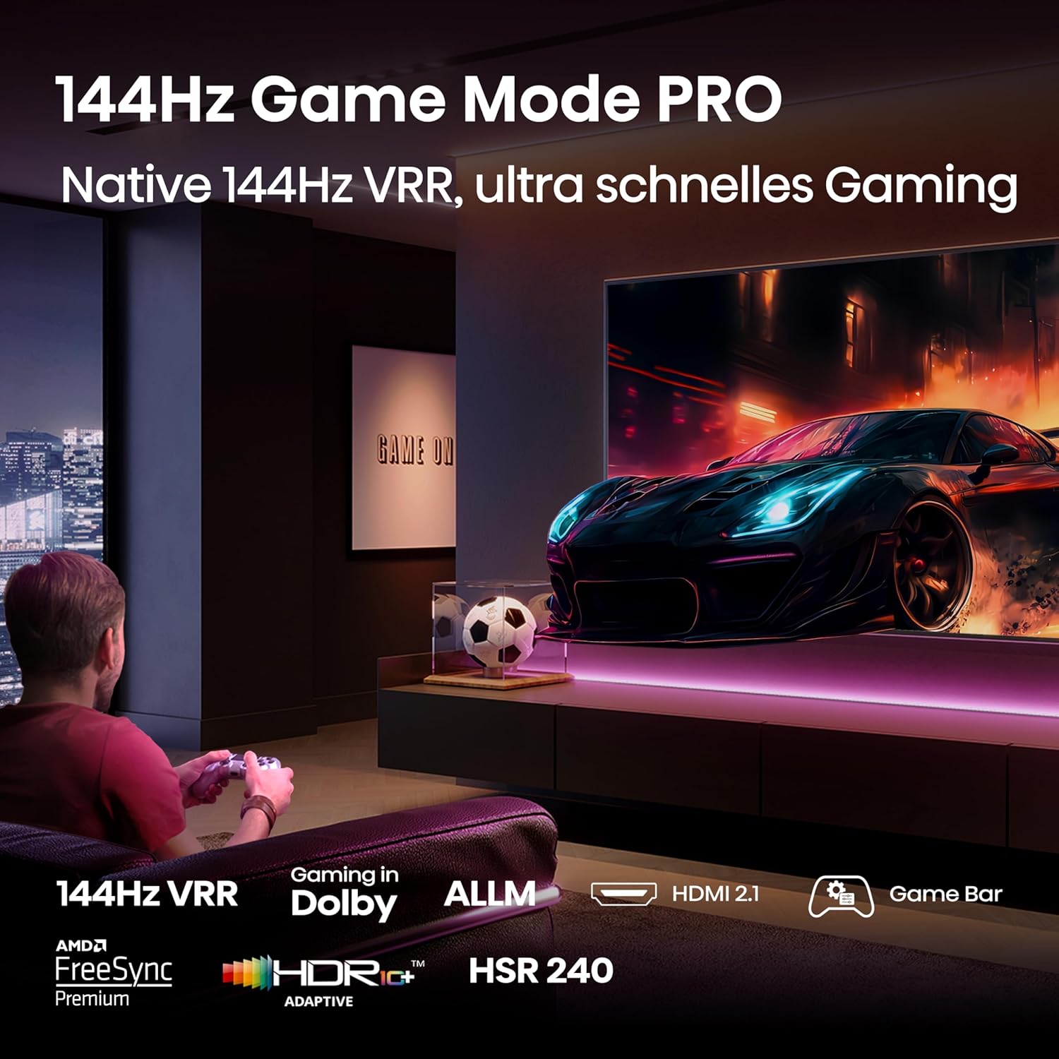 • Режим на игра PLUS: Подобрете игровото си изживяване с режим на игра PLUS, включващ лента за игри като интегриран контролен център. VRR и ALLM намаляват входното забавяне и елиминират накъсването на екрана. Насладете се на плавен геймплей на достъпен телевизор!