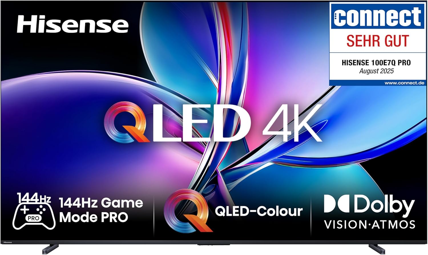 Hisense 43E7Q PRO телевизор, 43-инчов, 4K UHD QLED, Smart TV, 144Hz Game Mode PRO, Filmaker Mode, AMD FreeSync Premium, AI HDR Upscaler, Dolby Vision IQ, Dolby Atmos, Гласово управление [2025]