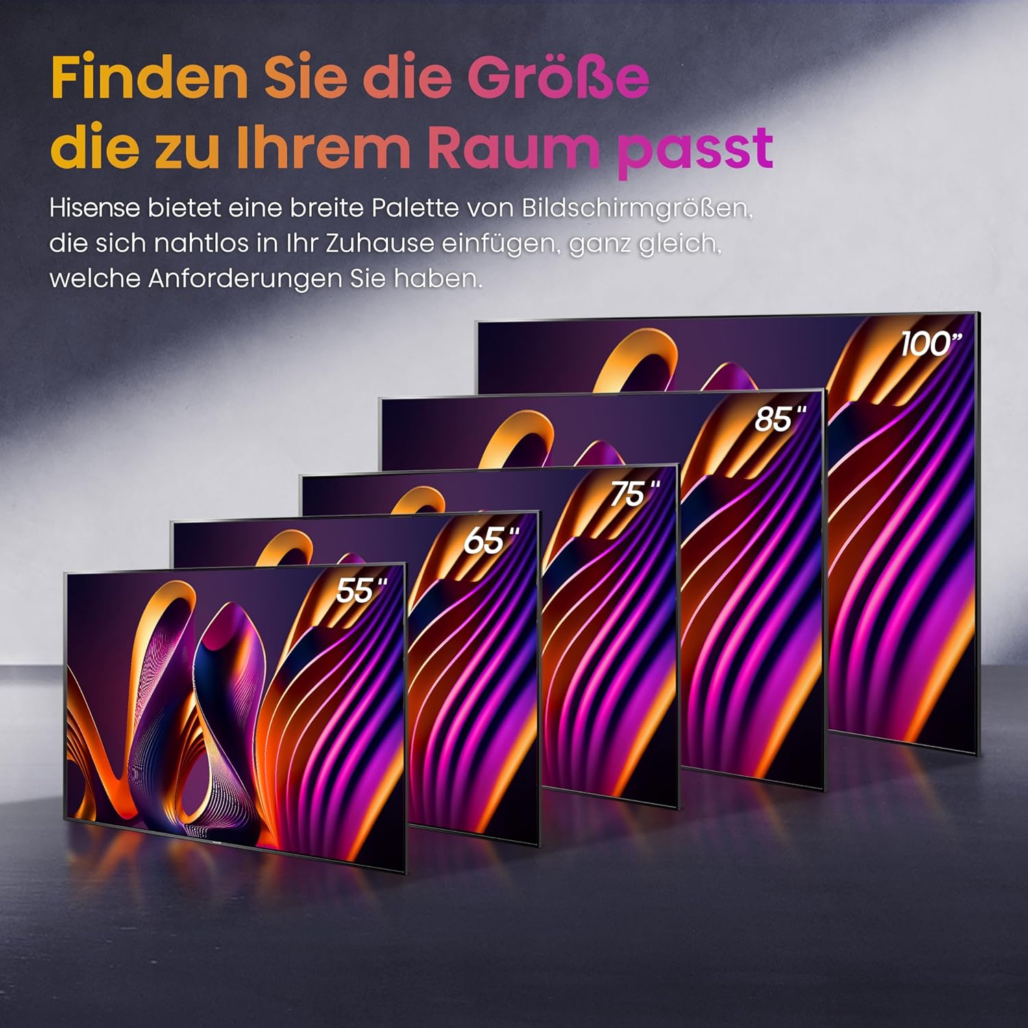 Hisense 55E7NQ Pro 139 см (55-инчов) телевизор, 4K UHD, QLED, Smart TV, Total HDR, Dolby Vision IQ Atmos, 144Hz (VRR), HDMI 2.1, Game Mode PRO, троен тунер, вградена Alexa, тъмносив, [2024]