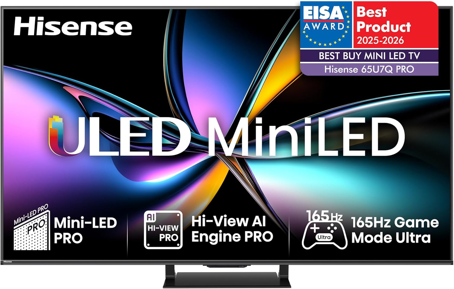 Hisense 75U7Q Pro 75-инчов 4K мини LED Smart телевизор с Hi-View AI Engine Pro, 165Hz Game Mode Ultra, FreeSync Premium Pro, 2.1.2-канален съраунд звук, Dolby Vision IQ Atmos и гласово управление [2025]