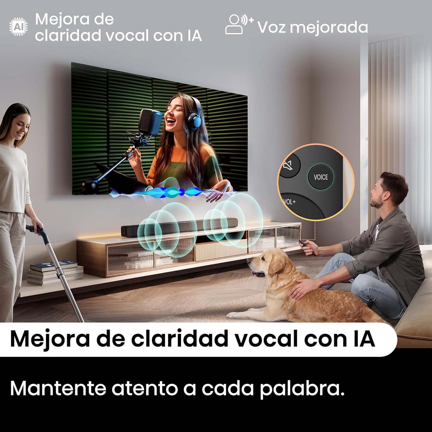• Обща мощност 240 W: идеално подобрение на звука на вашия телевизор с 2.1 канала в компактен дизайн. Включва стерео високоговорители и субуфер, интегрирани в саундбара.