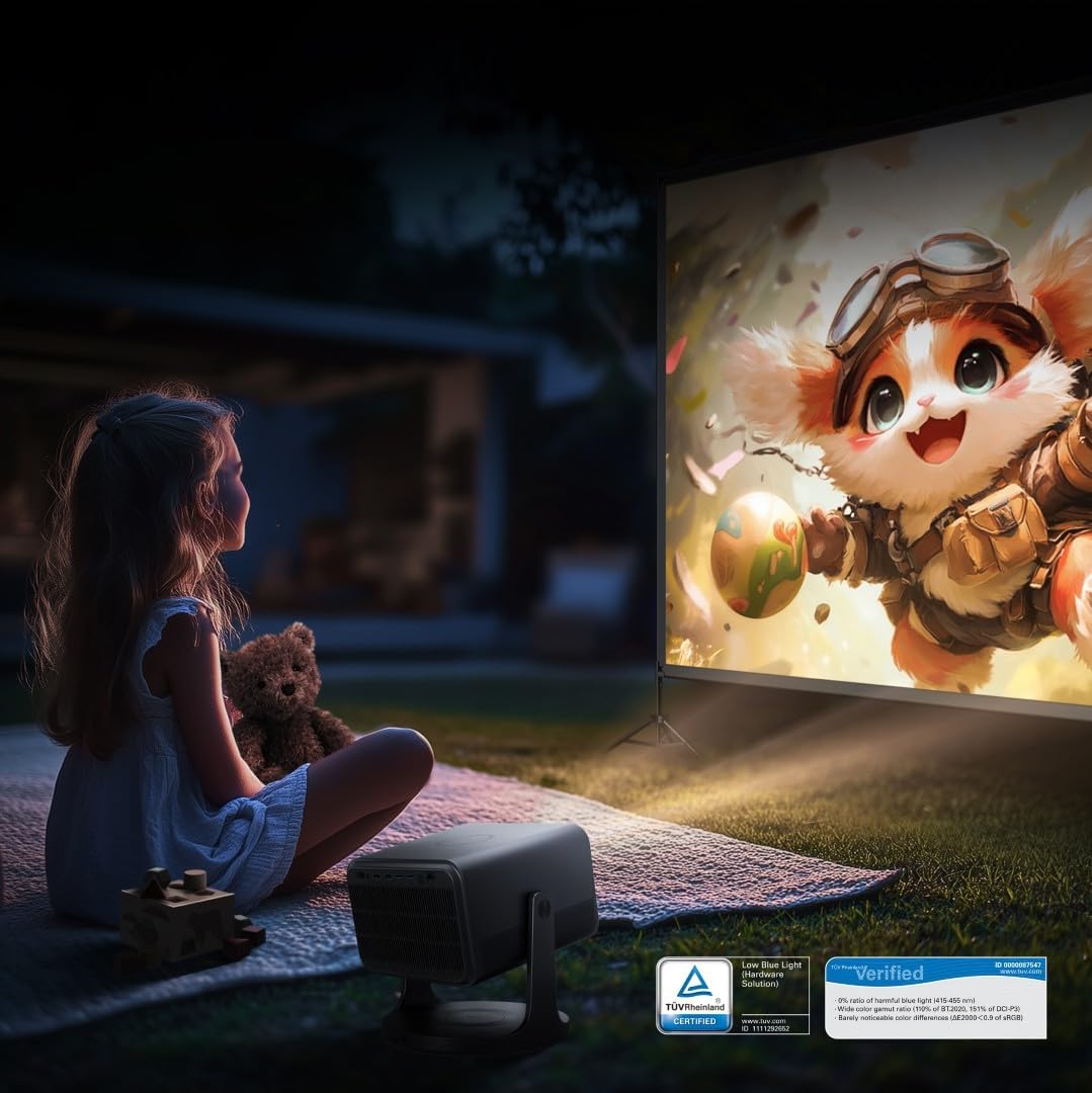 • Гъвкав и преносим: Проекторът създава брилянтни и ярки 4K изображения с препоръчителен размер от 65" - 150" и възможен размер до 300". Освен това, проекторът може лесно да се мести от стая в стая. (Екранът не е включен)