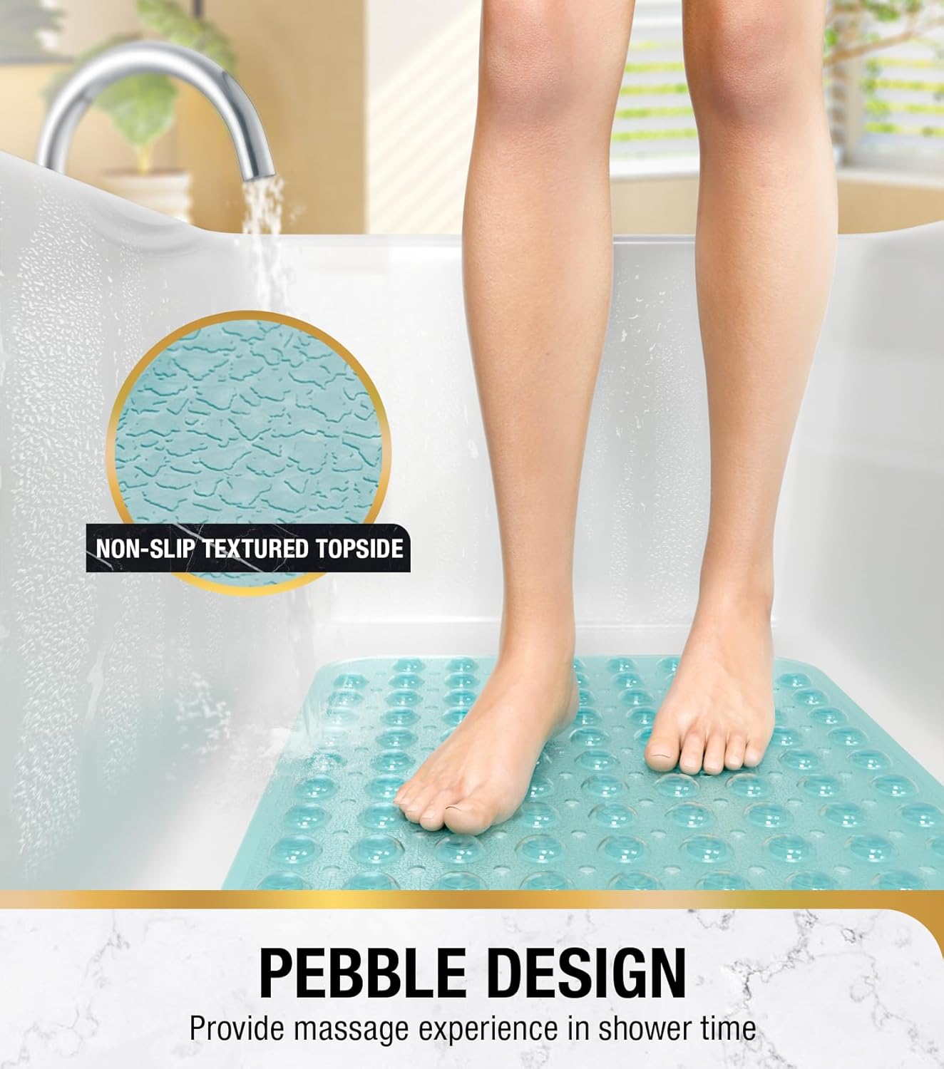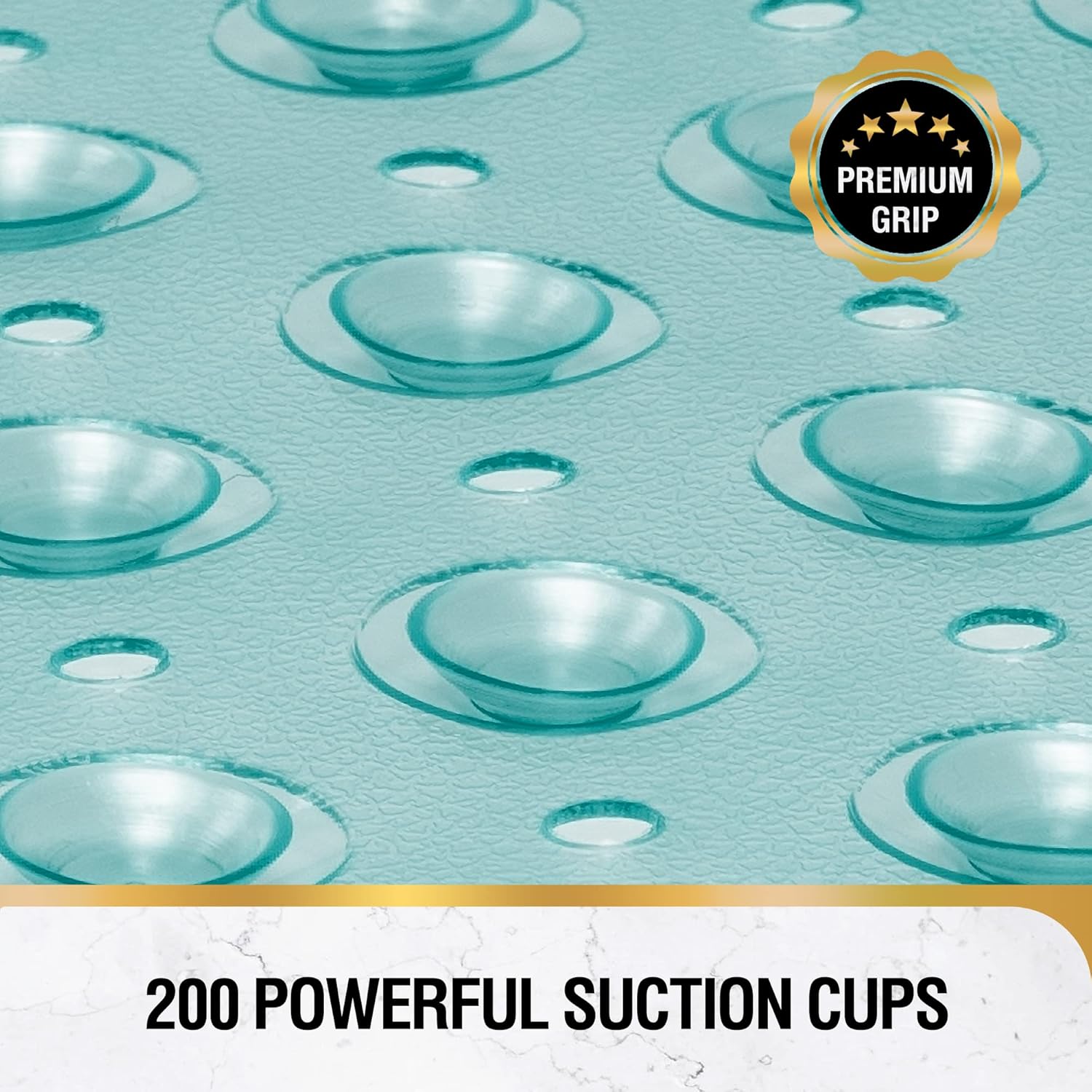 • Неплъзгаща се постелка с ултрасилно задържане: Нашата неплъзгаща се постелка за баня е снабдена с 200 здрави лепящи вендузи, които я държат здраво на място върху гладки, чисти вани и душове. Текстурата на горната част на постелката за баня увеличава триенето, така че да не се подхлъзвате или падате във ваната.
