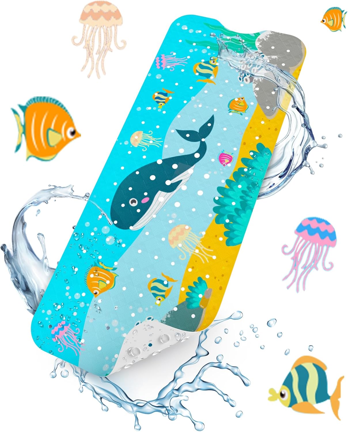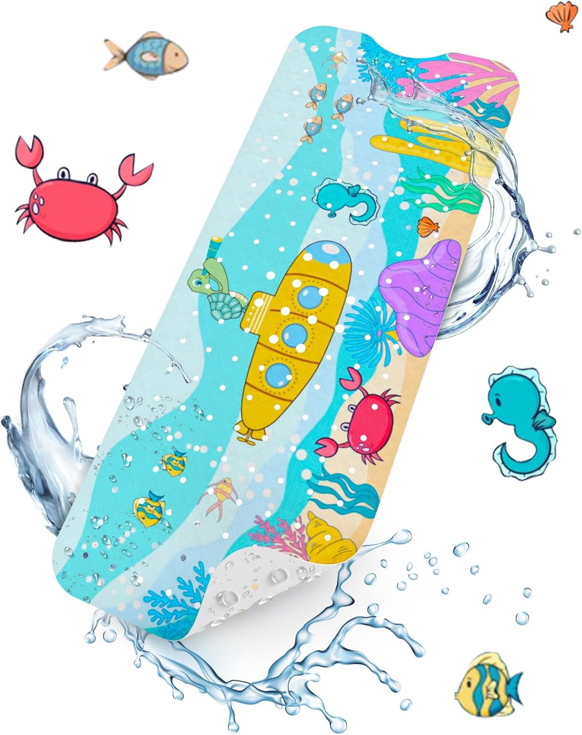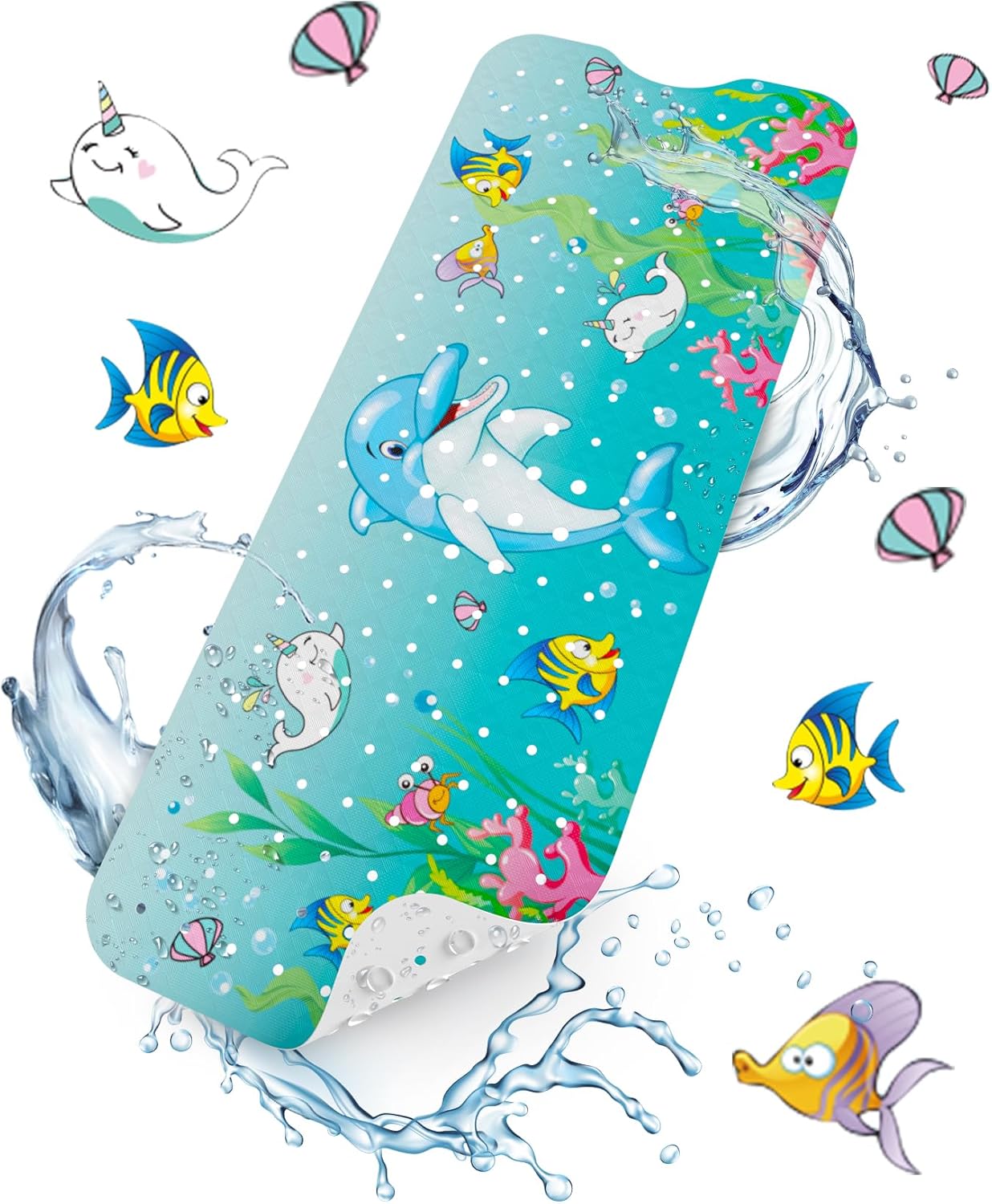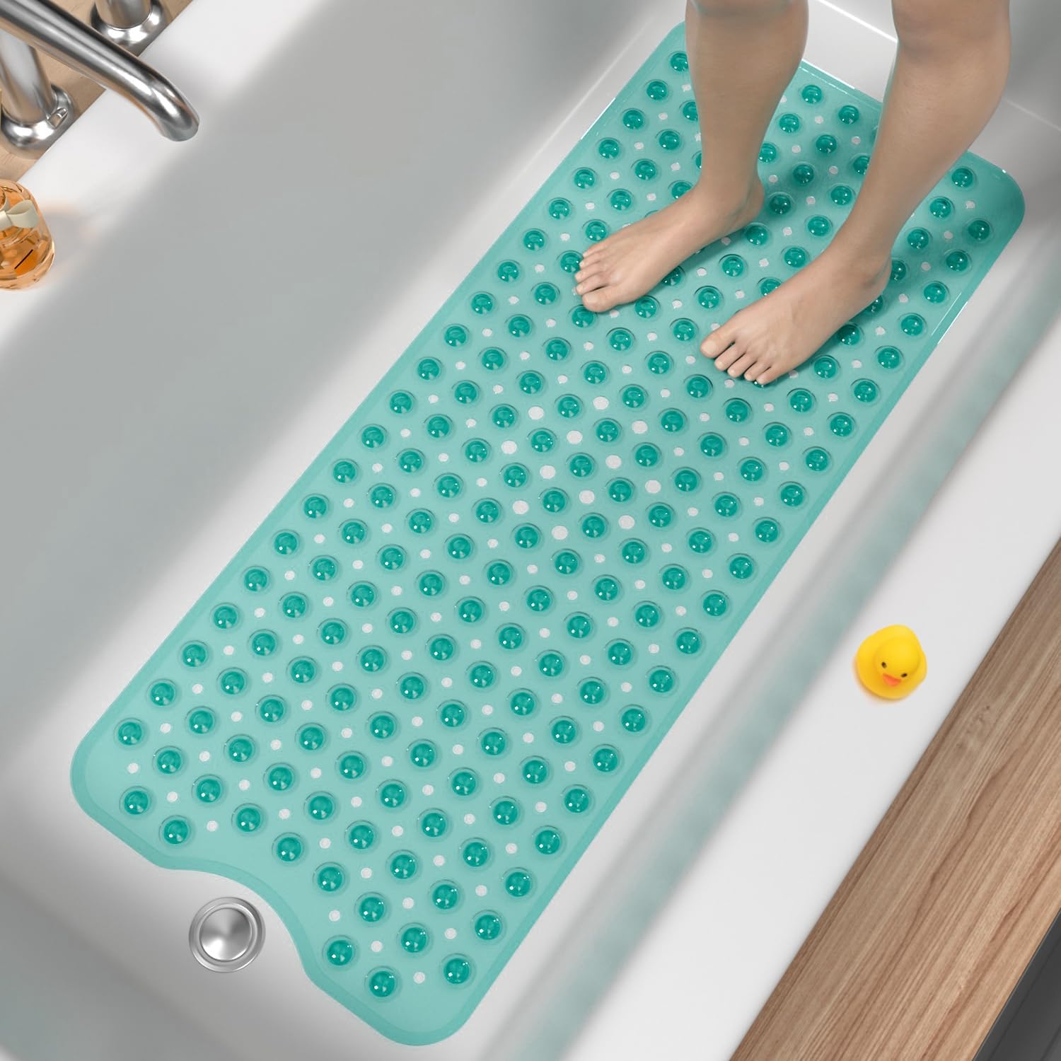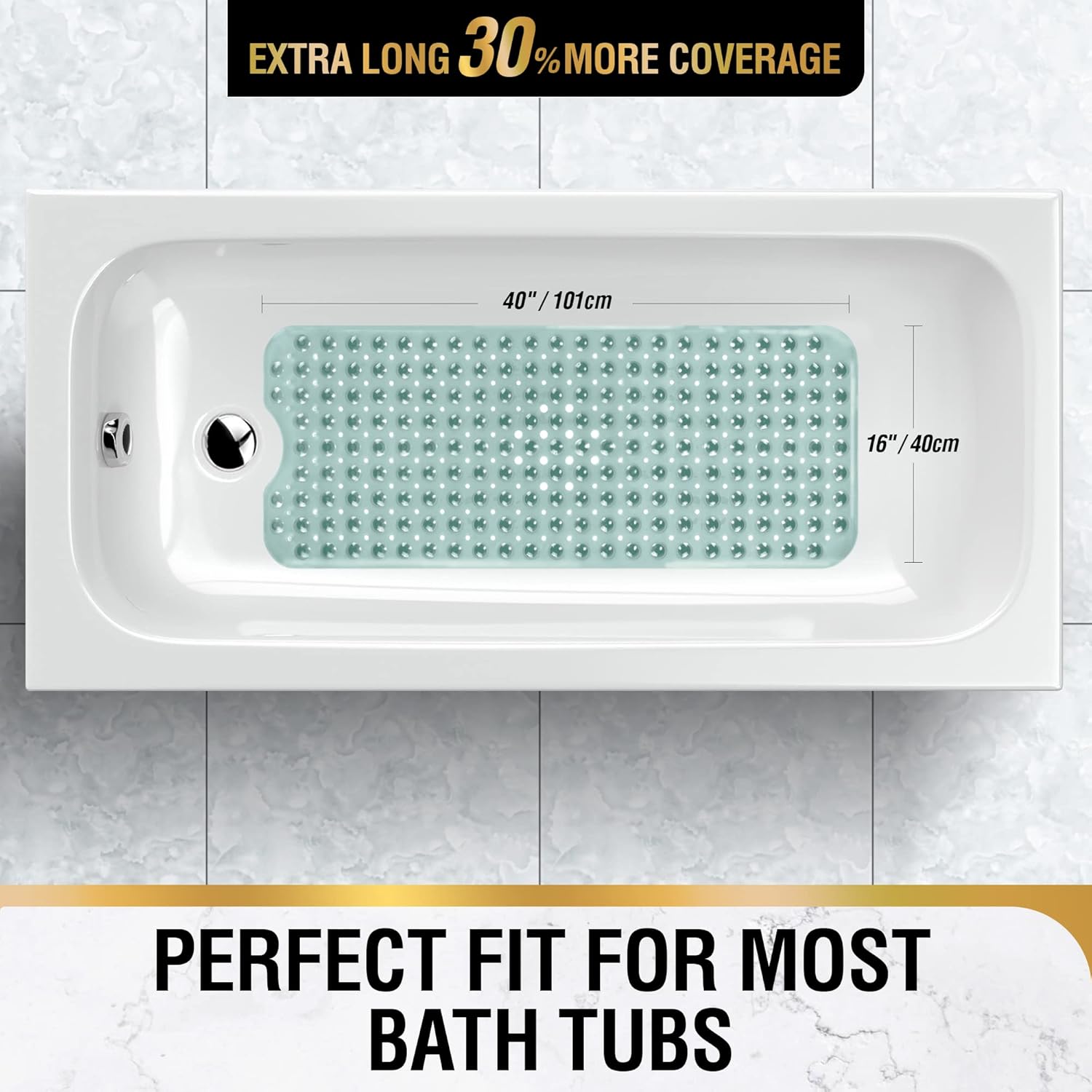 HITSLAM Неплъзгаща се постелка за баня, 101 x 40 см, Изключително дълга неплъзгаща се постелка, Вана, Постелка за душ, Неплъзгаща се, Без BPA, Устойчива на мухъл и Може да се пере в пералня, Зелена