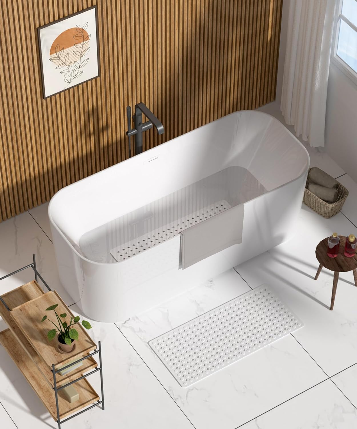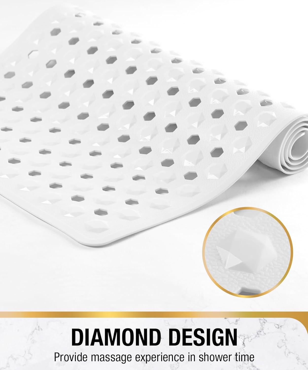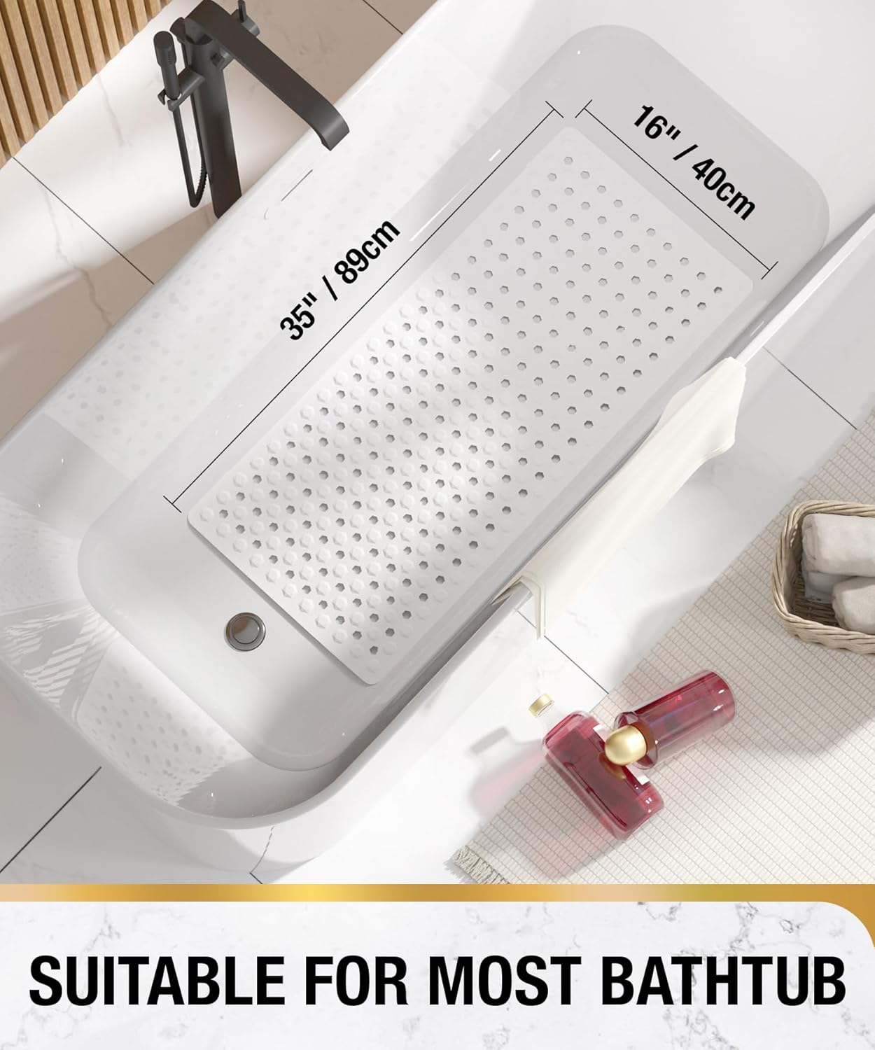 HITSLAM Неплъзгаща се постелка за баня, 89 x 40 см, Дълга неплъзгаща се постелка, Вана, Постелка за душ, Неплъзгаща се, Без BPA, Устойчива на мухъл и Може да се пере в пералня, Бързосъхнеща и лесна за почистване, Бяла
