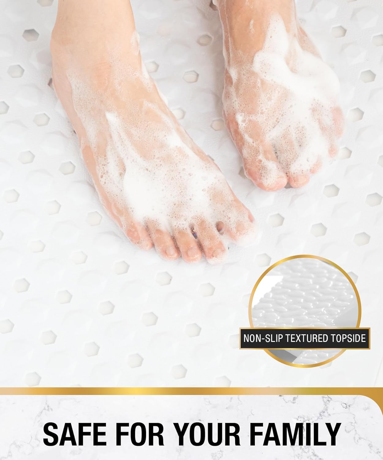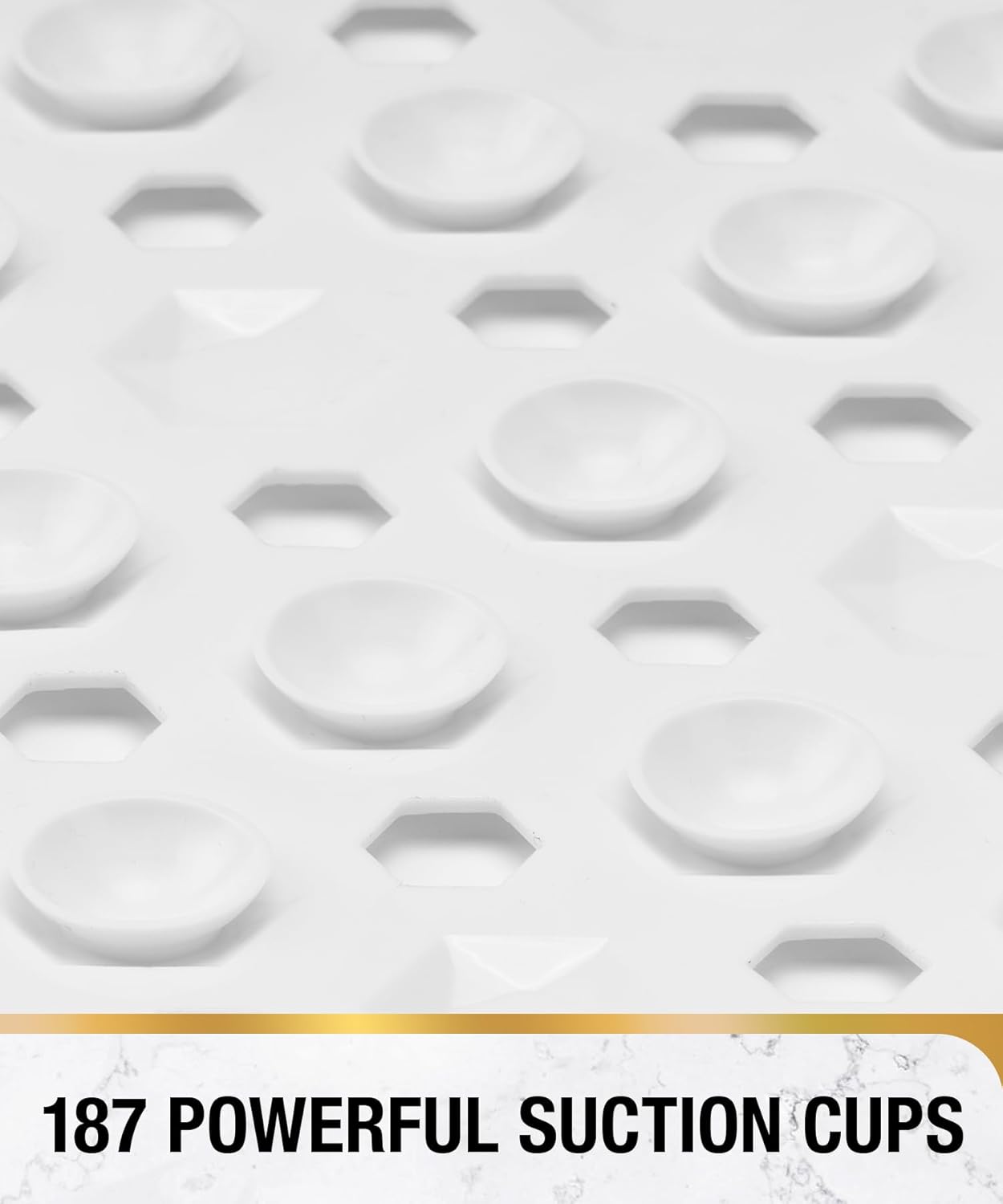 • БЕЗОПАСНОСТ И ПРОТИВОХЛЪЗГАЩА УСТОЙЧИВОСТ Тази постелка за баня има 187 здрави вендузи, които се залепват здраво за пода на ваната и душа, осигурявайки дълготрайна защита от хлъзгане. Особено подходяща е за възрастни хора, бебета и малки деца.