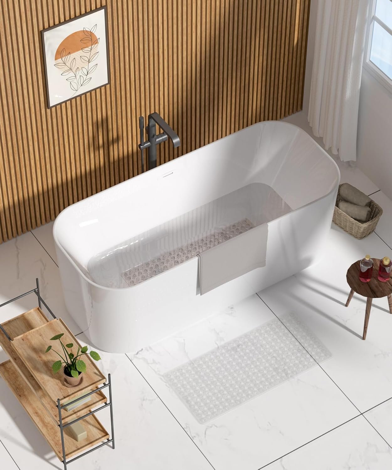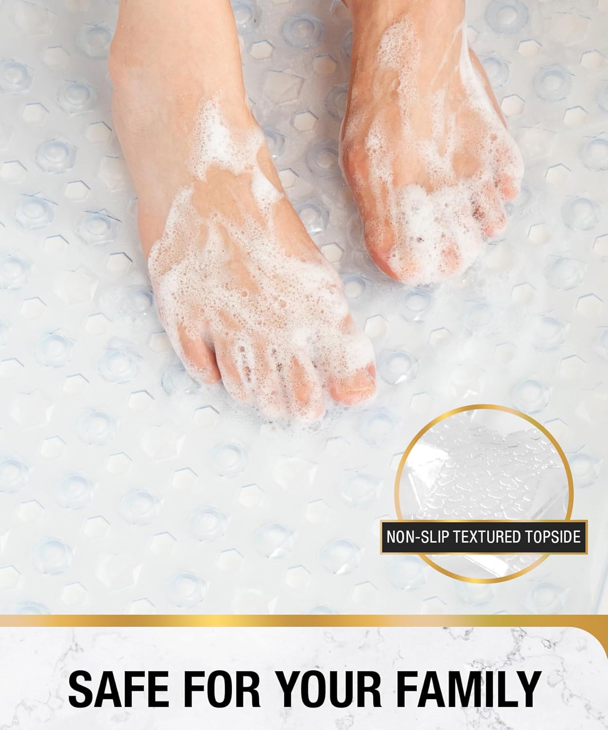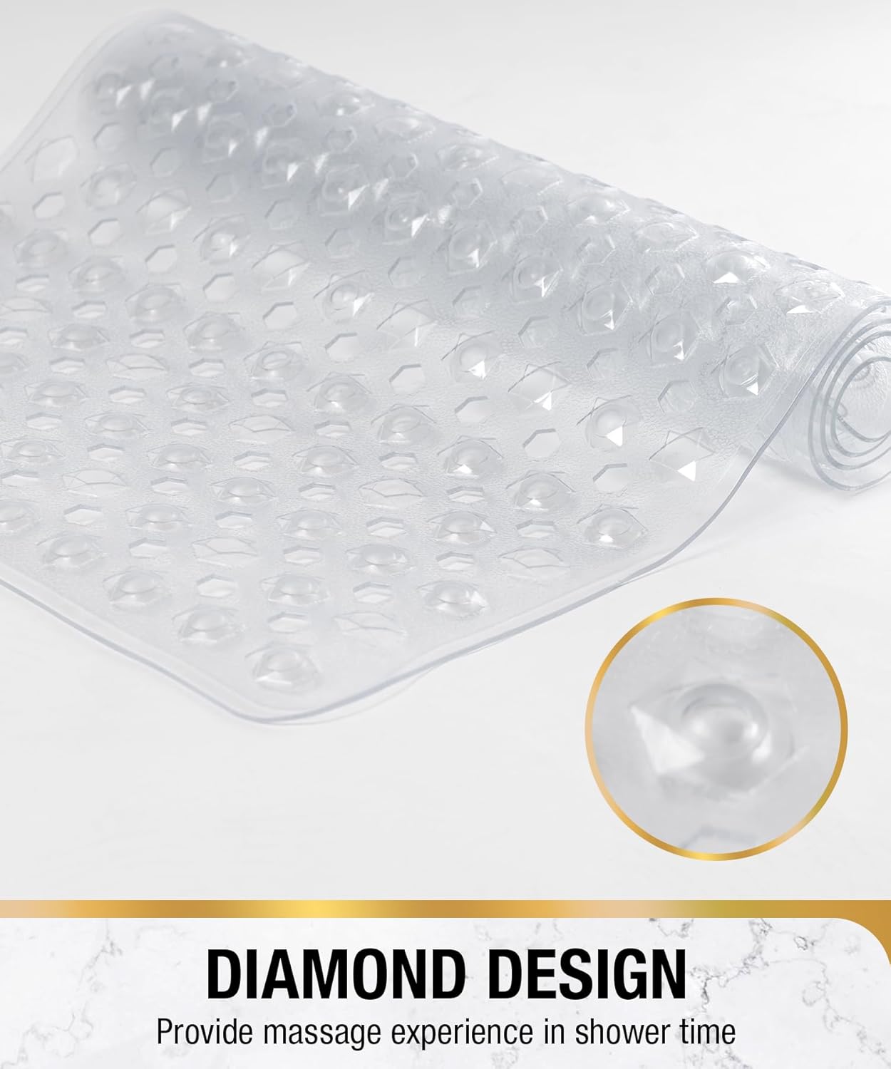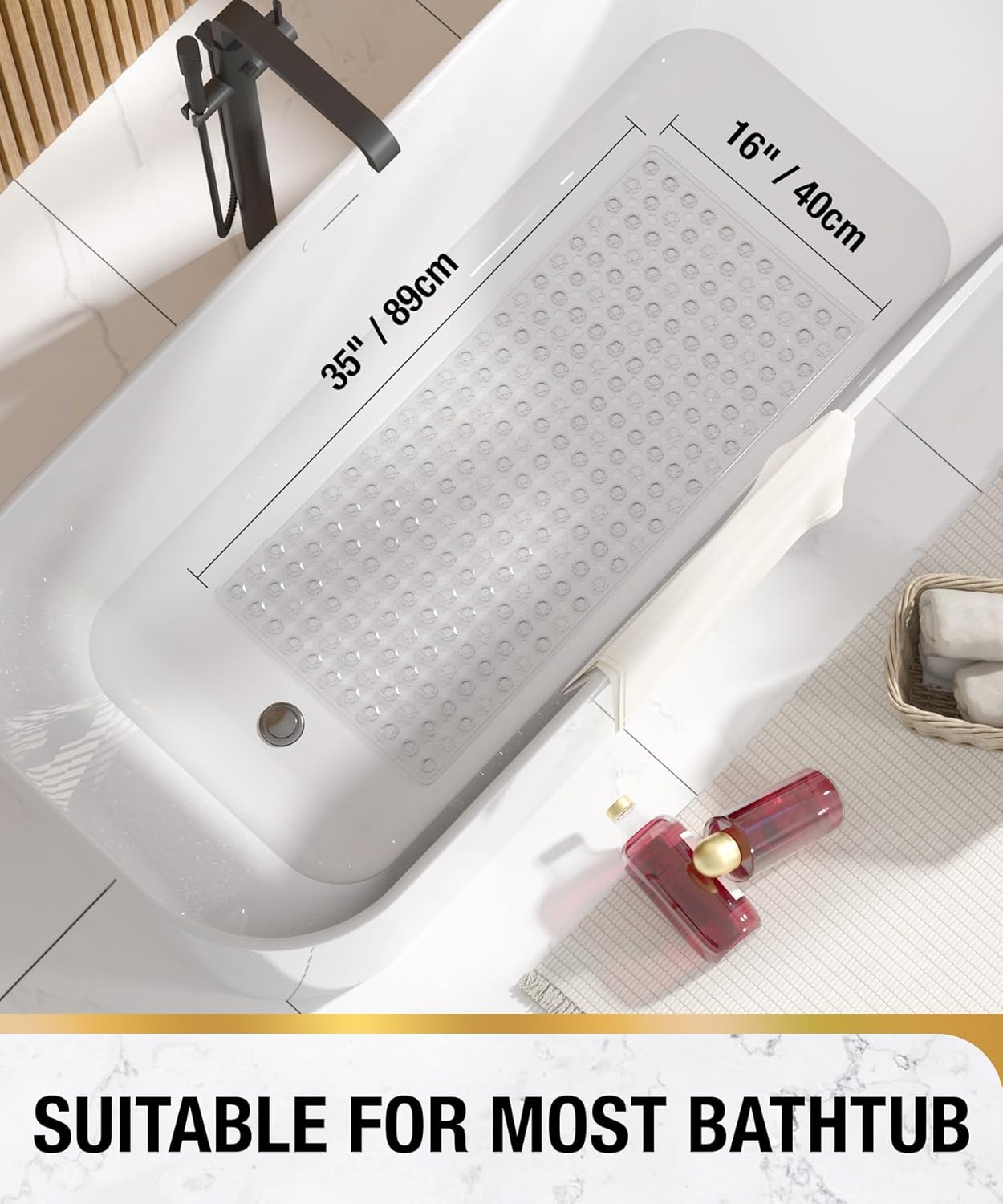 HITSLAM Неплъзгаща се постелка за баня, 89 x 40 см, Дълга неплъзгаща се постелка, Вана, Постелка за душ, Неплъзгаща се, Без BPA, Устойчива на мухъл и Може да се пере в пералня, Бързосъхнеща и лесна за почистване, Прозрачна