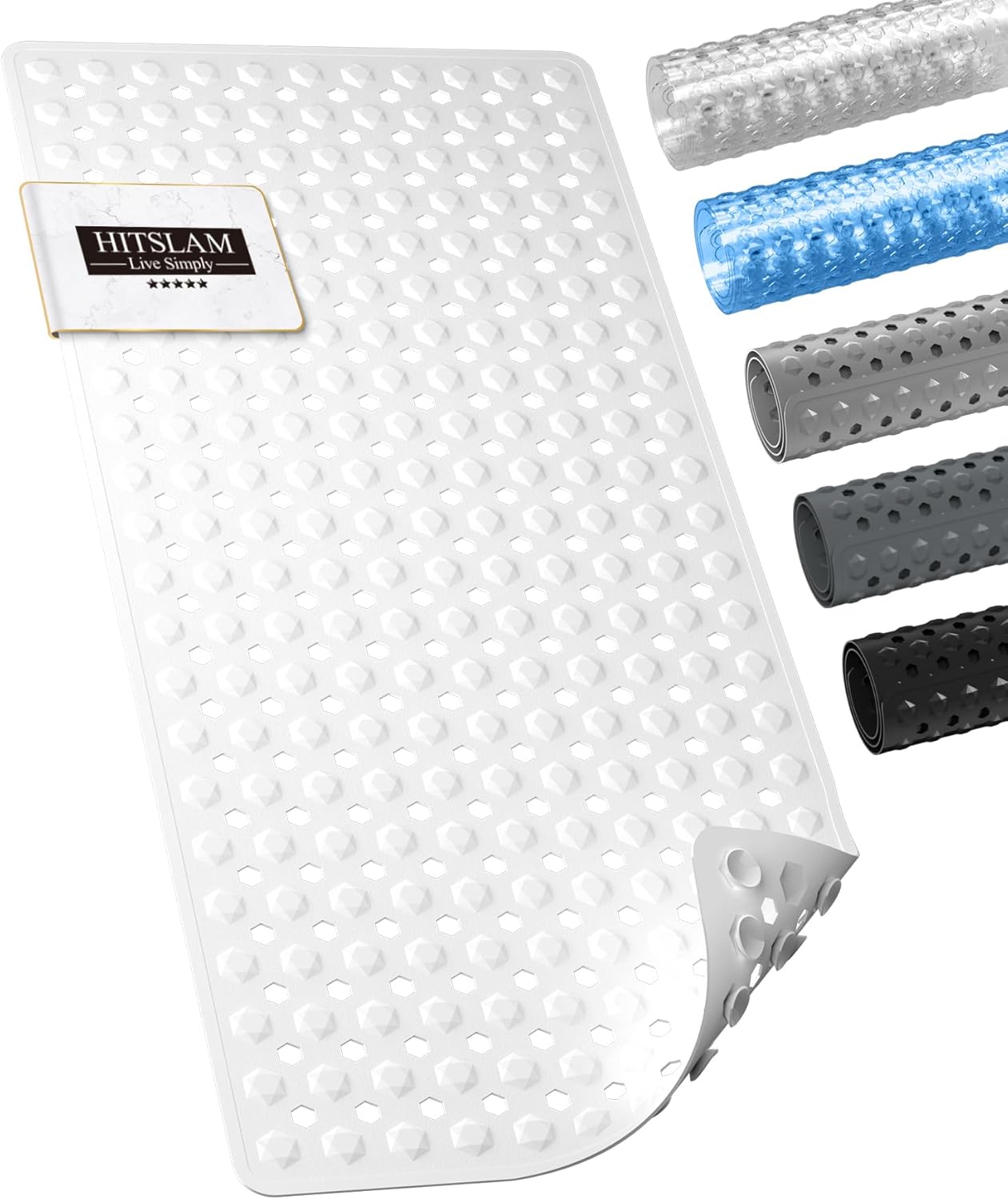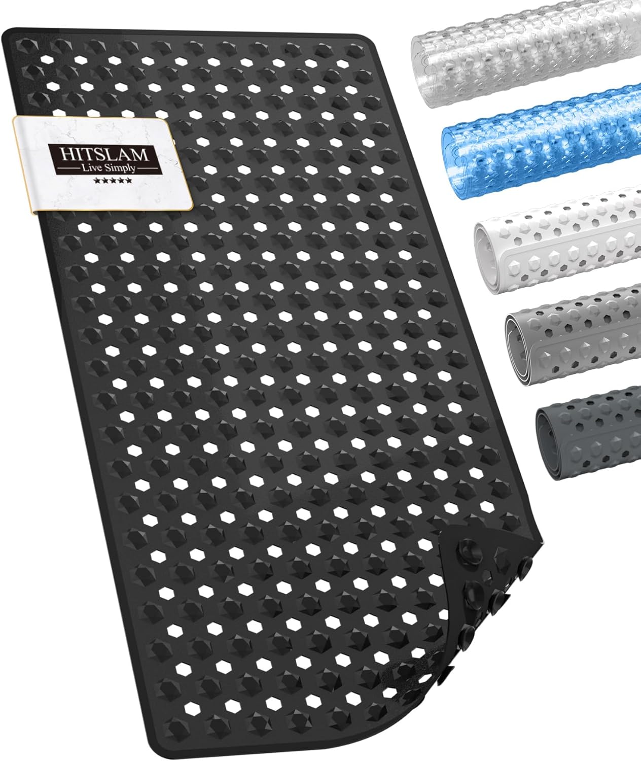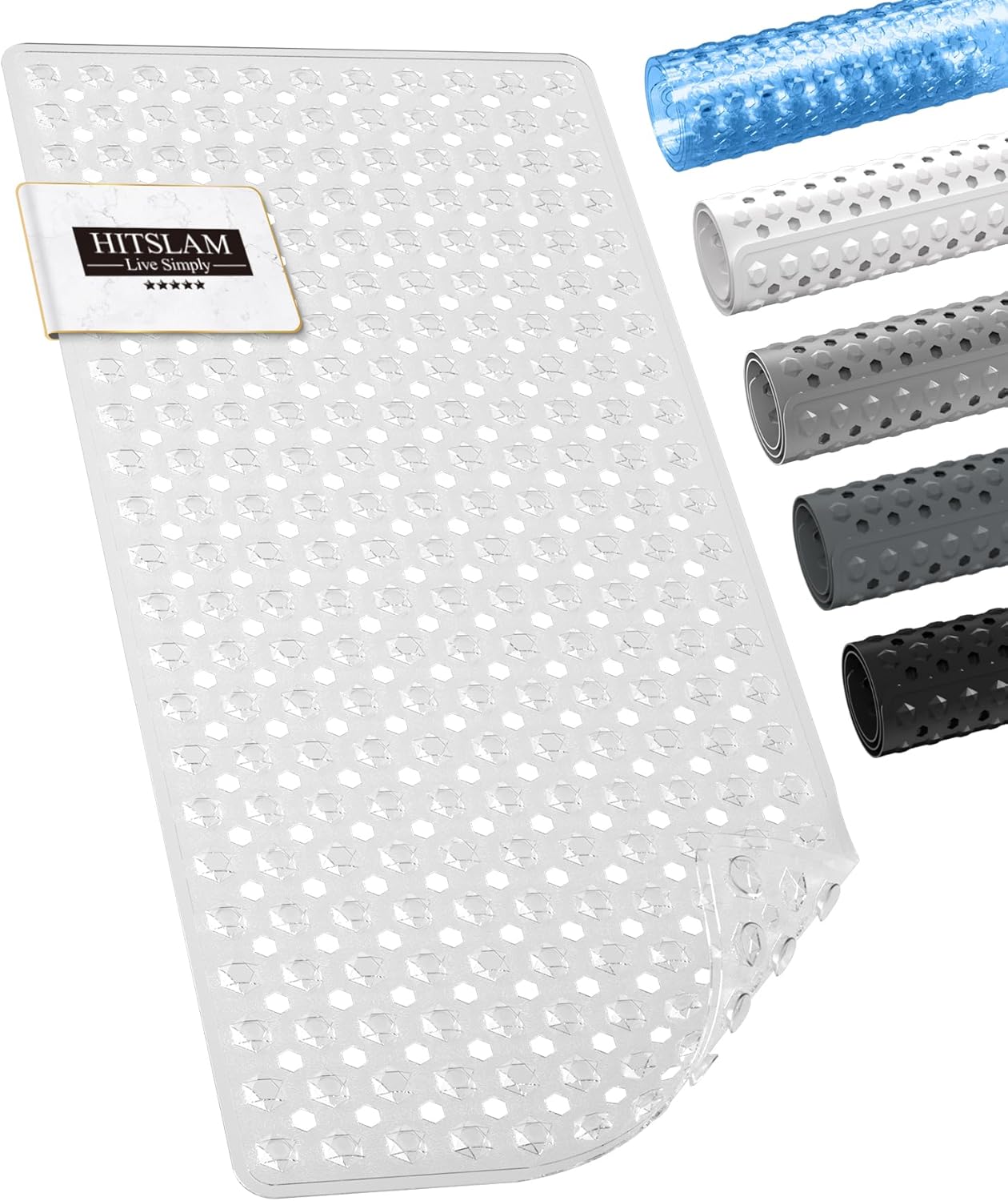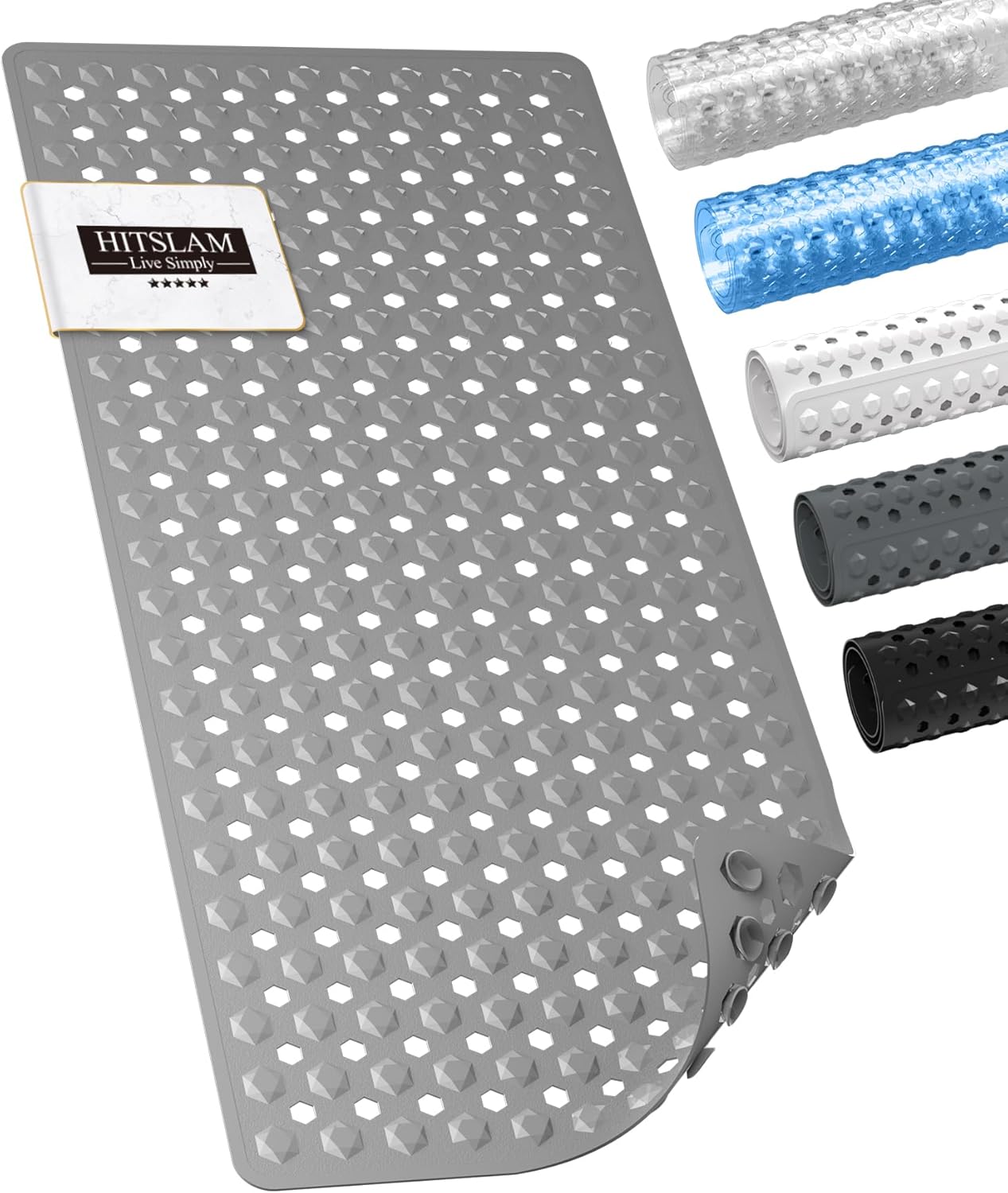 HITSLAM Неплъзгаща се постелка за баня, 89 x 40 см, Дълга неплъзгаща се постелка, Вана, Постелка за душ, Неплъзгаща се, Без BPA, Устойчива на мухъл и Може да се пере в пералня, Бързосъхнеща и лесна за почистване, Сива