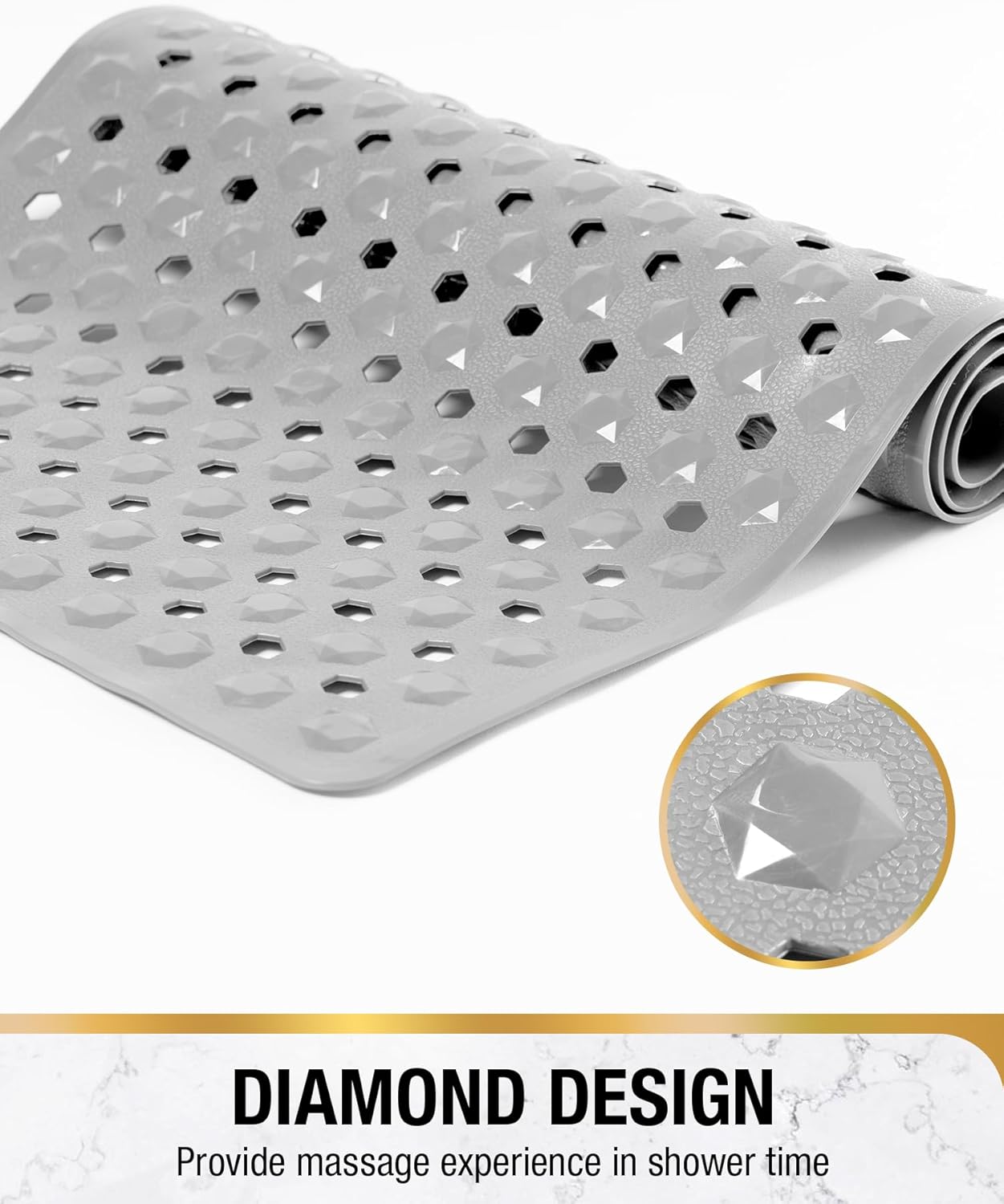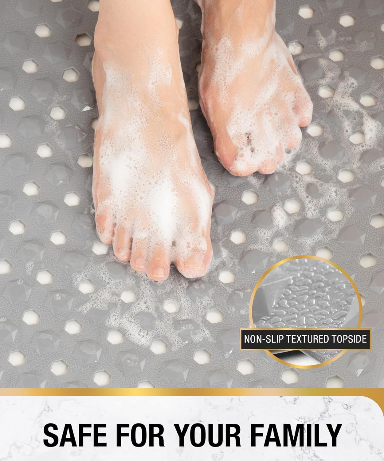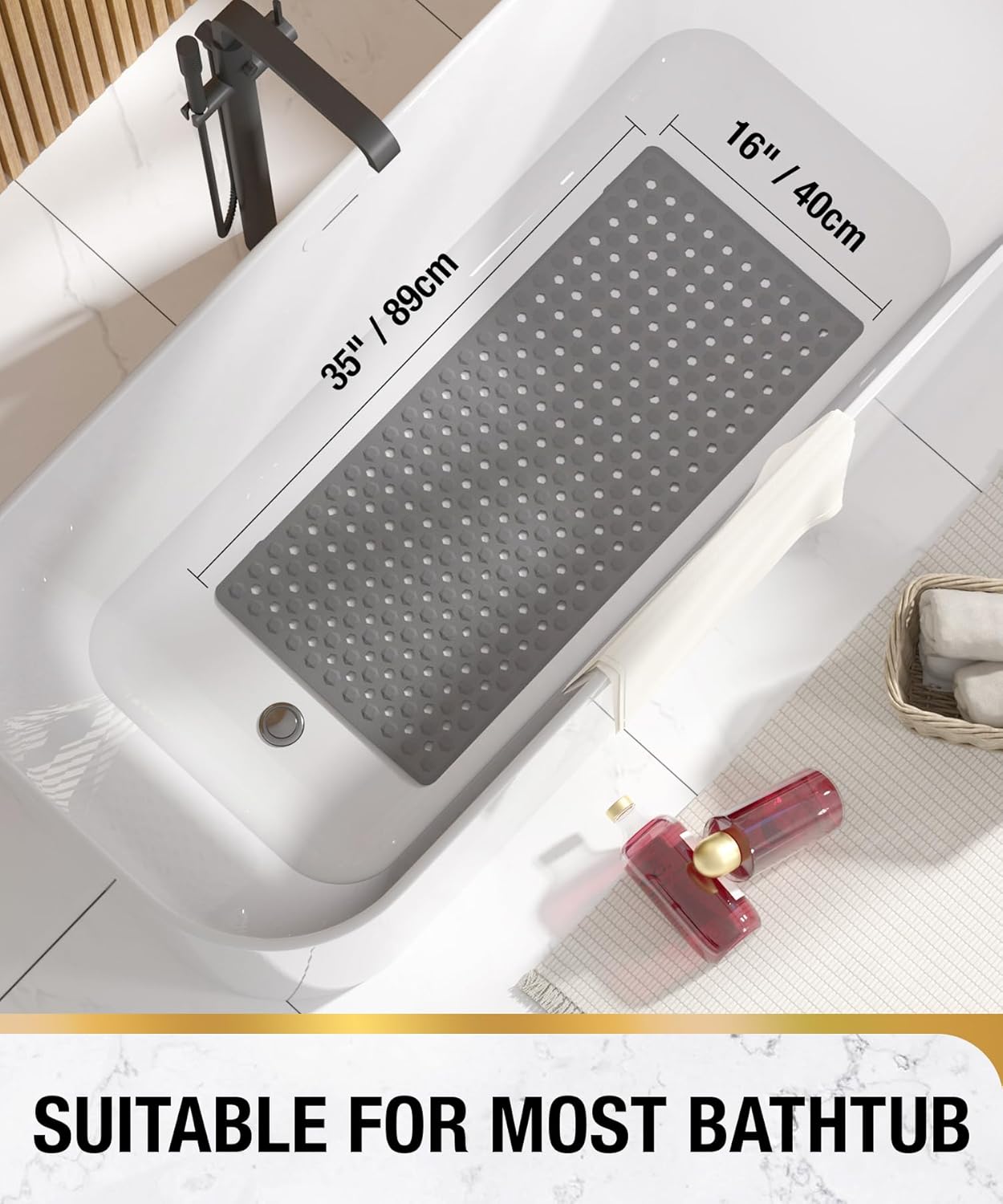 HITSLAM Неплъзгаща се постелка за баня, 89 x 40 см, Дълга неплъзгаща се постелка, Вана, Постелка за душ, Неплъзгаща се, Без BPA, Устойчива на мухъл и Може да се пере в пералня, Бързосъхнеща и лесна за почистване, Сива