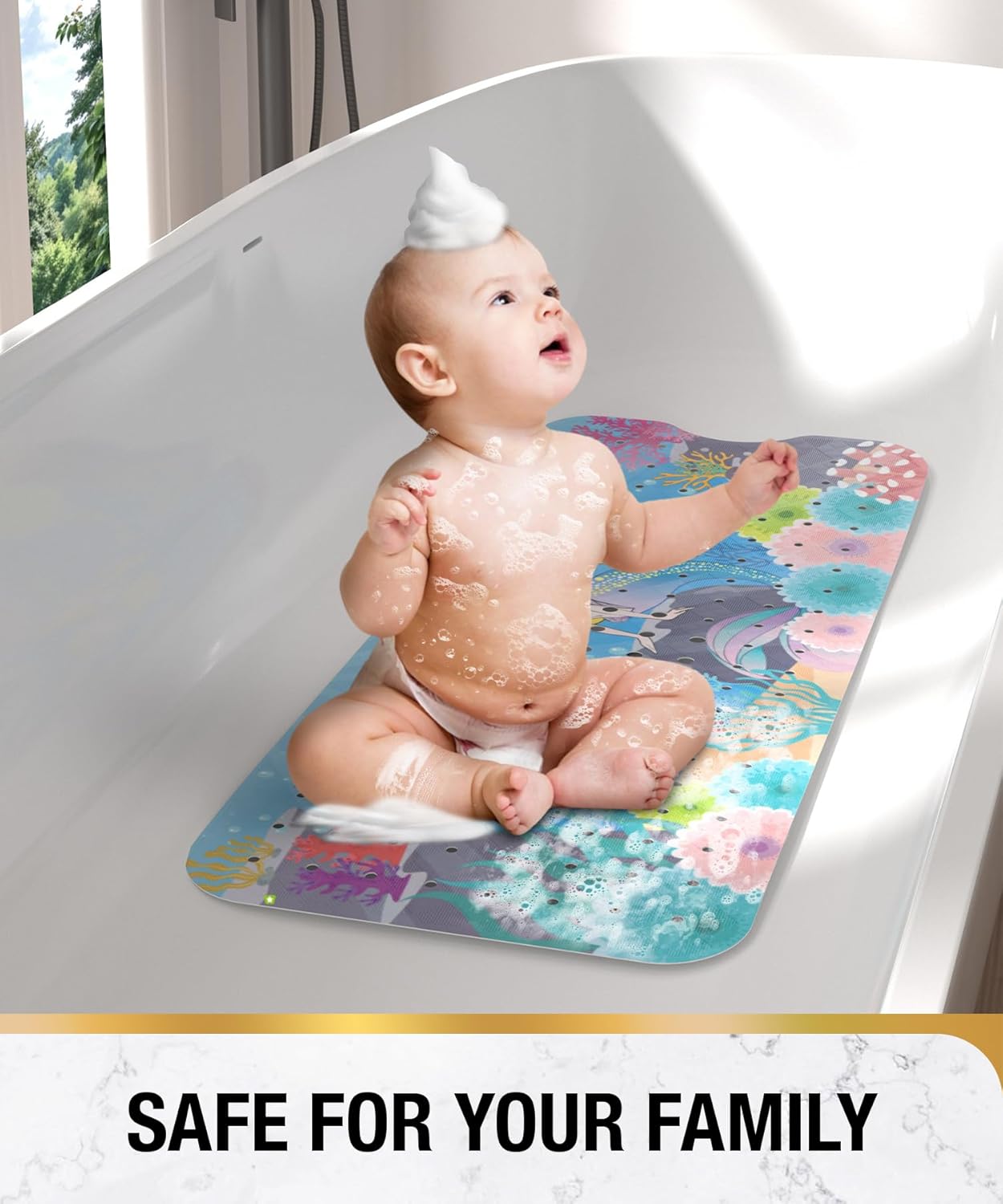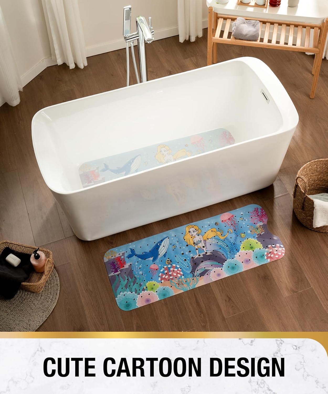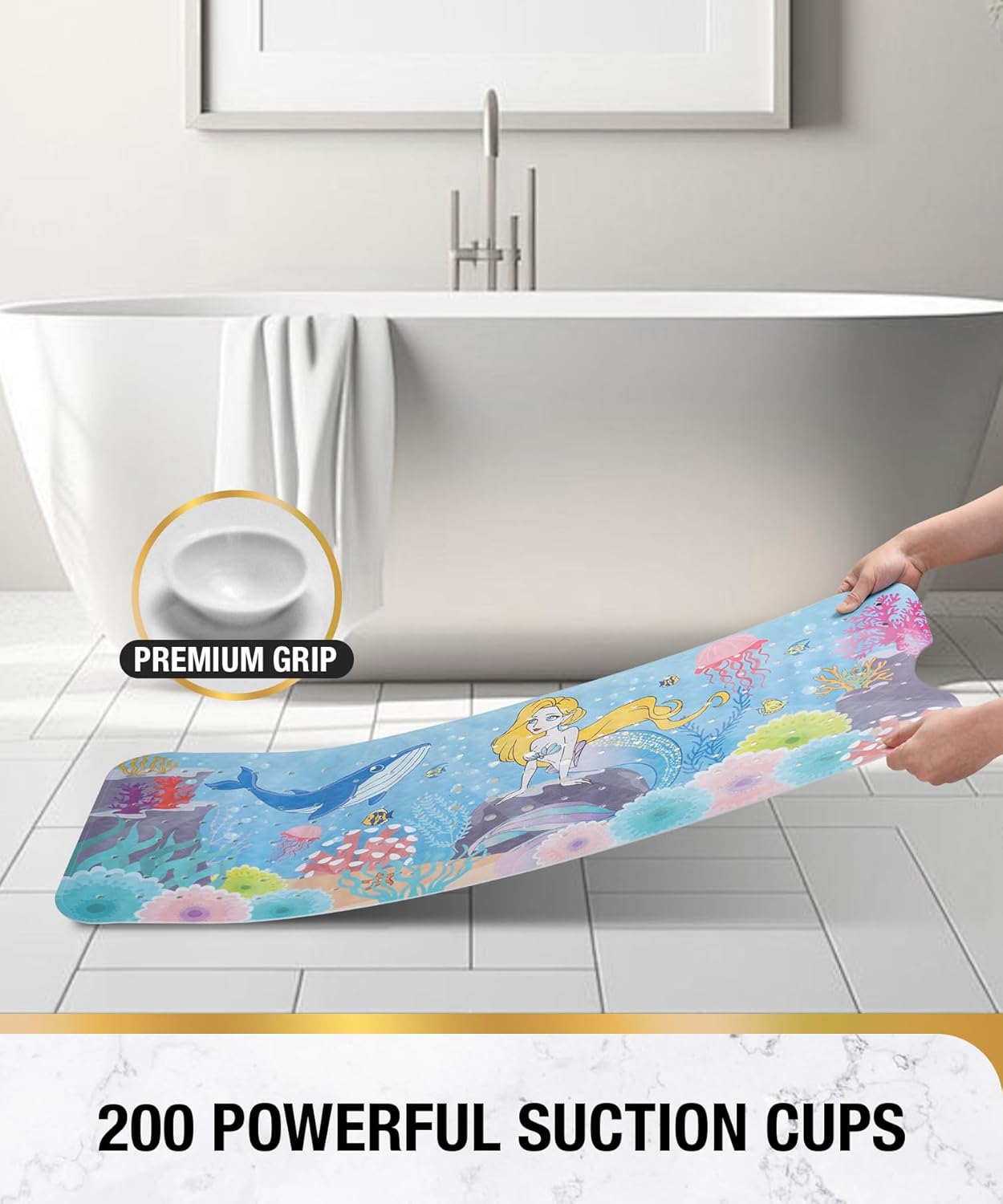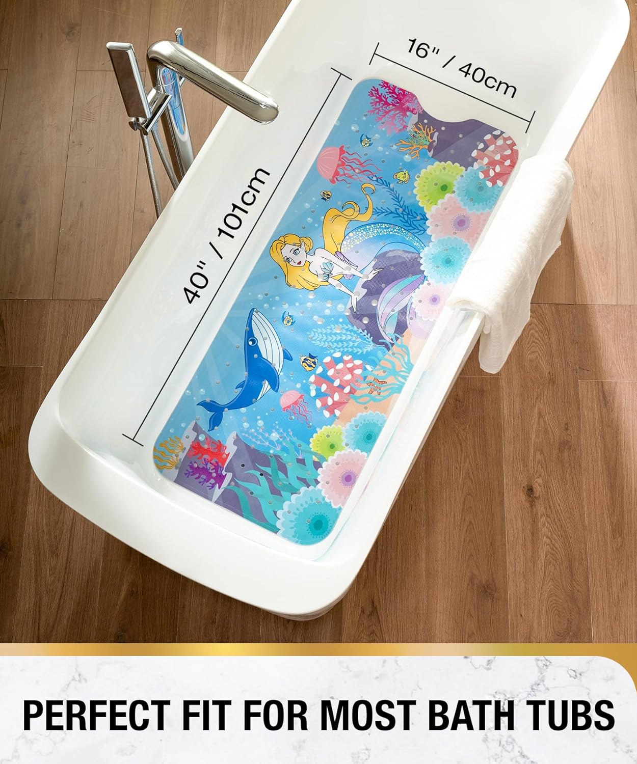 HITSLAM Постелка за баня, неплъзгаща се, детска, 101 x 40 см, екстра дълга, неплъзгаща се, постелка за баня, детска постелка за душ, неплъзгаща се, бебешка, устойчива на мухъл и може да се пере в пералня, русалка