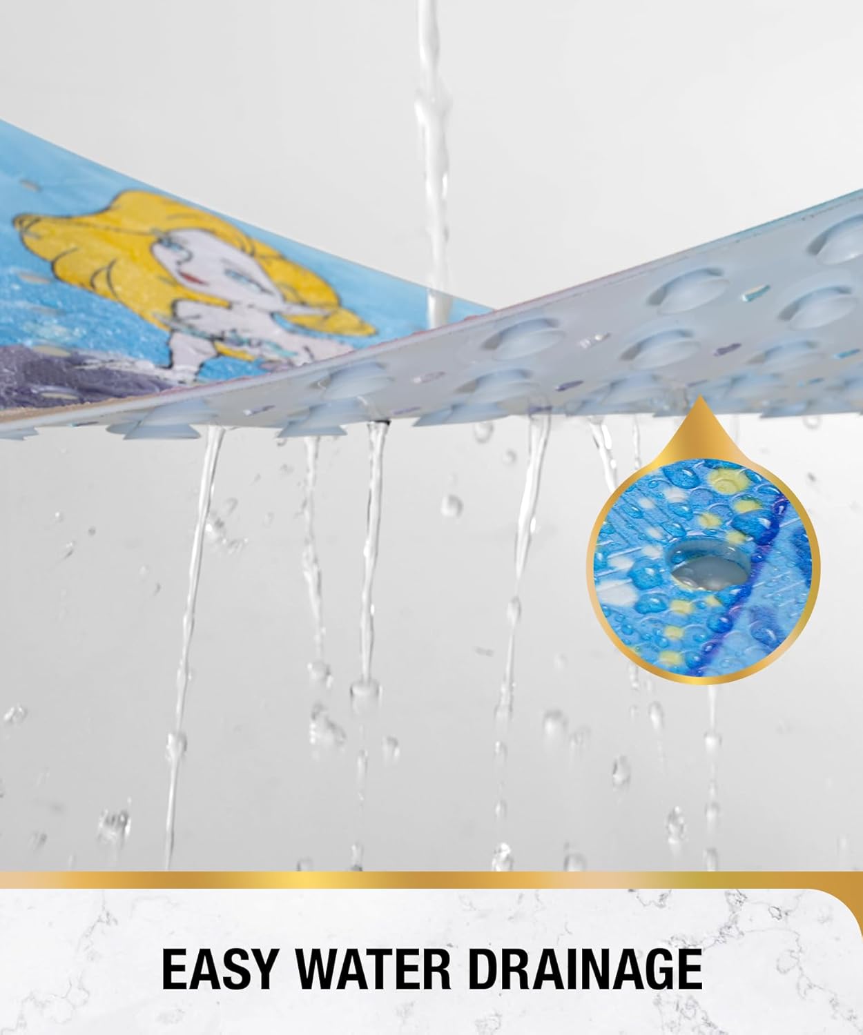 • Неплъзгаща се постелка с ултрасилно задържане: Нашата неплъзгаща се постелка за баня е снабдена с 200 здрави лепящи вендузи, които я държат здраво на място върху гладки, чисти вани и душове. Текстурата на горната част на постелката за баня увеличава триенето, така че да не се подхлъзвате или падате във ваната.