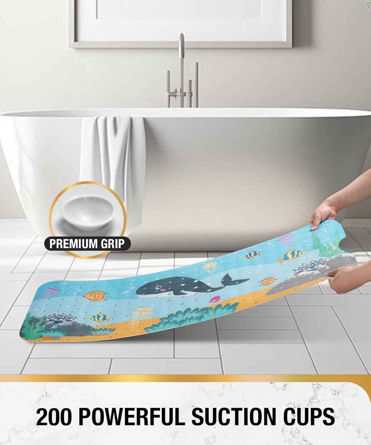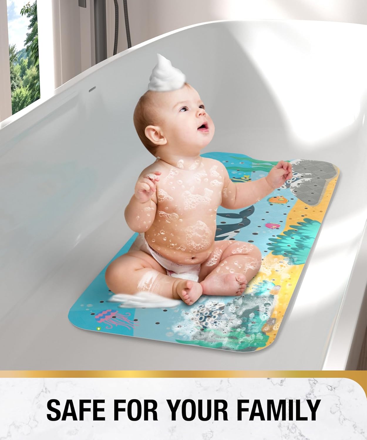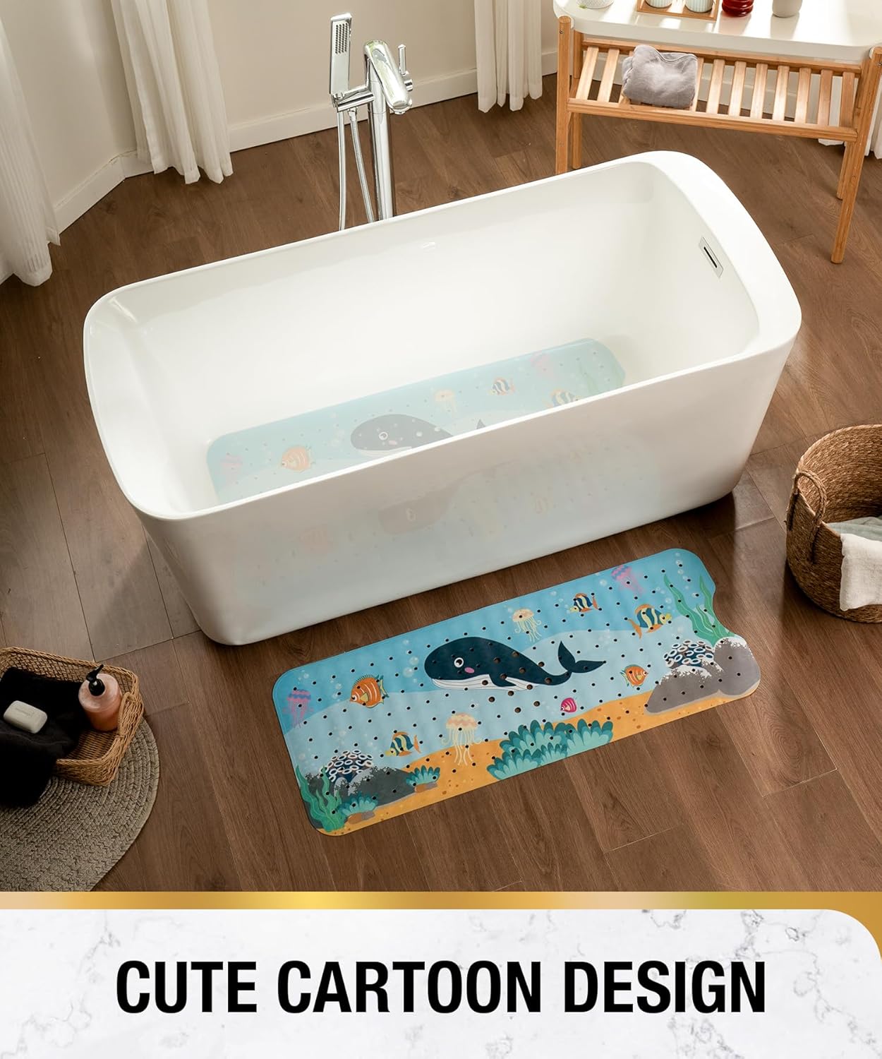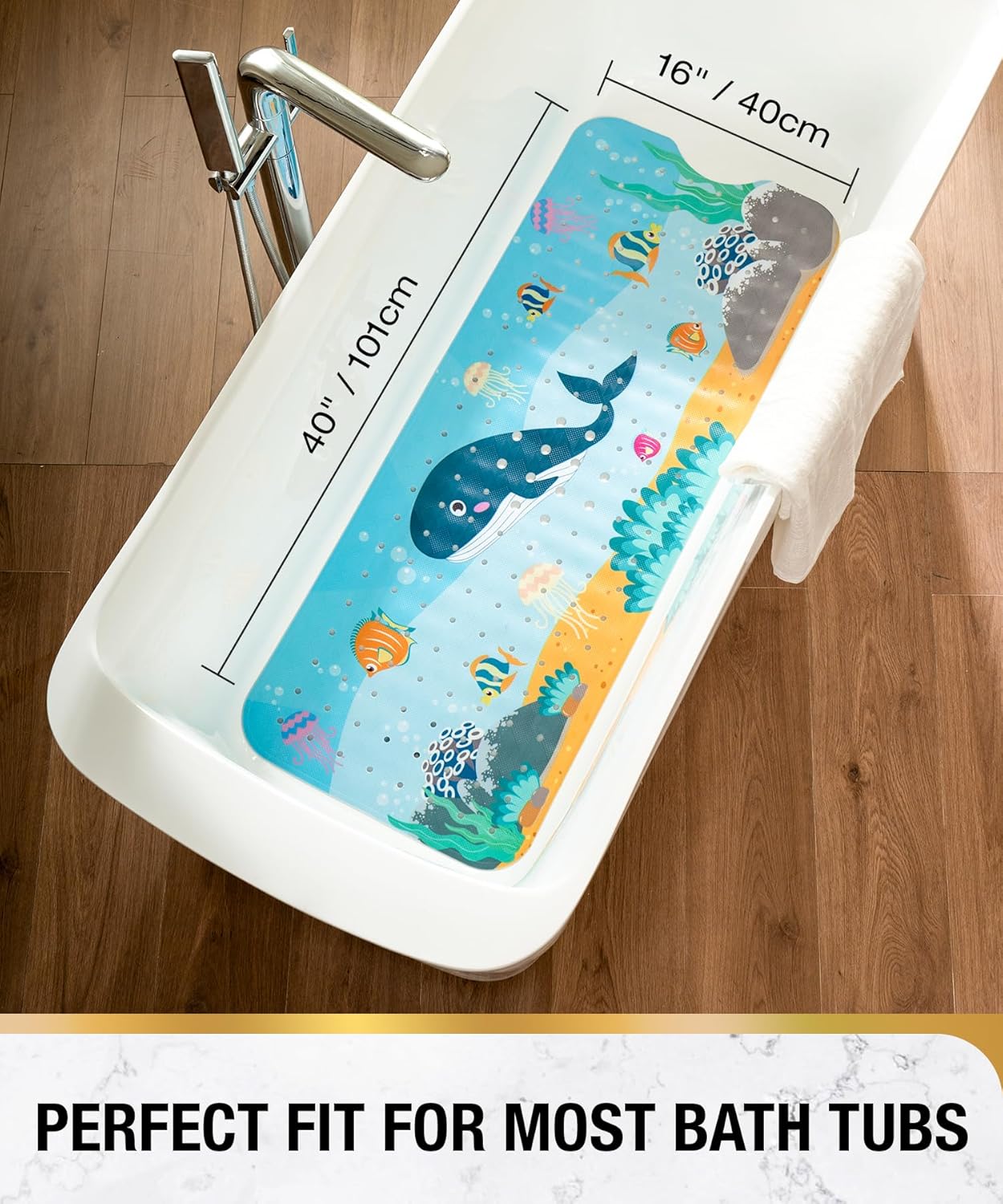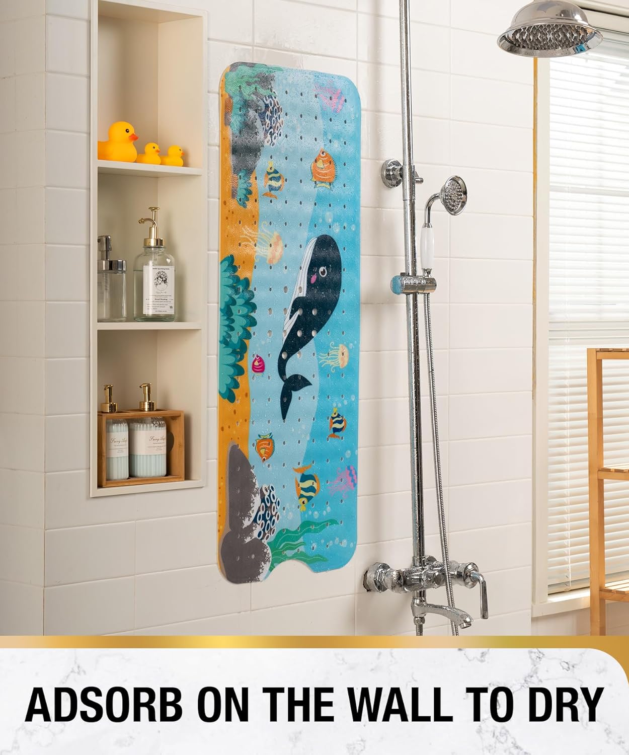 HITSLAM Постелка за баня, неплъзгаща се, детска, 101 x 40 см, екстра дълга, неплъзгаща се, постелка за баня, детска постелка за душ, неплъзгаща се, бебешка, устойчива на мухъл и може да се пере в пералня, цвят кит