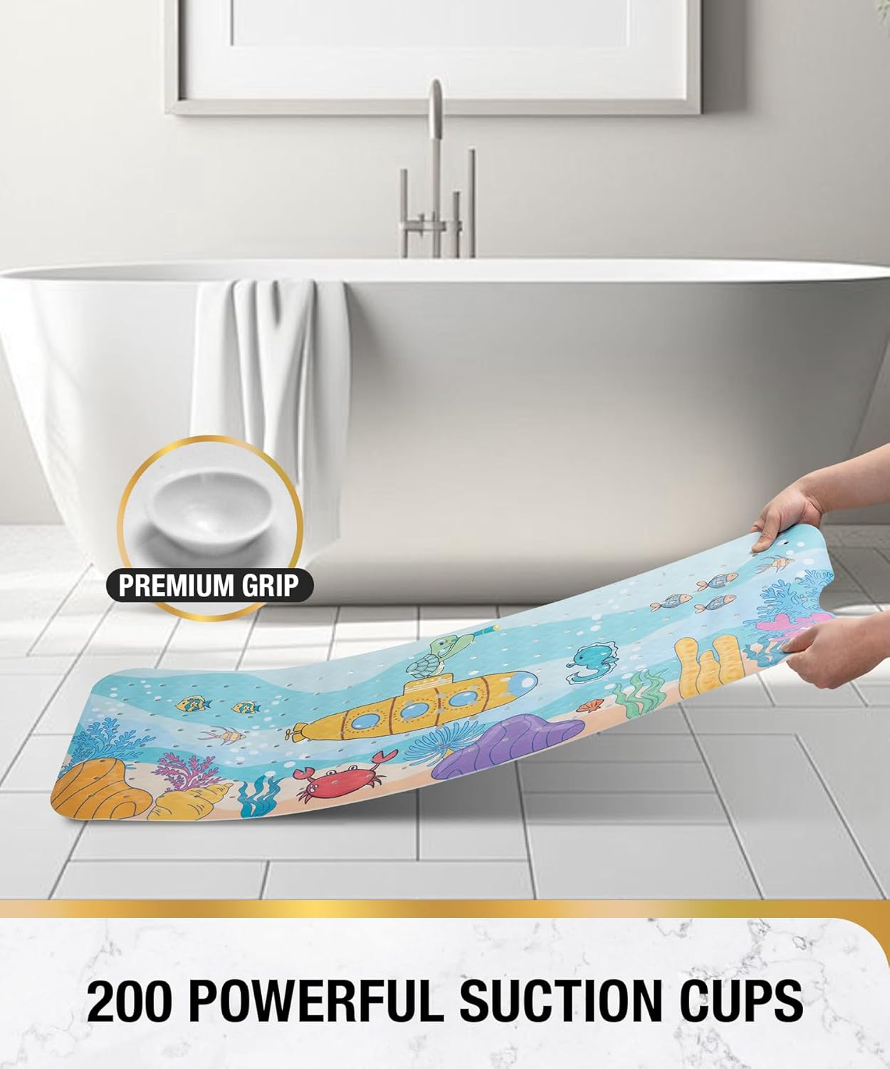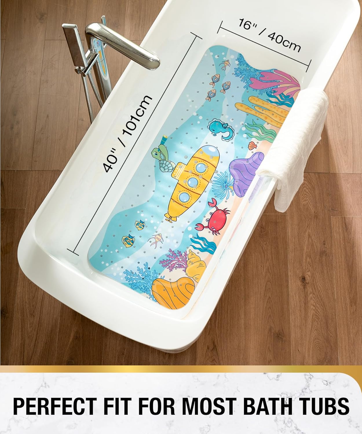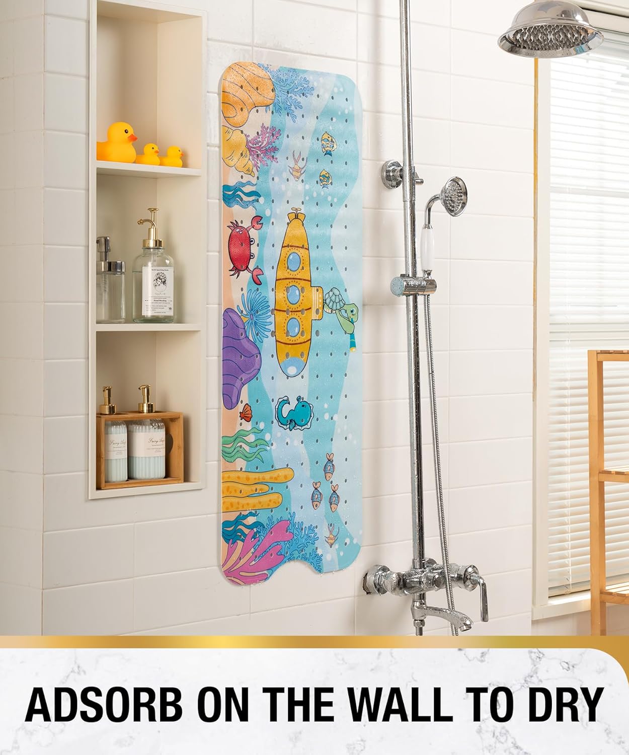 HITSLAM Постелка за баня, неплъзгаща се, за деца, 101 x 40 см, екстра дълга, неплъзгаща се постелка за вана, детска постелка за душ, неплъзгаща се, устойчива на мухъл и може да се пере в пералня, цвят океан