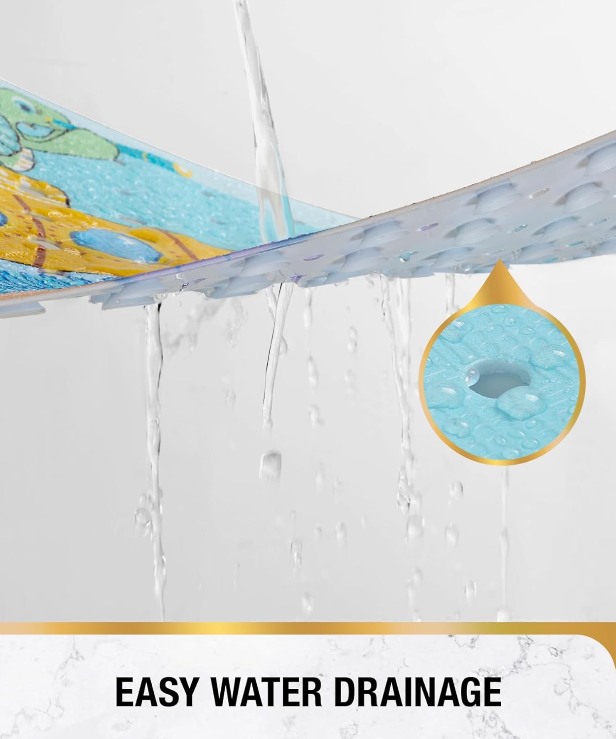 • Неплъзгаща се постелка с ултрасилно задържане: Нашата неплъзгаща се постелка за баня е снабдена с 200 здрави лепящи вендузи, които я държат здраво на място върху гладки, чисти вани и душове. Текстурата на горната част на постелката за баня увеличава триенето, така че да не се подхлъзвате или падате във ваната.