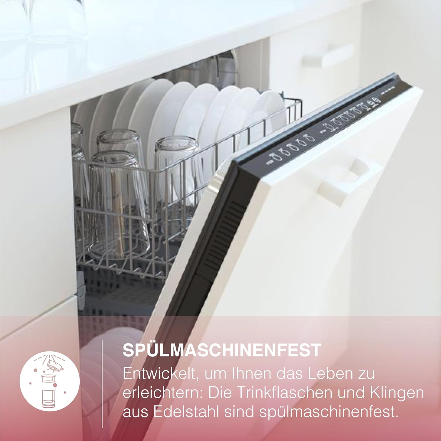 С 4-те си ножа от неръждаема стомана и мощност от 300 W, преносимият блендер SMOO9 може да смесва плодове, зеленчуци, билки и фини подправки и да създава вкусни, богати на витамини смутита.