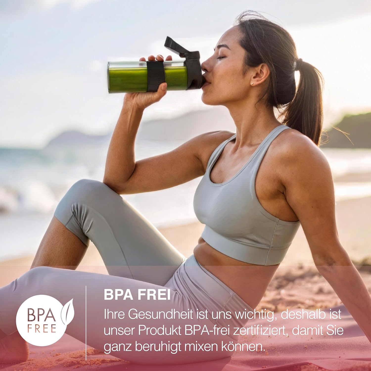 С идеалния си капацитет от 570 мл и двете включени бутилки за пиене, можете да го вземете навсякъде - в офиса, на спорт... за здравословна и енергийна закуска и/или междинна закуска.