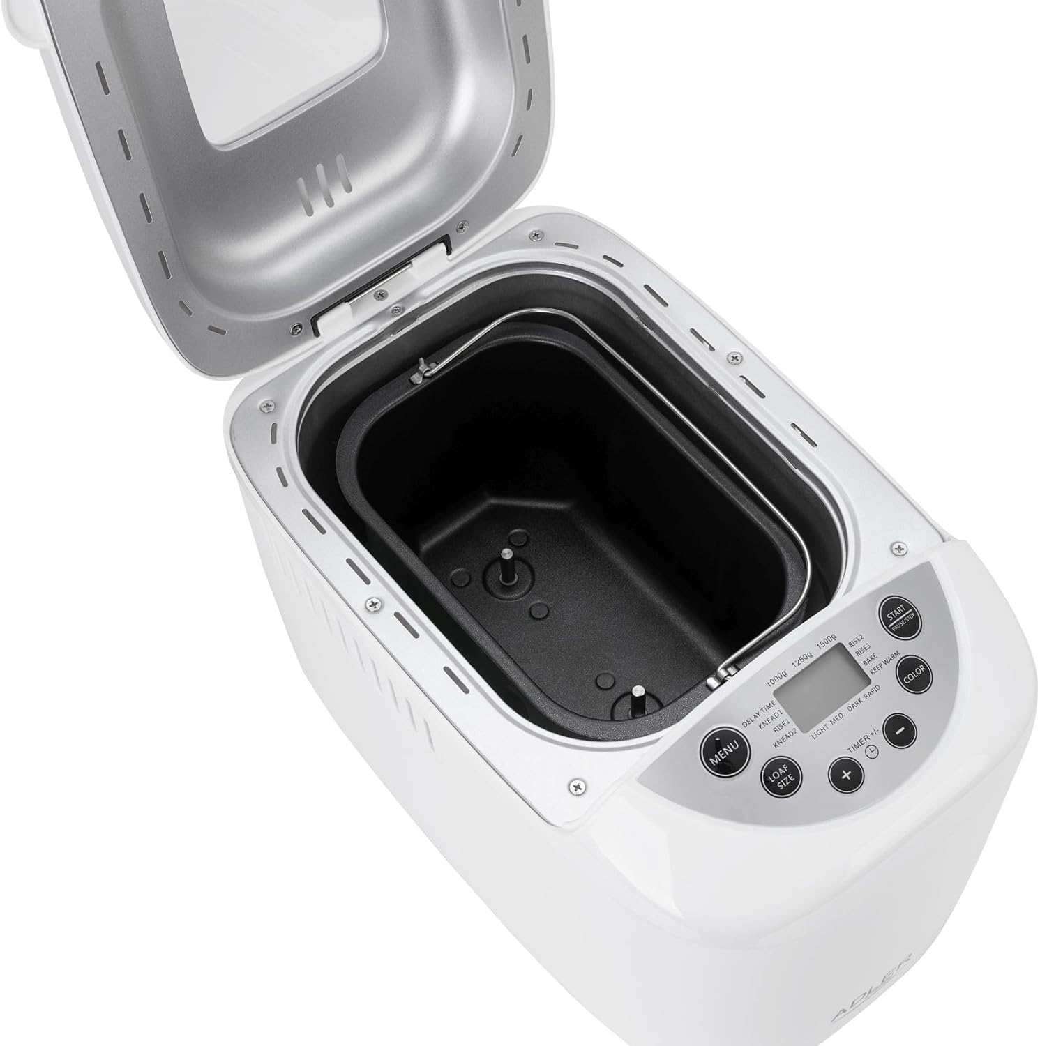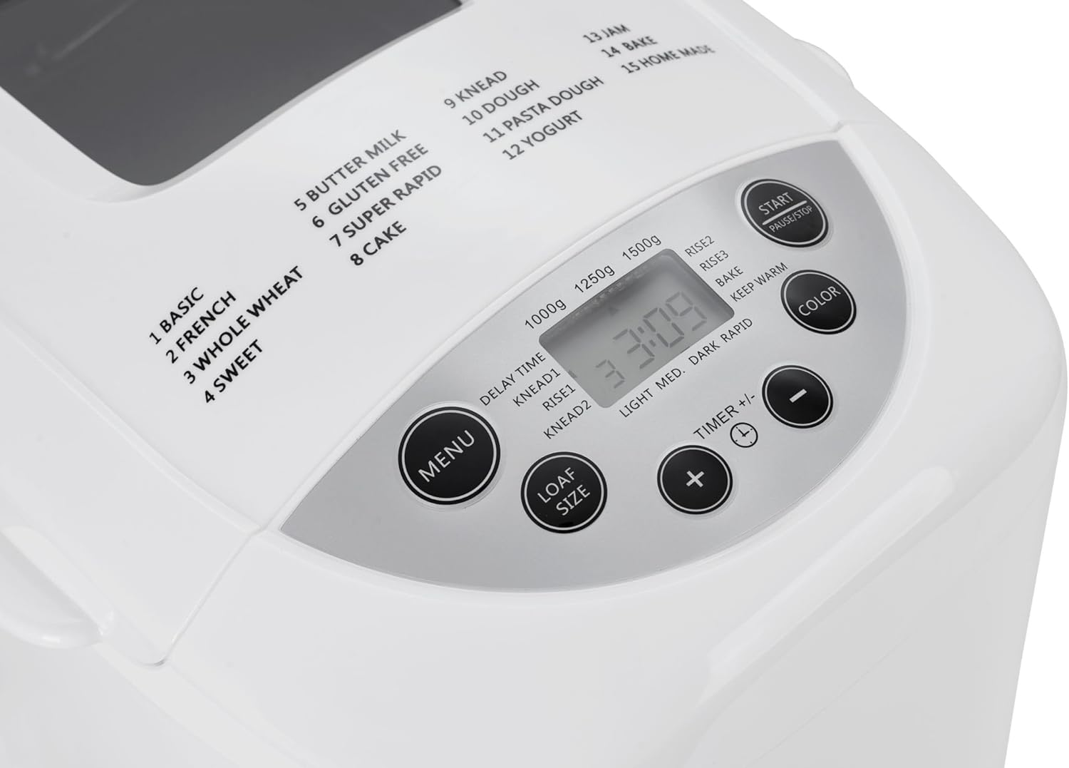 The big advantage of this bakery is the large number of programs it can use. This allows each user to set the type of bread, the preparation method and the baking time according to their own taste. You can choose from the following programs: basic (traditional bread), French (for light bread), whole wheat (rye or wheat flour), sweet (raisin or chocolate bread), milk and butter (milk bread, brioches), gluten-free (rice, sweet potato, corn or oatmeal bread), super fast (shortens the preparation phase), kneading (Dough with soda or baking soda), kneading (automatic baking time), kneading and lifting (without baking, the dough can be used to prepare rolls or pizza), dough for pasta, yoghurt fermentation, preparation of canned goods (jam), baking (additional baking) and home preparation.