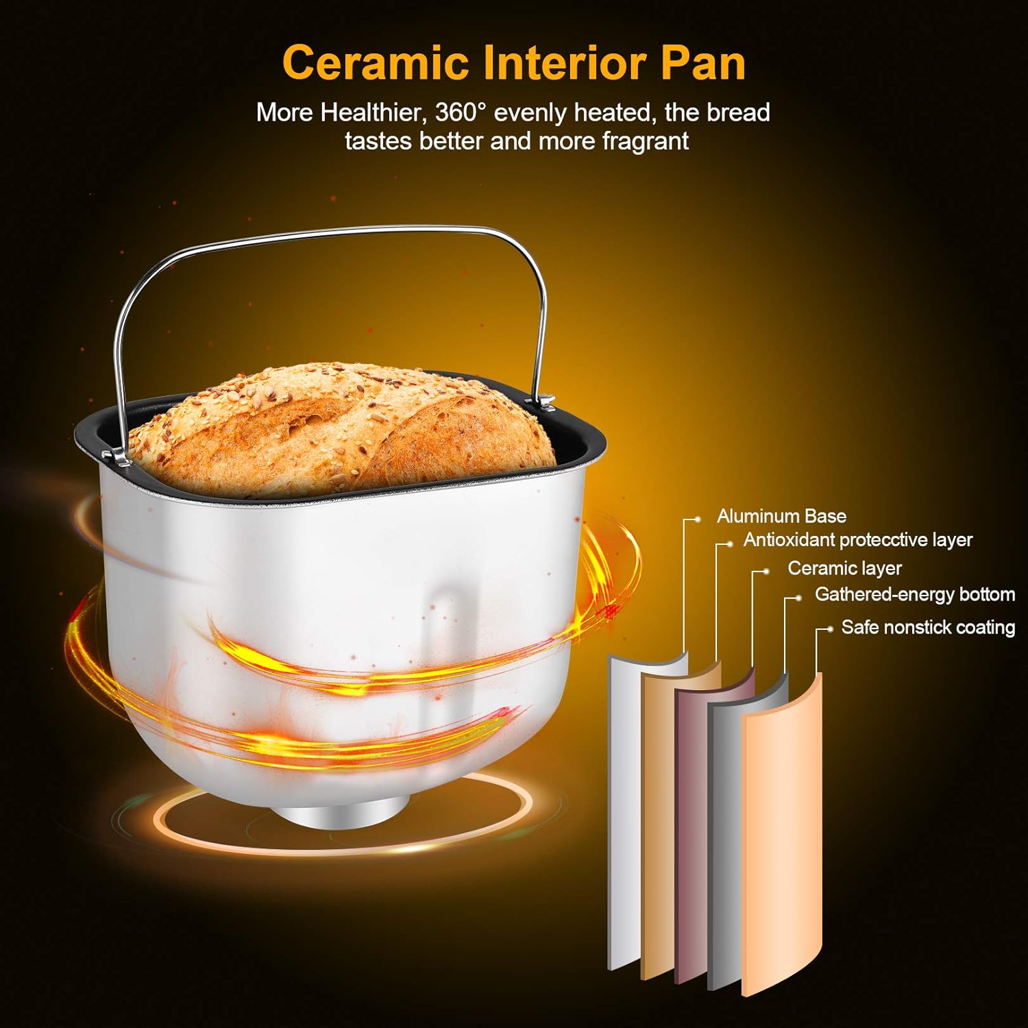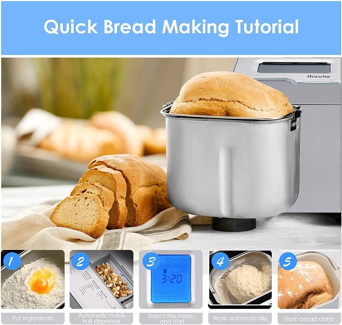 Хлябопекарната има голям капацитет от 2,2 паунда и е подходяща за семейна употреба с 4-6 души. 25 автоматични програмни менюта, стъпките са прости и лесни за разбиране и лесно приготвят вкусен хляб. Можете да използвате бърз хляб, пълнозърнест хляб, хляб без глутен, сладко и др.