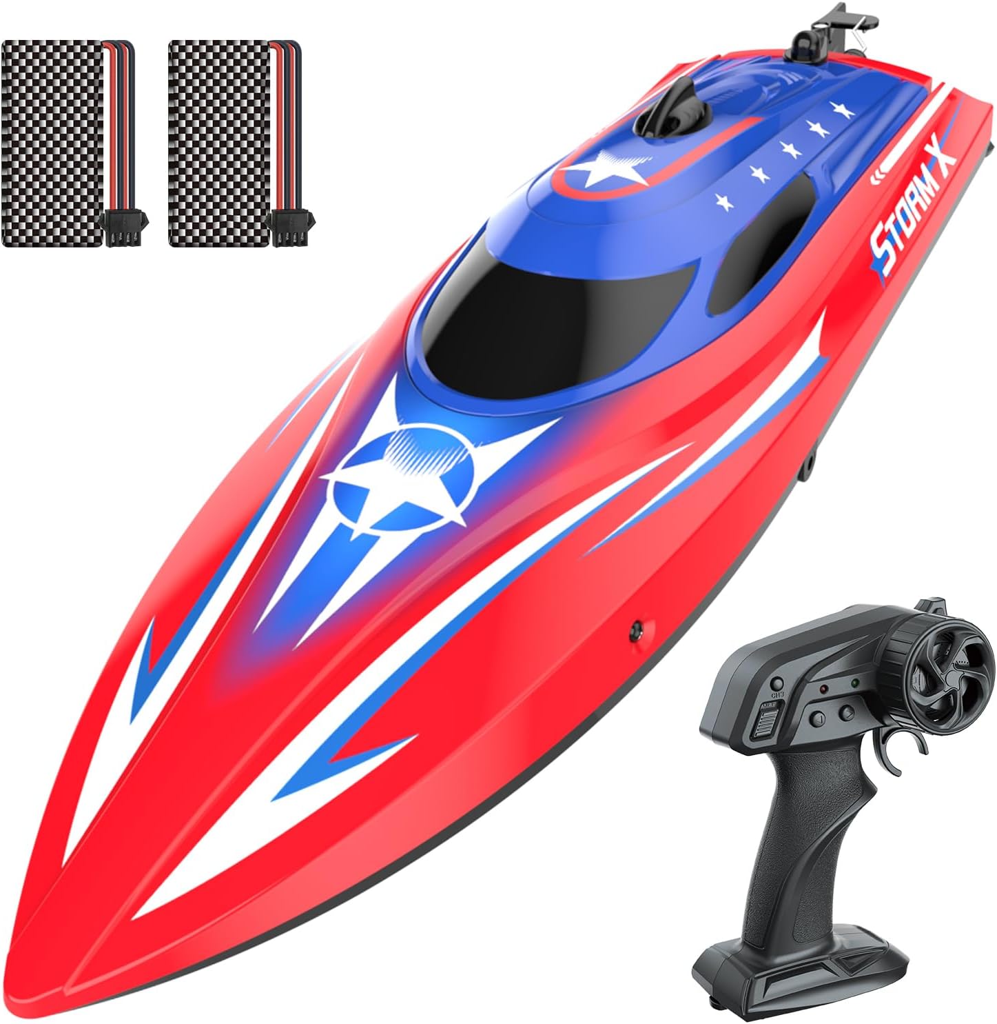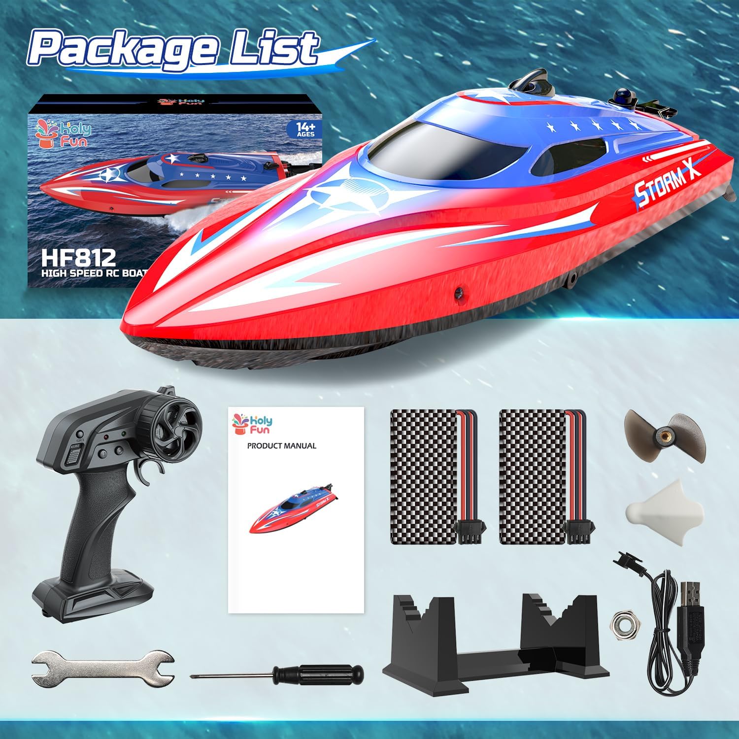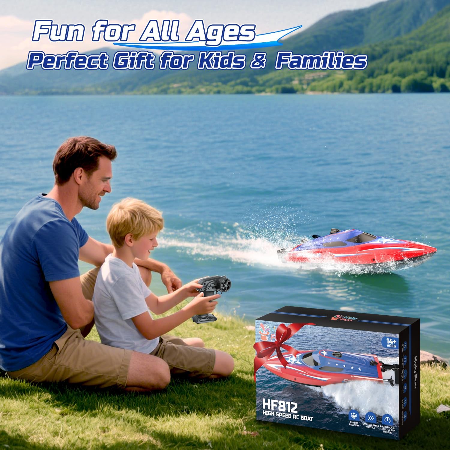 HOLYFUN Лодка с дистанционно управление за деца и възрастни RC лодка с пропорционално управление, 20+ км/ч, водоустойчива, 30 минути време за игра, 2 батерии, 2.4 GHz дистанционно управление, за деца и възрастни, басейн и езеро