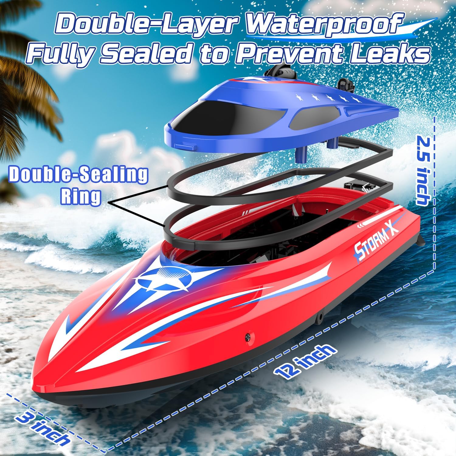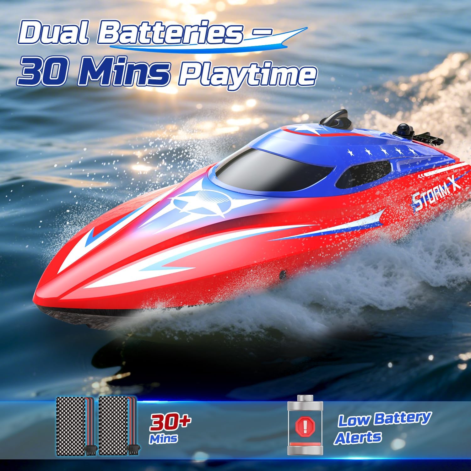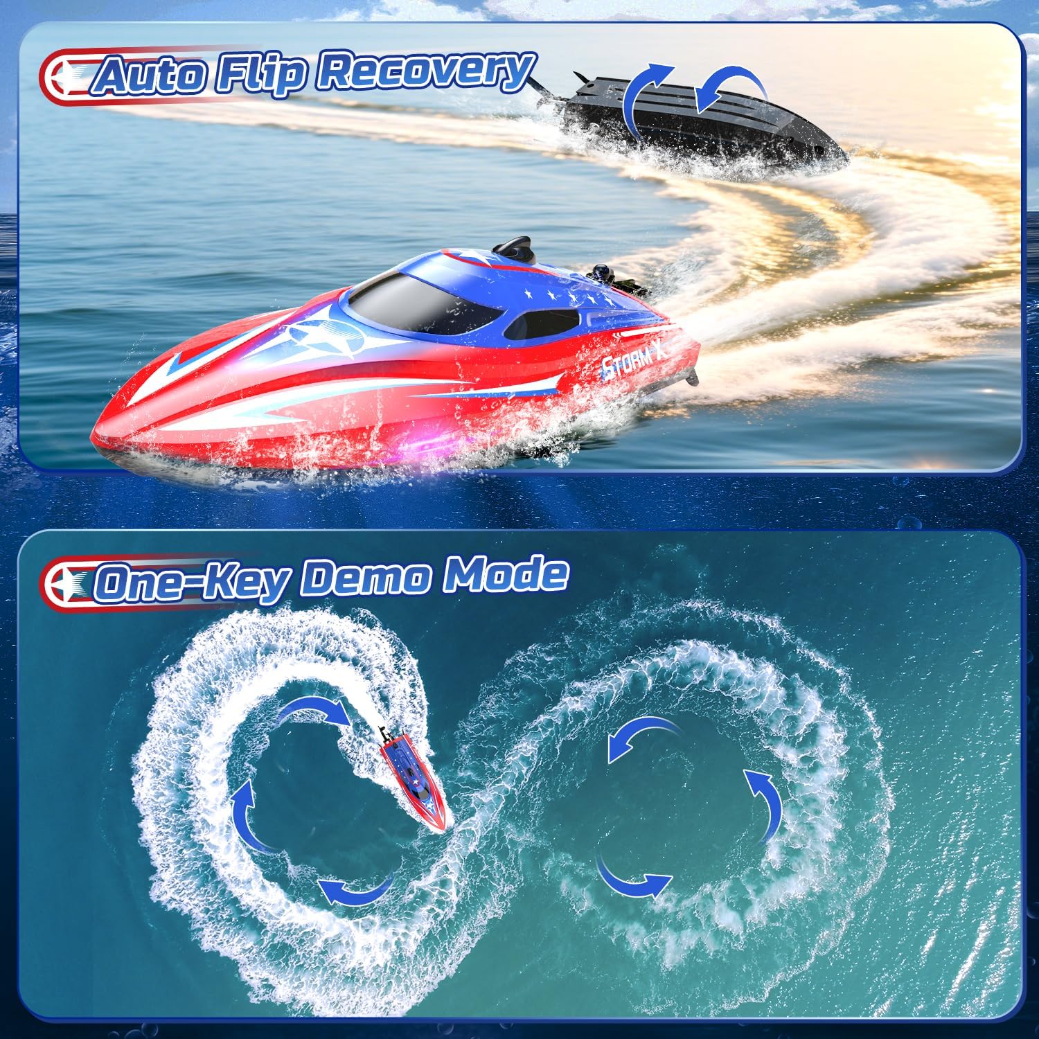 HOLYFUN Лодка с дистанционно управление за деца и възрастни RC лодка с пропорционално управление, 20+ км/ч, водоустойчива, 30 минути време за игра, 2 батерии, 2.4 GHz дистанционно управление, за деца и възрастни, басейн и езеро