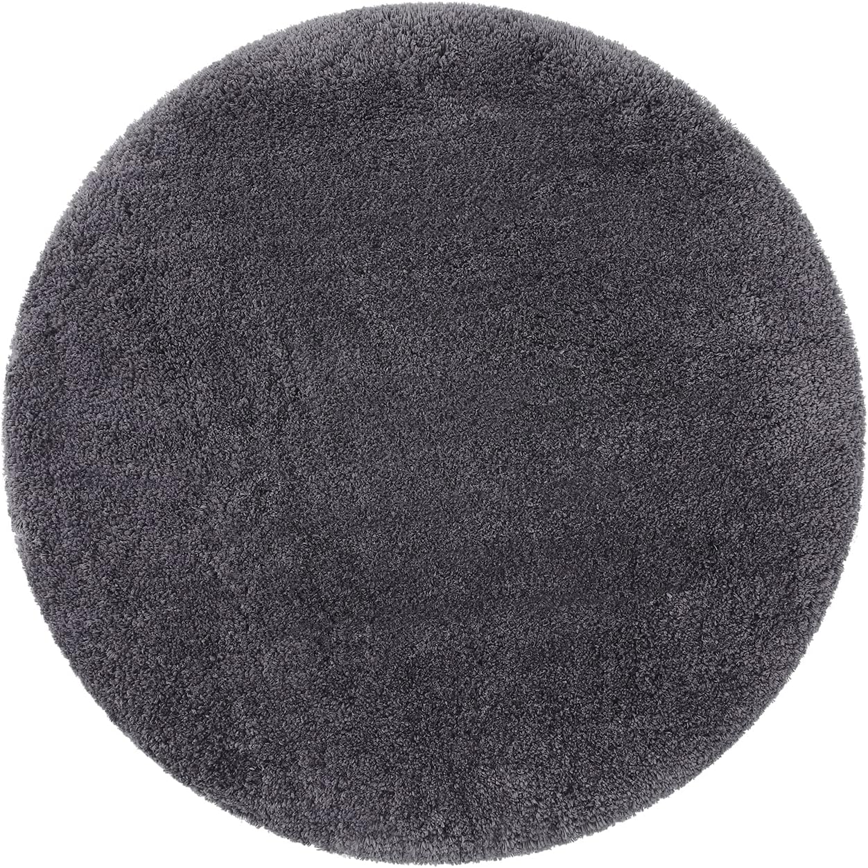Homaxy Килим за баня, Неплъзгаща се Постелка за баня, Мека Пухкава Постелка за баня, Рошава, Дълга Микрофибърна Постелка за Баня - Кръгла, 90 см Диаметър, Тъмносива
