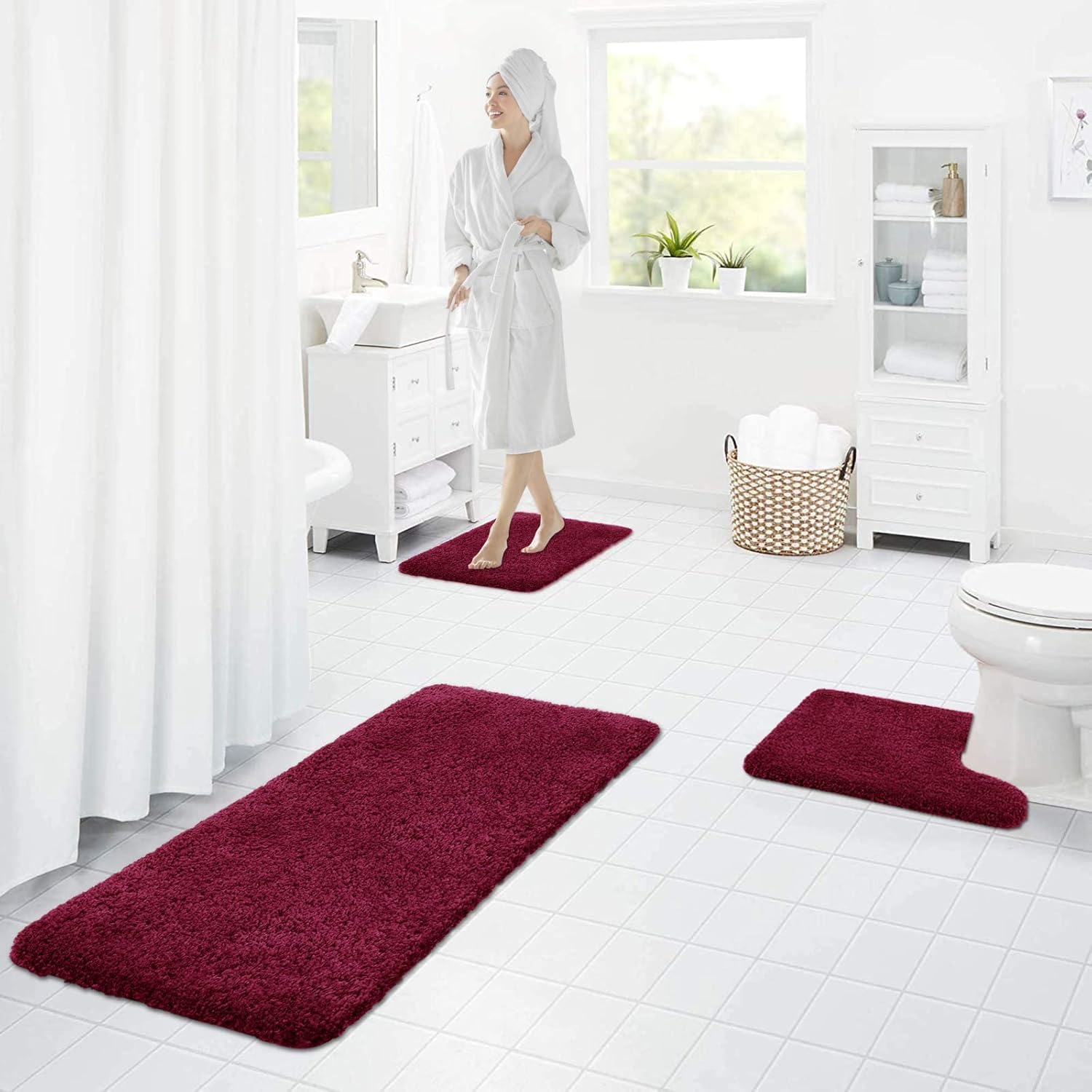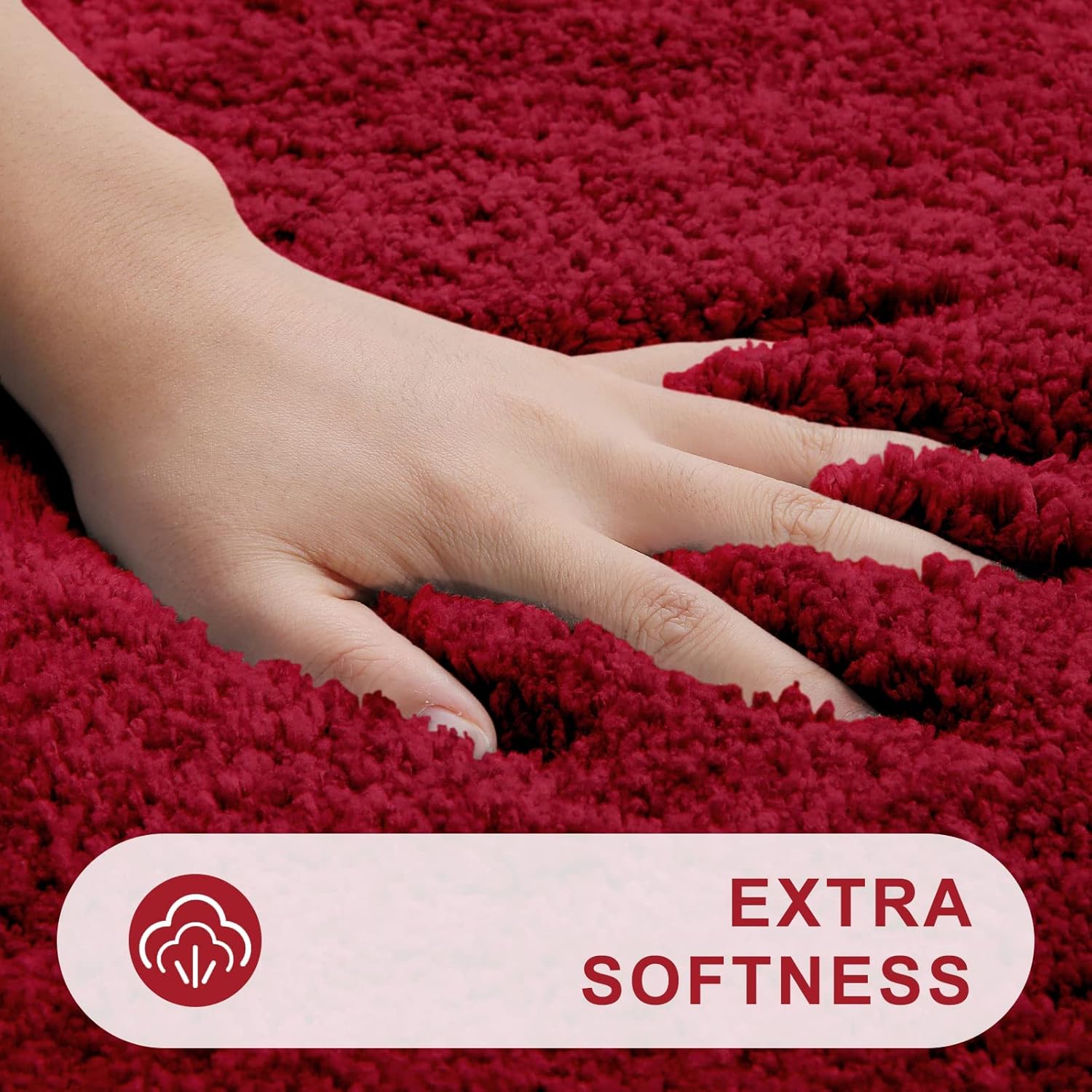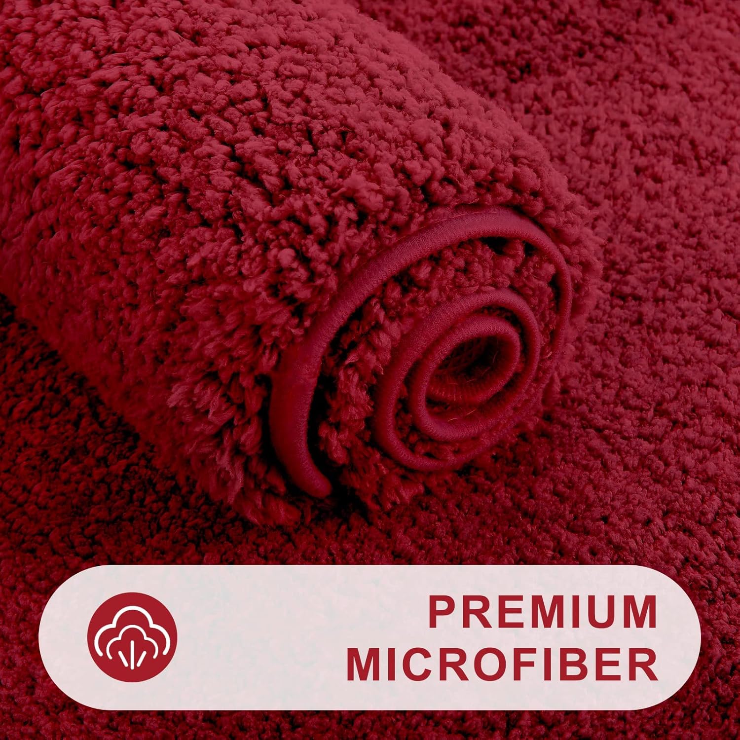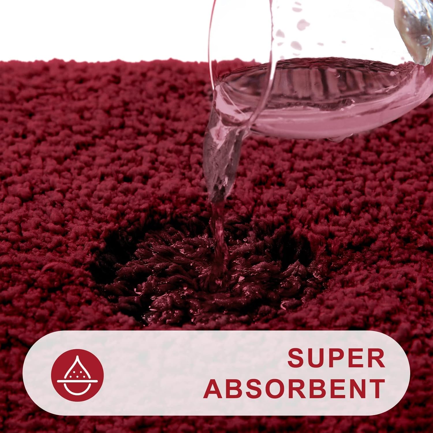 Homaxy Килим за баня, Неплъзгаща се постелка за баня, Мека пухкава постелка за баня, Рошава, Висококосарна микрофибърна постелка за баня - 51 x 76 см, Винено червено
