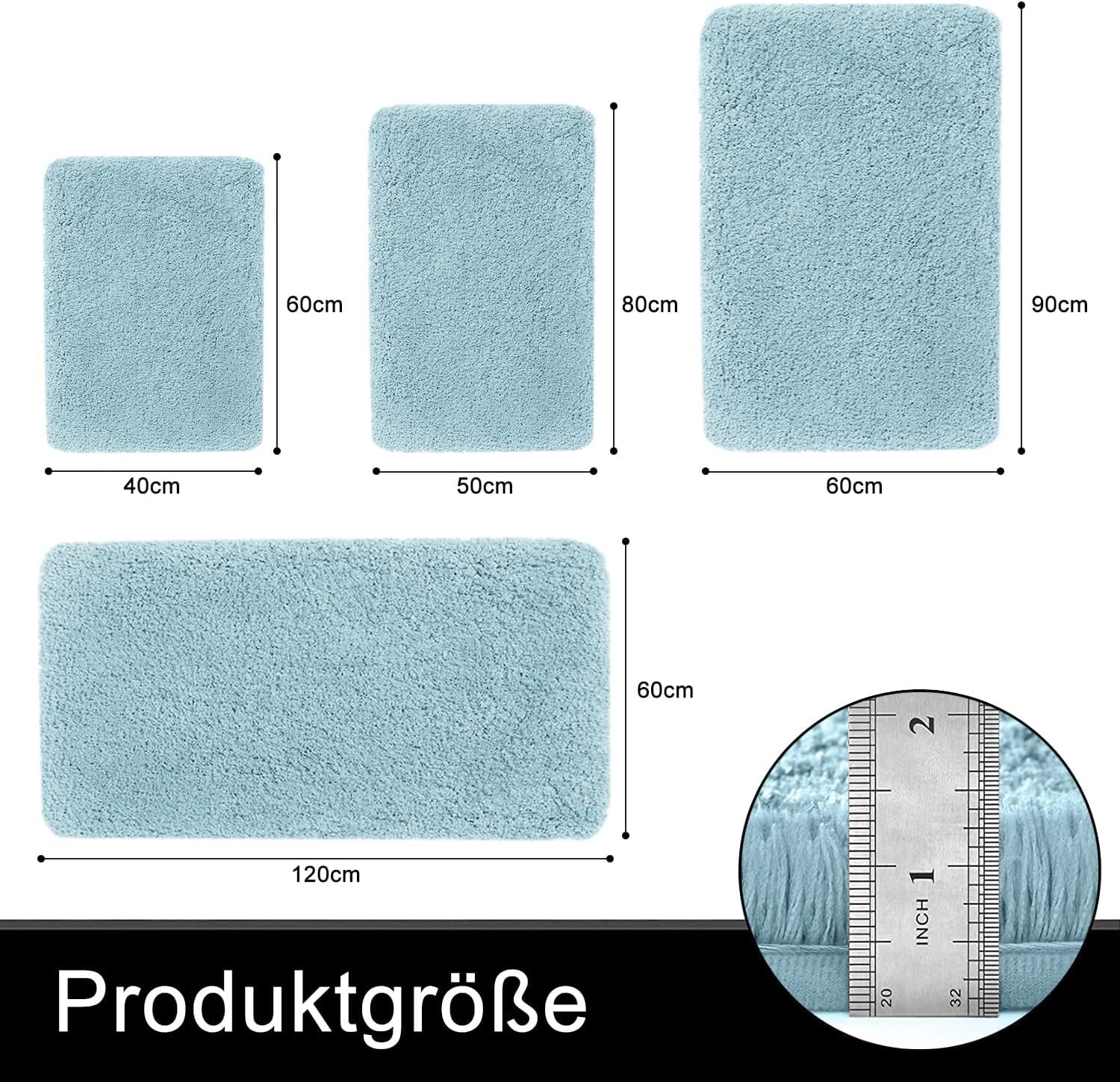 Homaxy Килим за баня, Неплъзгаща се постелка за баня, Мека пухкава постелка за баня, Рошава, Висококосарна постелка за баня от микрофибър - 60 x 120 см, Светлосиня