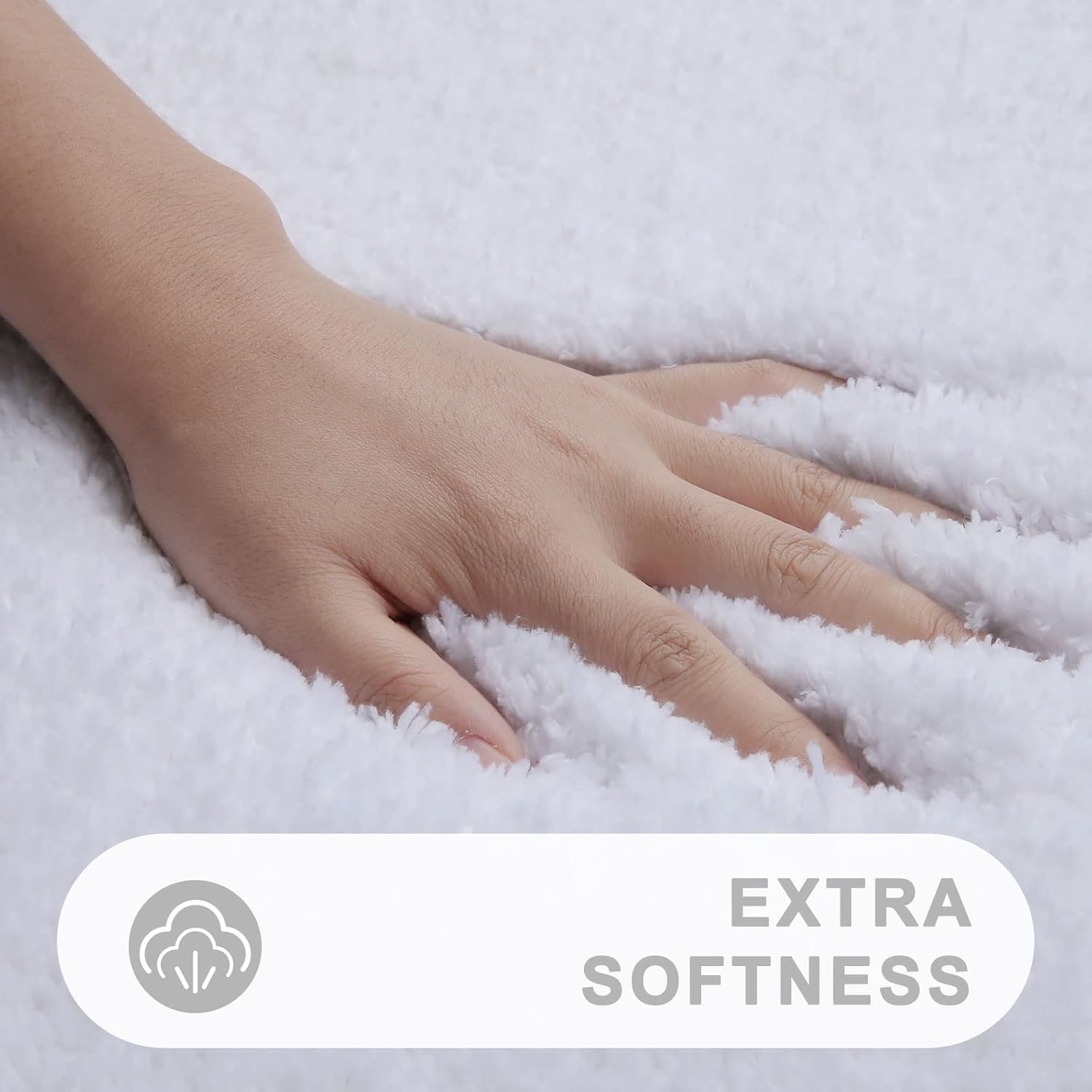 Homaxy Килим за баня, Неплъзгаща се постелка за баня, Мека пухкава постелка за баня, Рошава, Висококосмрасна постелка за баня от микрофибър - 51 x 76 см, Бяла