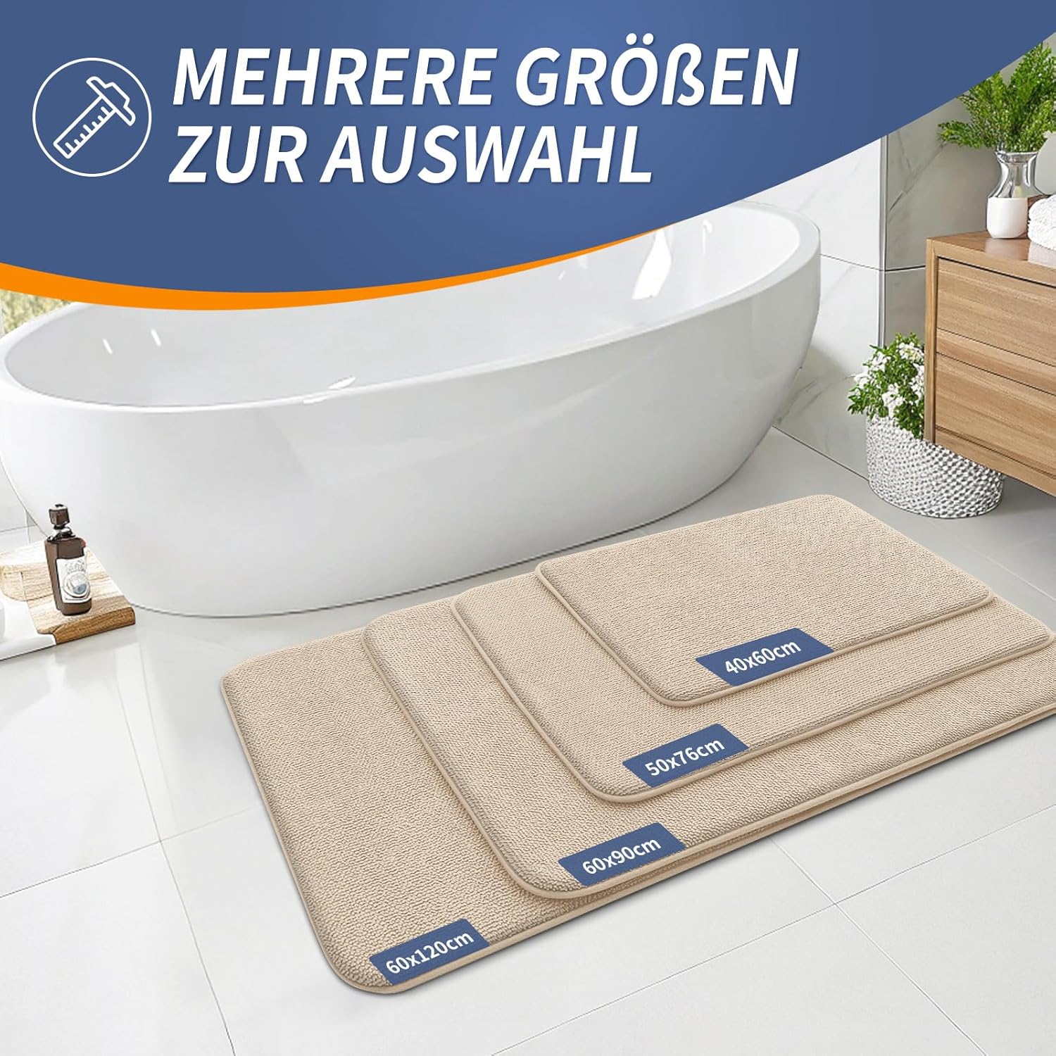 Homaxy Килим за баня от мемори пяна, мека постелка за баня, неплъзгаща се, переща се, дебела постелка за баня, абсорбираща постелка за баня и душ за баня - 40 x 60 см, бежов