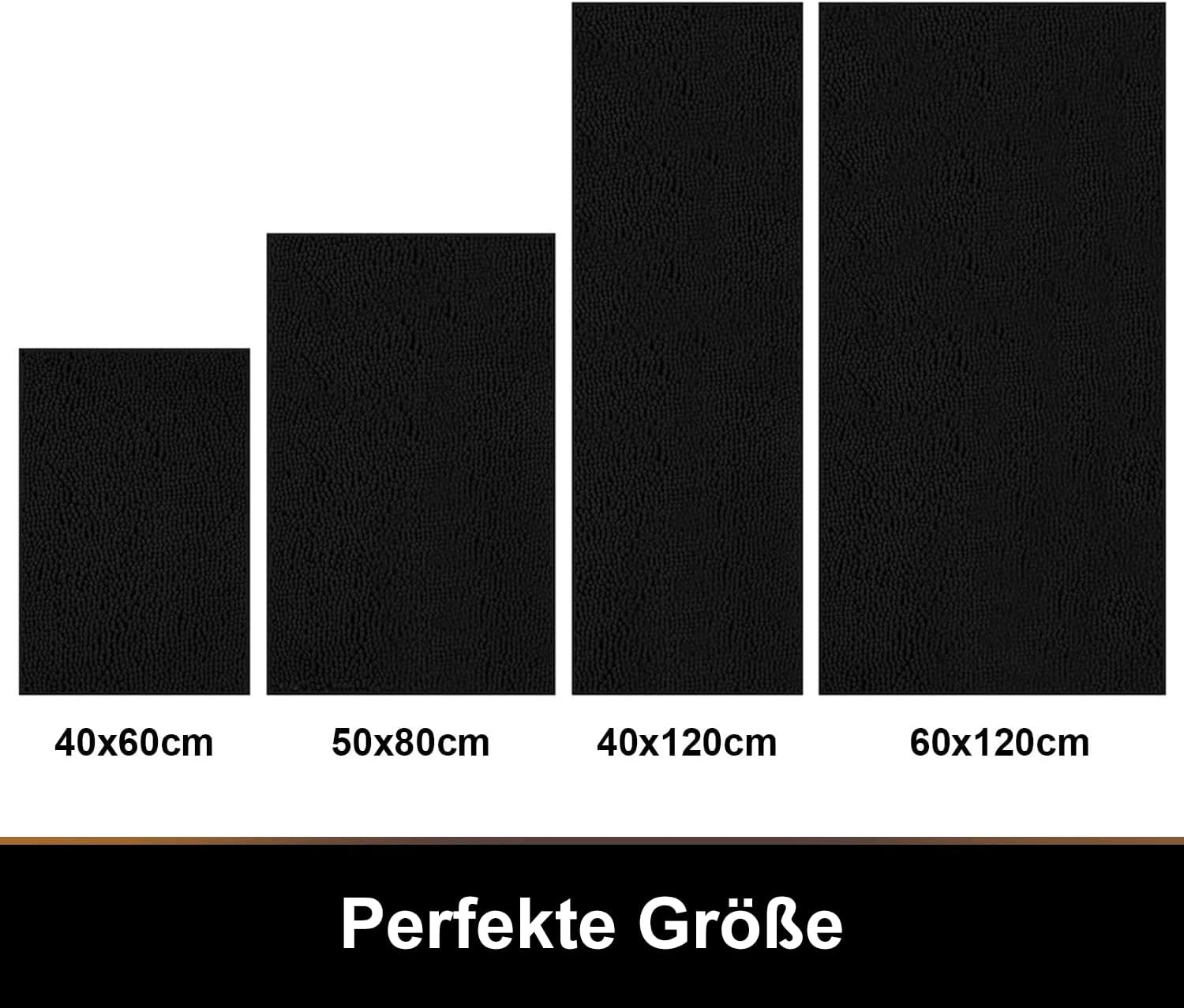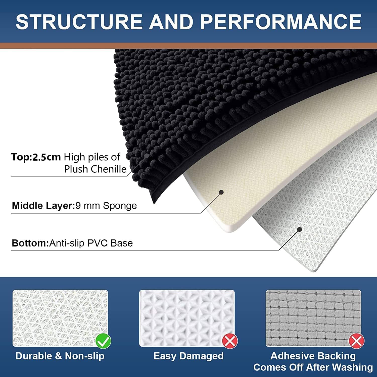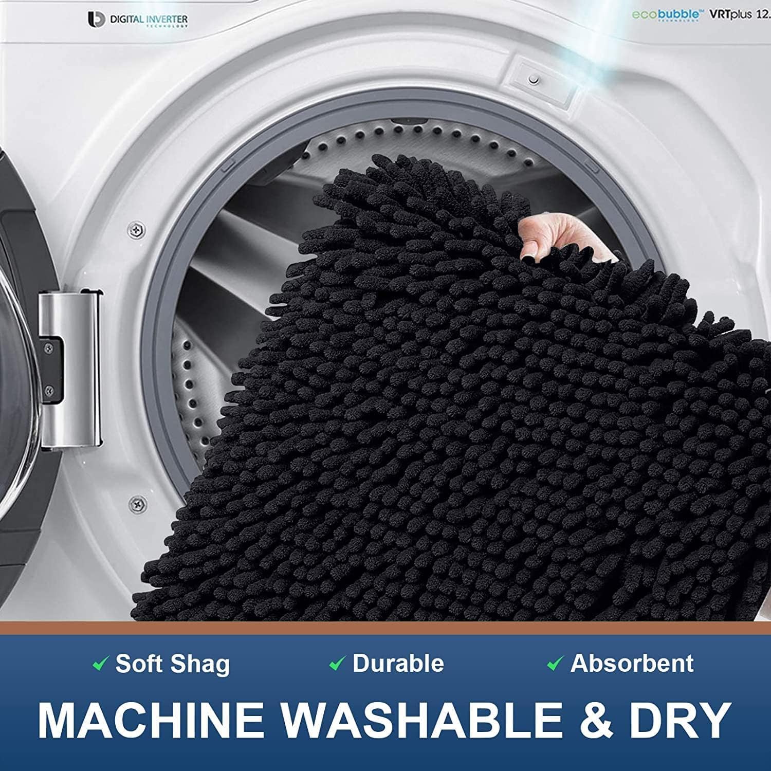 Homaxy Неплъзгащ се килим за баня от шенил, микрофибърна постелка за баня, абсорбираща постелка за баня с висок косъм - 60 x 90 см, черна