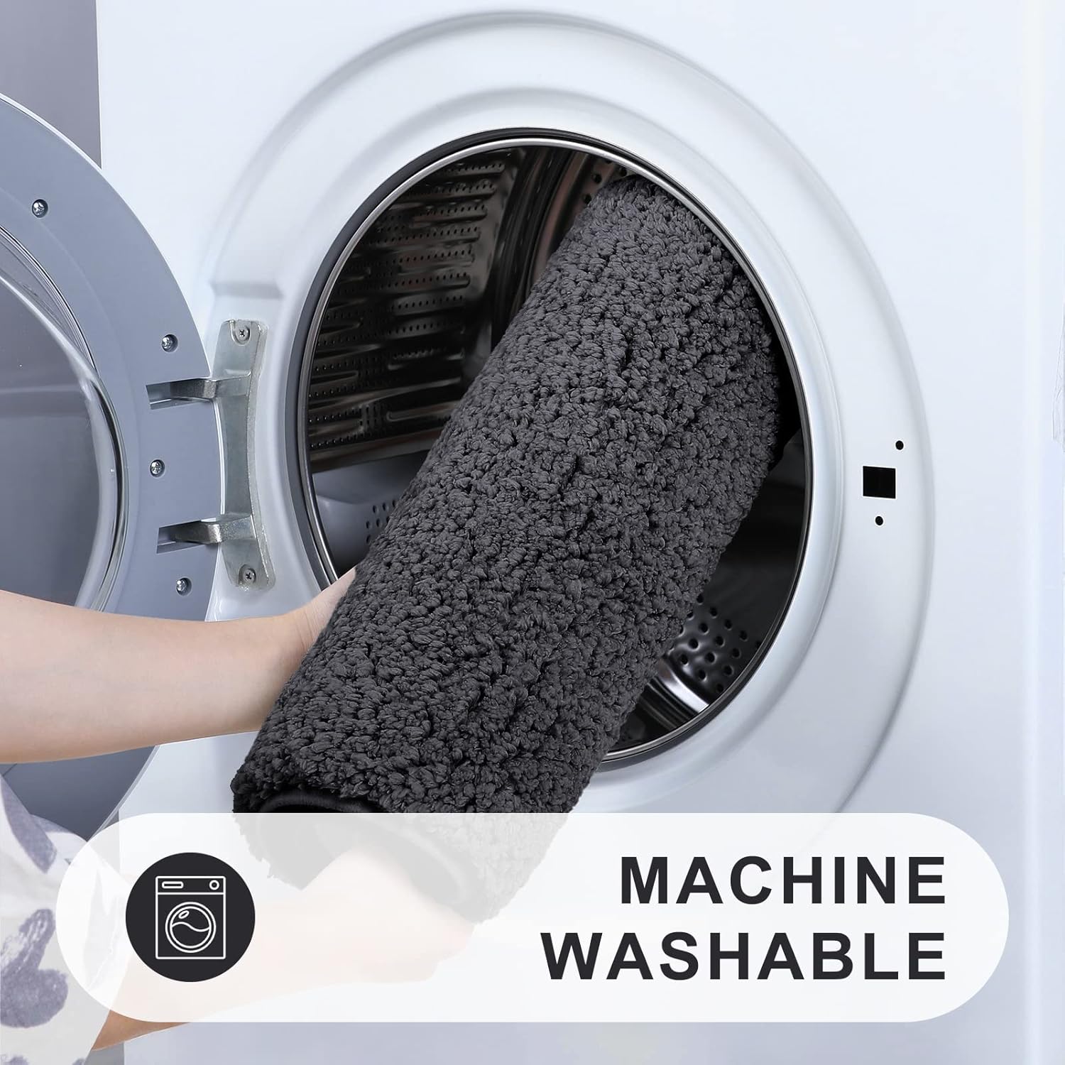 • Абсорбираща вода: Благодарение на подобрения първокласен микрофибърен материал, нашата постелка за баня може бързо да абсорбира вода и да поддържа пода чист. Супер меката и дебела, рошава повърхност предпазва пода ви от капеща вода, когато излезете от ваната или душа.