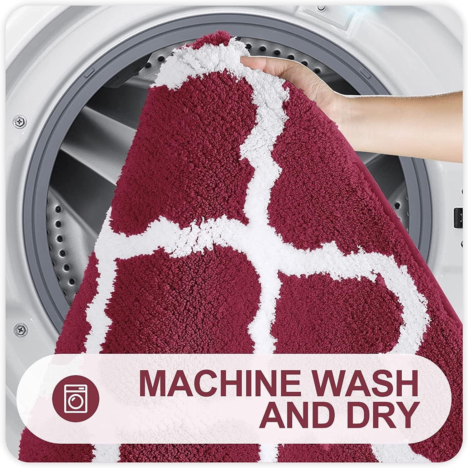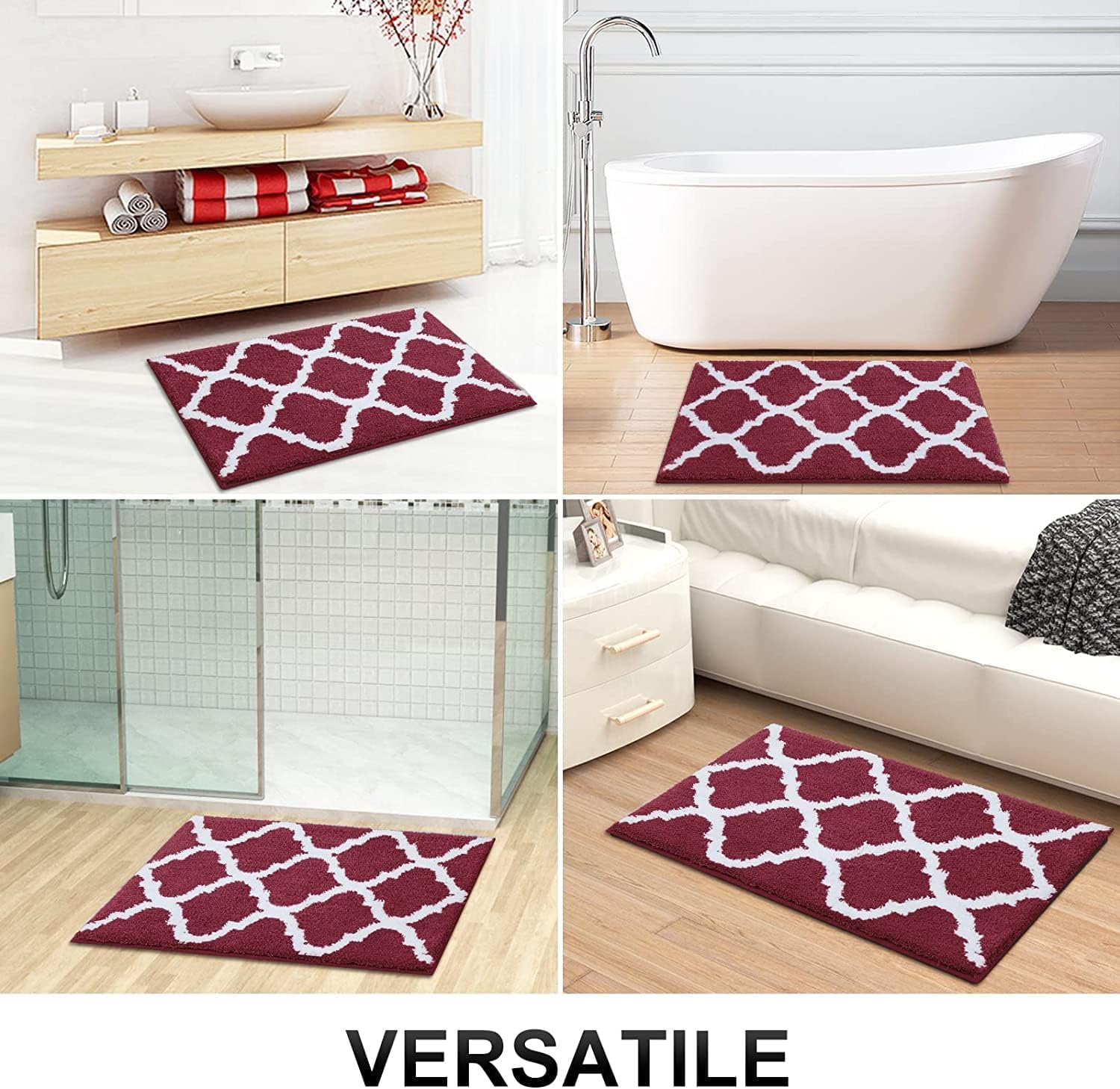 Homaxy Неплъзгаща се постелка за баня, Килим за баня, Перещ се, Висок косъм, Килим за баня, Пухкав, Микрофибър, 60 x 90 см, Винено червено