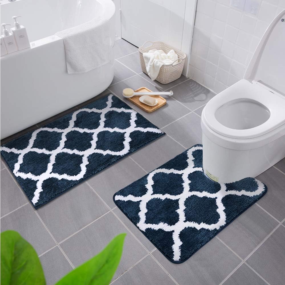 Homaxy Неплъзгаща се тоалетна постелка, Переща се, Тоалетна постелка с изрез, Мека, Дълга, 50 x 60 см, Тъмносиня