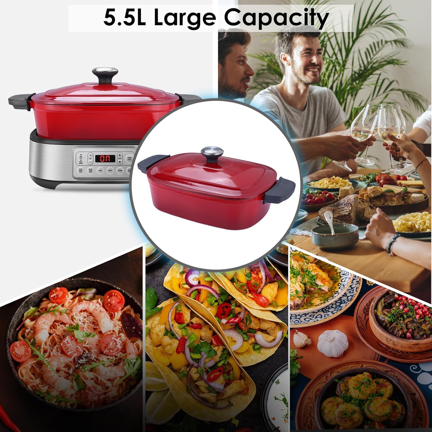 Капацитетът от 5,5 литра може лесно да се справи с различни видове готвене и елиминира нуждата от чести добавки към съставките или частично готвене.