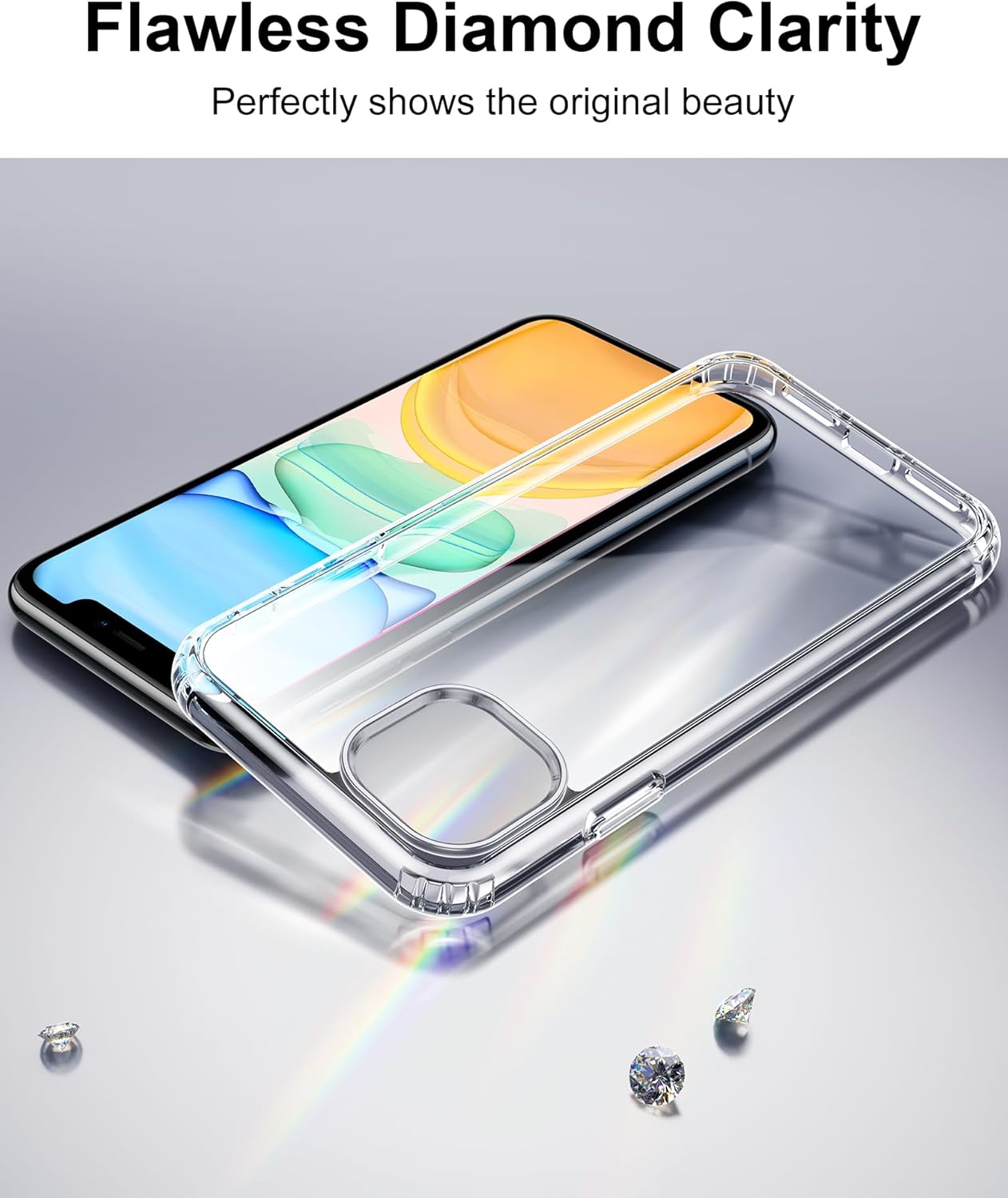 HOOMIL Кристално прозрачен калъф за iPhone 11, [Анти жълт] [Военен удароустойчив] Прозрачен защитен калъф за гръб - Прозрачен
