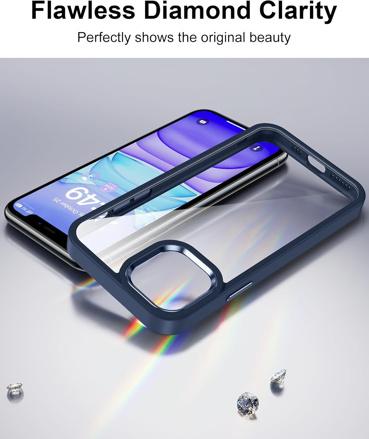 HOOMIL Кристално прозрачен калъф за iPhone 11, [Анти жълт] [Военен удароустойчив] Прозрачен защитен калъф за гръб - син