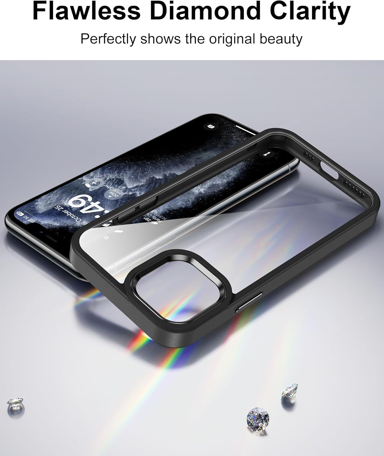 HOOMIL Кристално прозрачен калъф за iPhone 11 Pro, [Анти жълт] [Военен удароустойчив] Прозрачен защитен калъф за гръб - Черен
