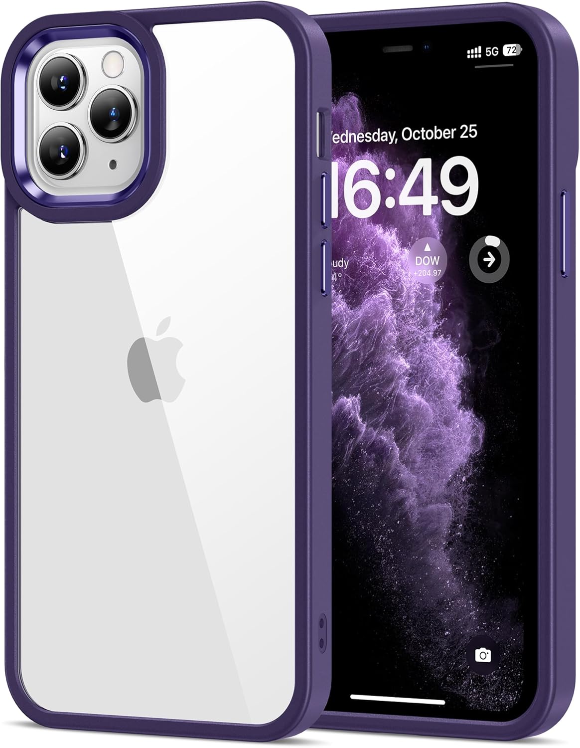HOOMIL Кристално прозрачен калъф за iPhone 11 Pro, [Анти жълт] [Военен удароустойчив] Прозрачен защитен калъф за гръб - Лилав