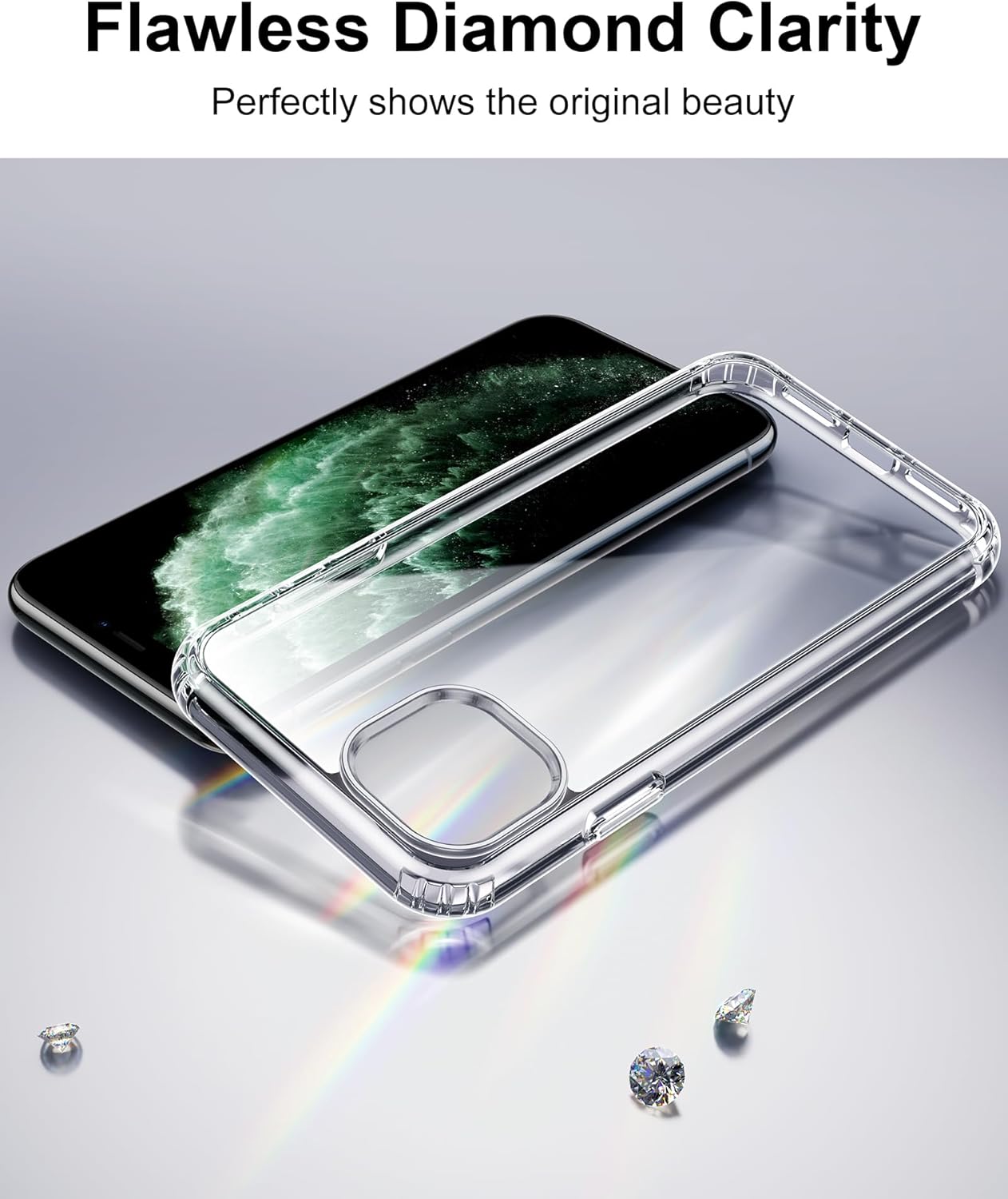 HOOMIL Кристално прозрачен калъф за iPhone 11 Pro Max, [Анти жълт] [Военен удароустойчив] Прозрачен защитен калъф за гръб - Прозрачен